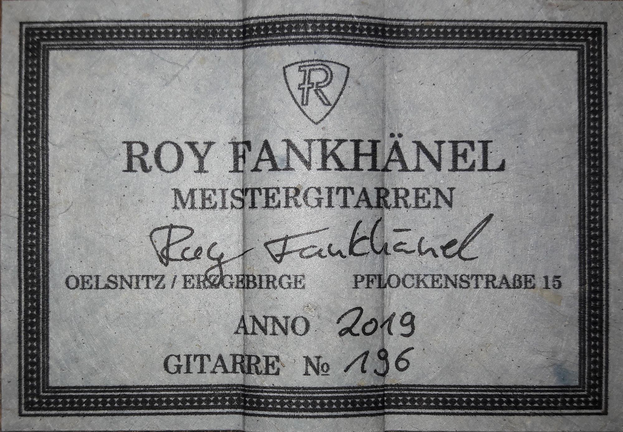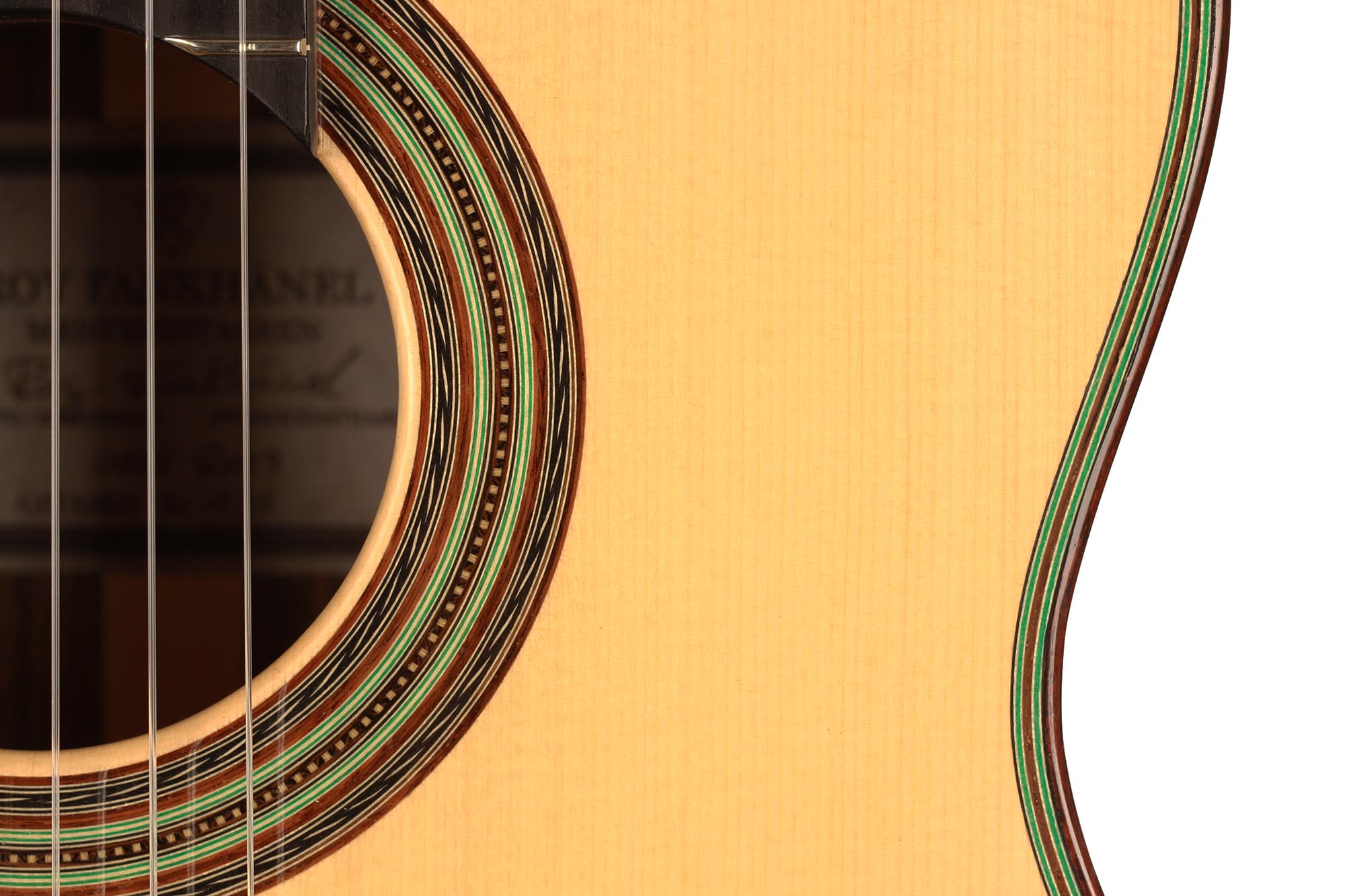 Roy Fankhänel’s runs his workshop in Oelsnitz, Germany, where he builds guitars in the German tradition. He shows a very high level of craftmanship that can be seen in features such as the V-joint, the details of the rosette, the design of the head and the quality of the construction in general. His guitars are powerful instruments with a generous rich sound. They are very easy to play and feature a slightly radiused elevated fingerboard.