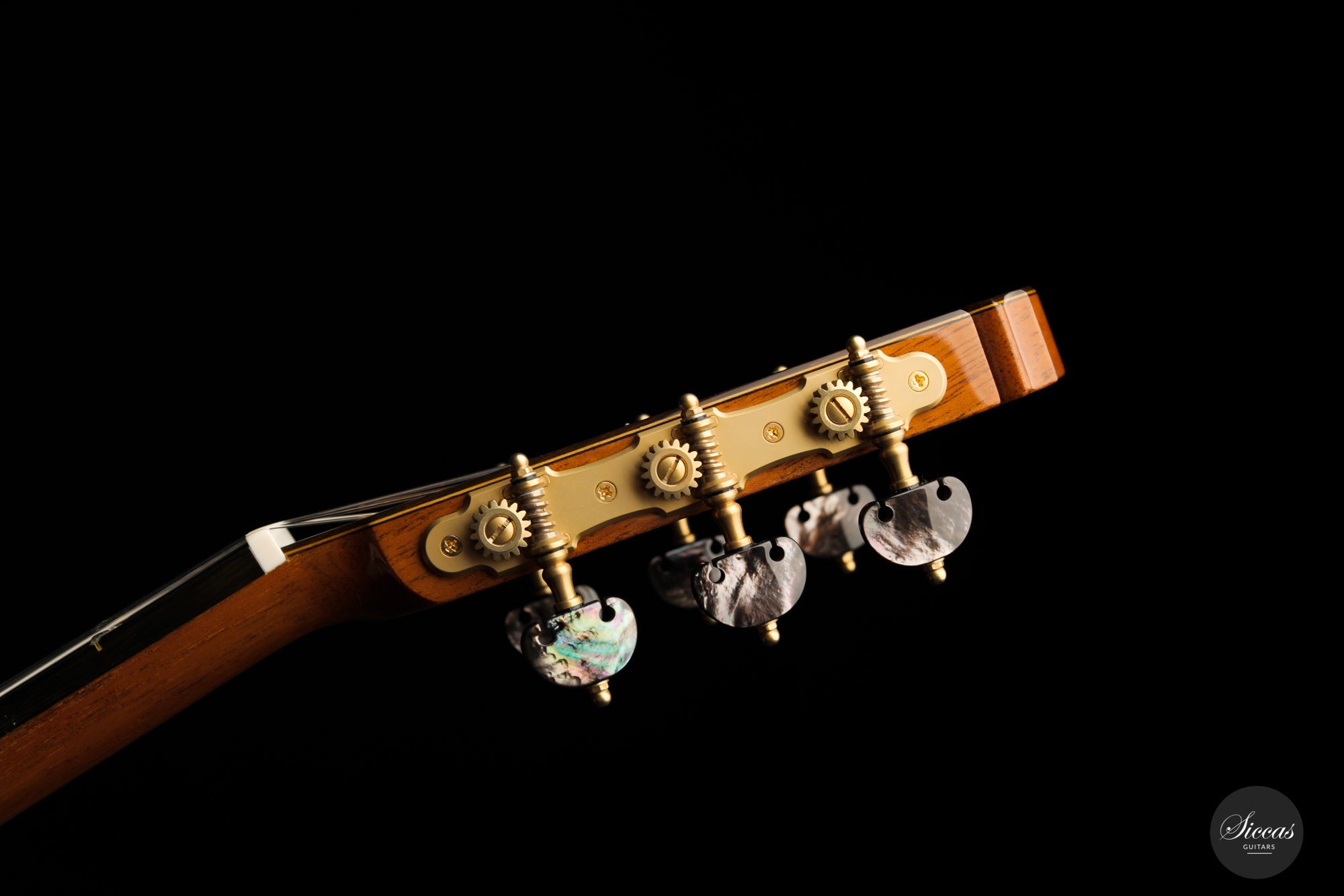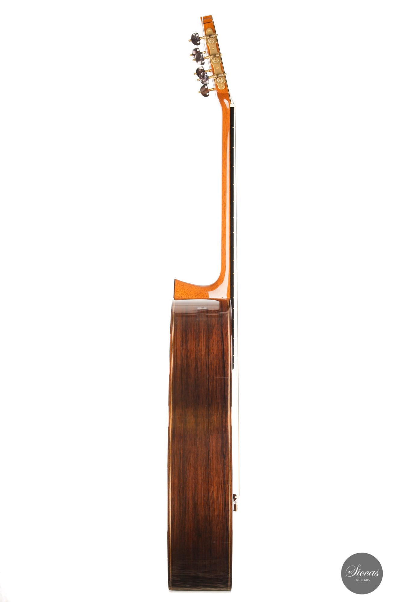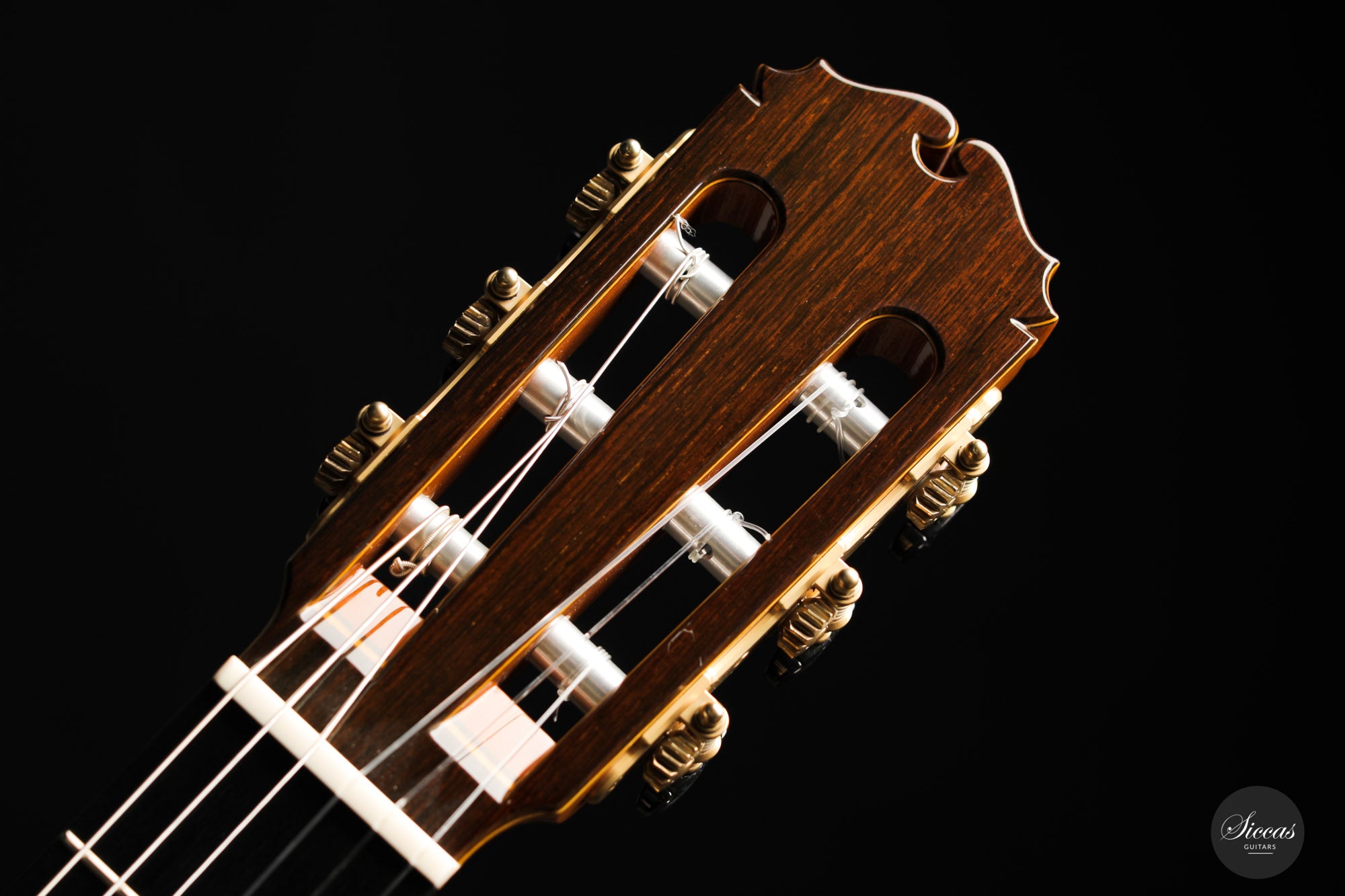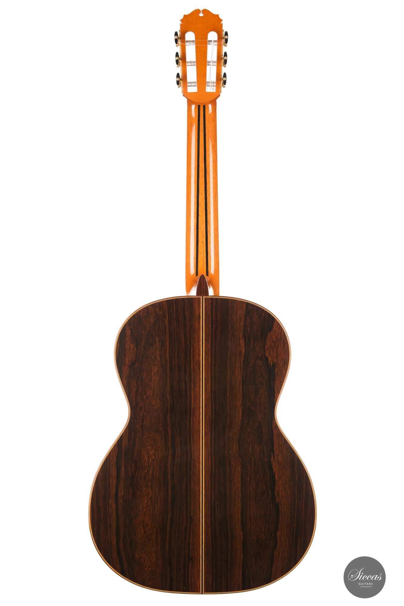 The Maestro model is a very beautiful guitar made from the oldest and highest quality precious woods found in the Kohno stock. This exceptional guitar is as new, without any signs of play wear. It is built with the seven fan bars and an asymmetrical bracing typical of Masaki Sakurai, combined with three very thin crossbars. This guitar is responsive and has an excellent volume. Furthermore, the sound is precise and projects clearly. It is a guitar with an optimal balance and a relatively neutral but very malleable tone. This allows the guitarist to express himself freely in all repertoires. It is therefore an instrument rich in timbre, very easy to play, and without a doubt capable of filling concert halls.
