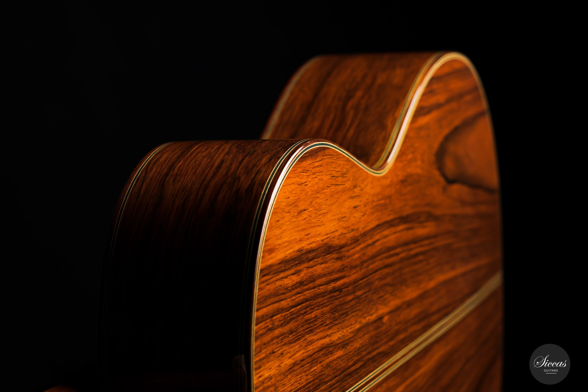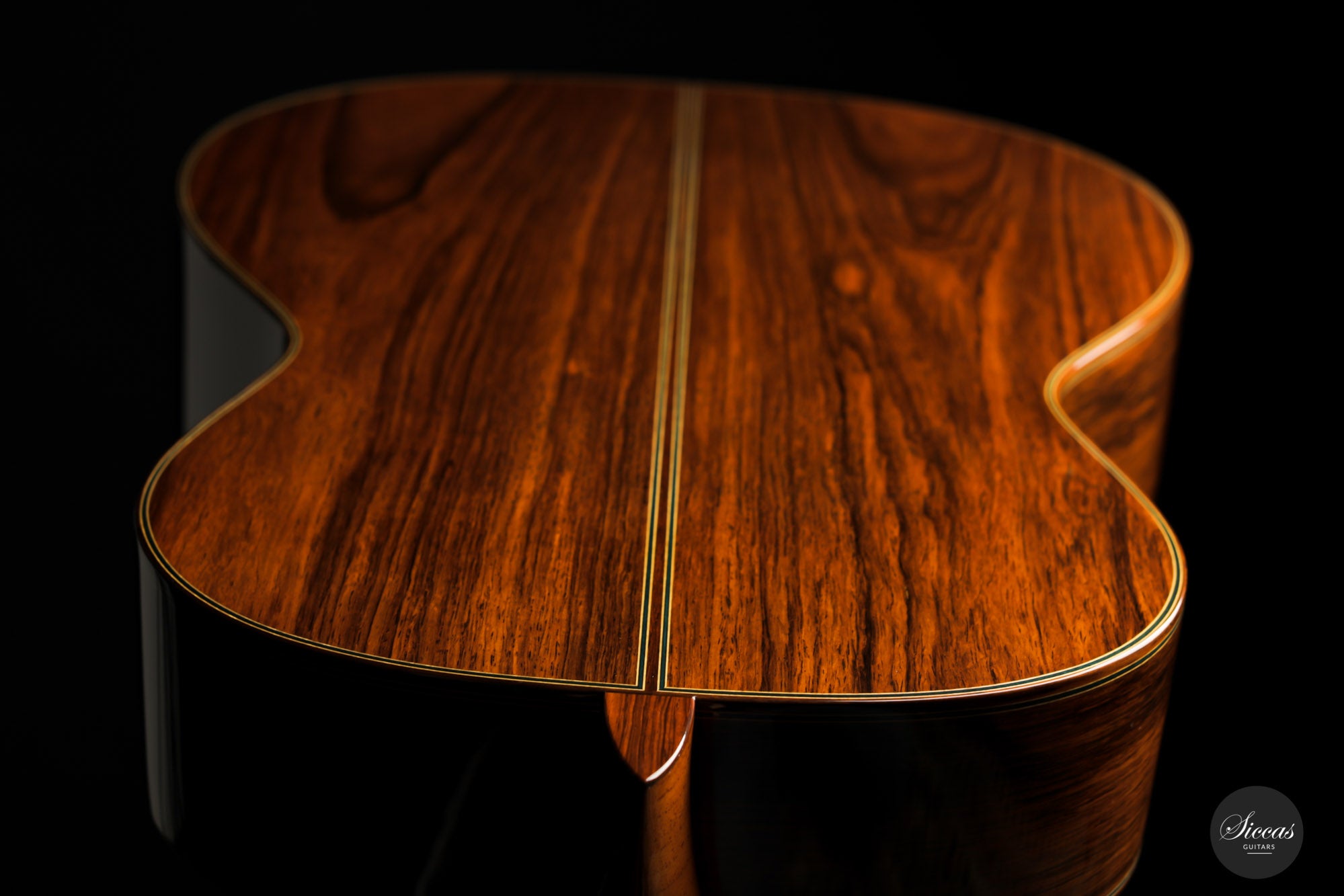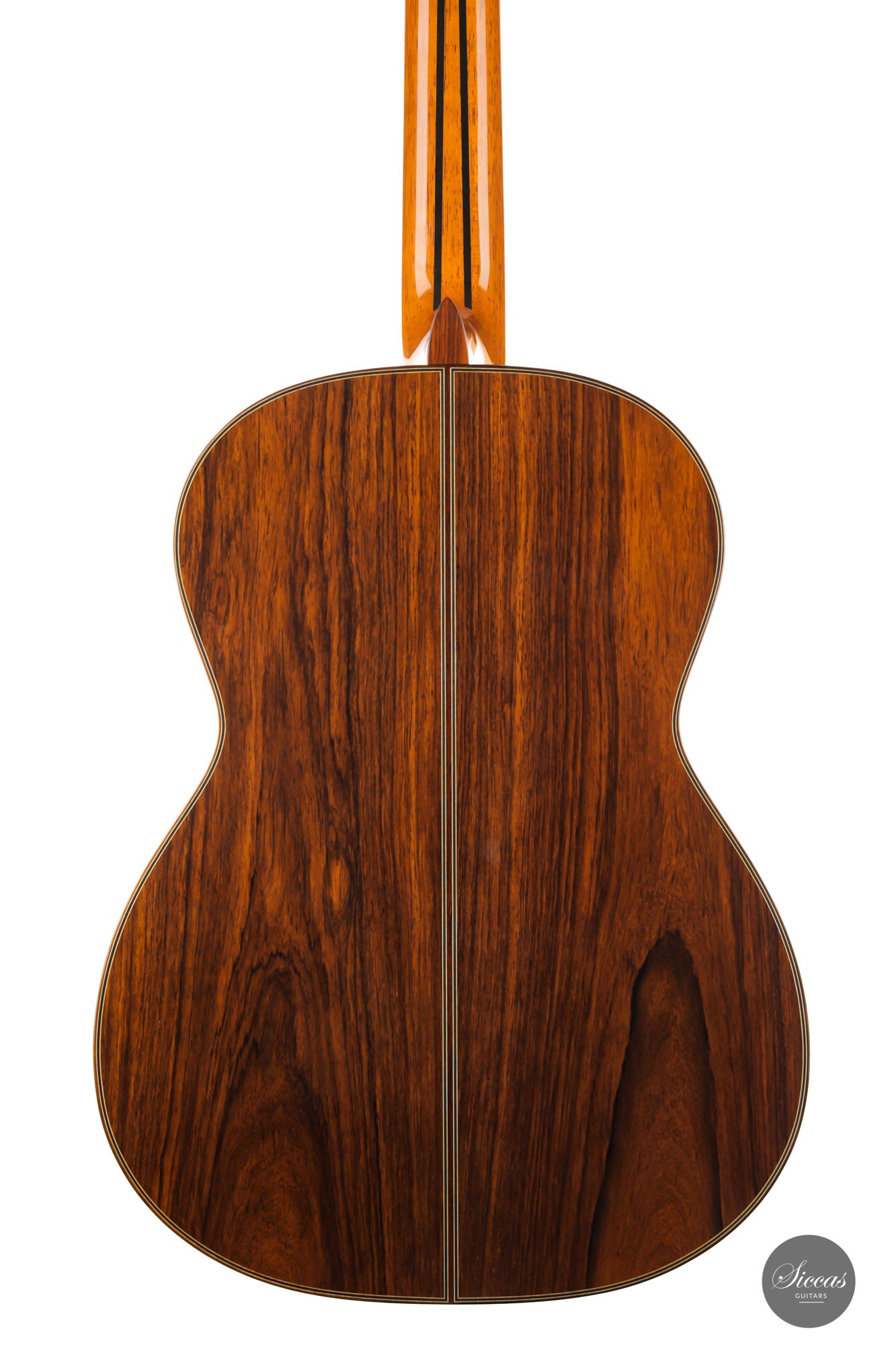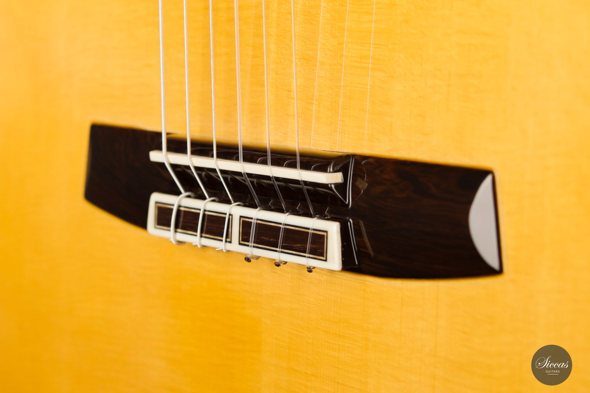 The "Maestro RF" is the most advanced model made by Masaki Sakurai. It is a very beautiful guitar crafted from the oldest and most precious tone woods from the Kohno stock. This model can be recognized by the head decorated with fine marquetry and by the significantly raised fingerboard. This exceptional guitar is new, straight from the famous Japanese workshop. It is built with the seven fan bars and extremely asymmetrical bracing typical of Masaki Sakurai, combined with three very thin crossbars.