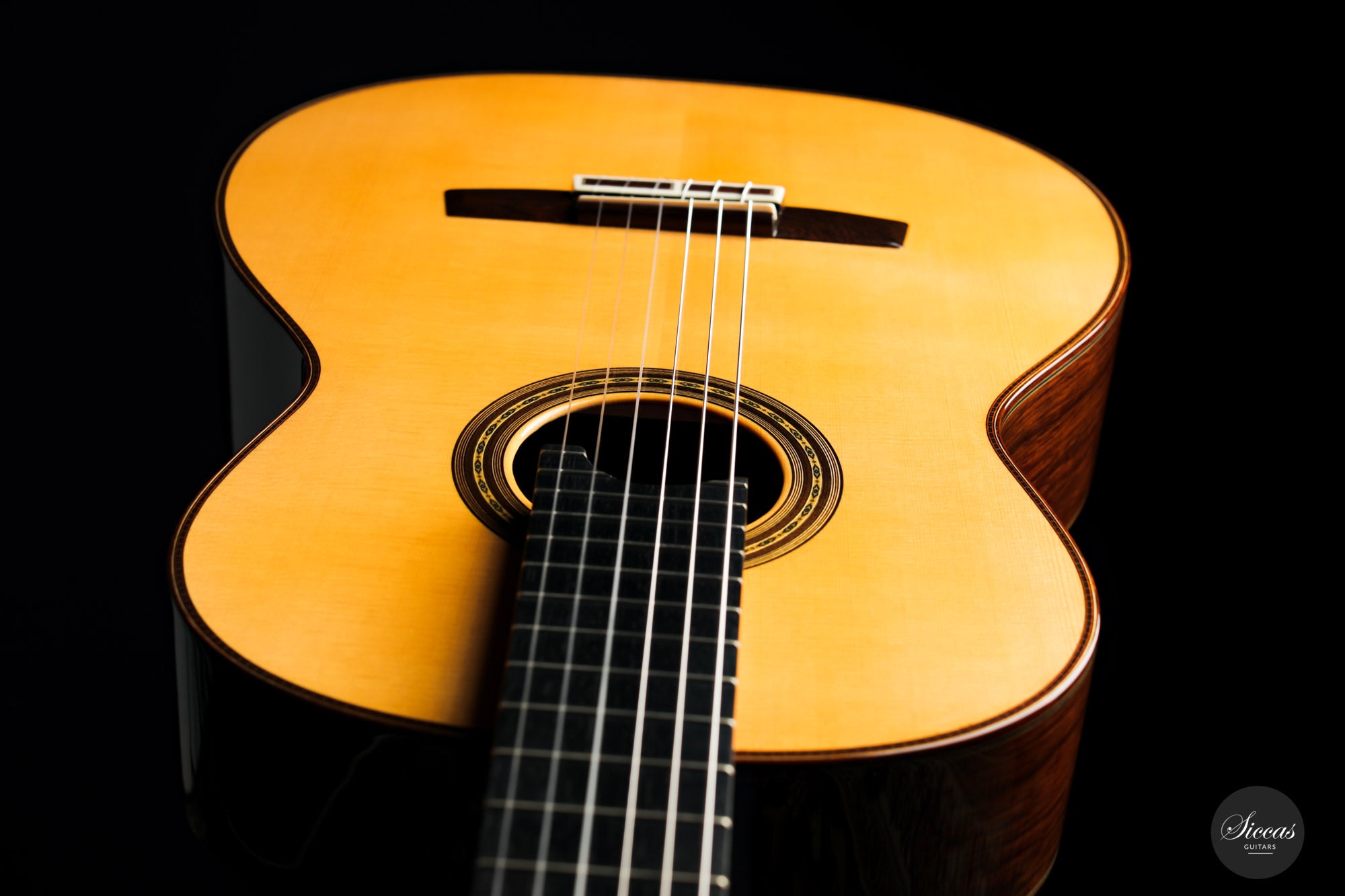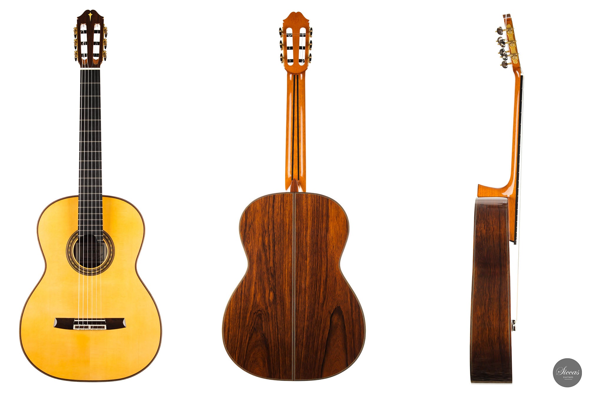 This guitar is very responsive and has excellent volume. Moreover, the sound is precise and projects clearly. It is an instrument with optimal balance and a relatively pure but very malleable tone. This allows the guitarist to express himself freely in all repertoires. It is rich in timbre, very pleasant to play and undoubtedly capable of filling concert halls. The 64 cm scale provides additional playing comfort for the left hand and at the same time all the sound volume and tonal quality of the standard 65 cm scale instruments.