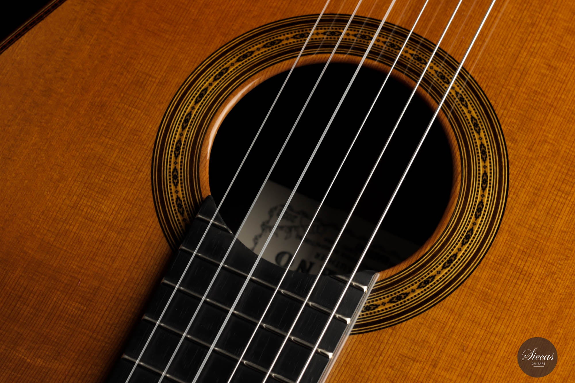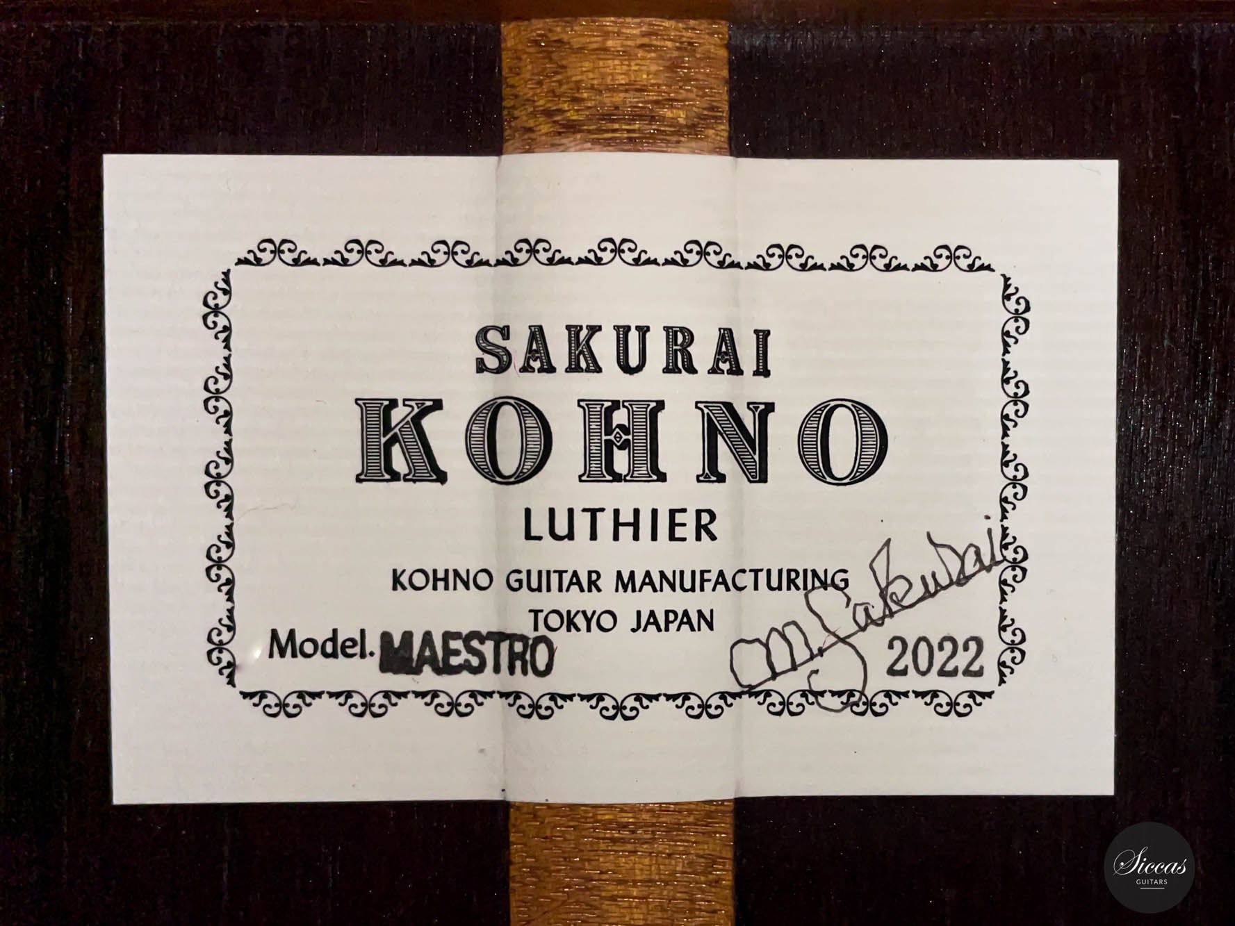 The Maestro model is the highest model in the Sakurai-Kohno range, made with the oldest and most high-quality precious woods. It has seven fan struts, asymmetrical bracing, and three very thin crossbars. Masaki Sakurai built this guitar in the same tradition and manner as his uncle Masaru Kohno, hence the name Kohno as a tribute to the label. The result is an instrument very similar to the Masaru Kohno Model 80 from the late 1970s.