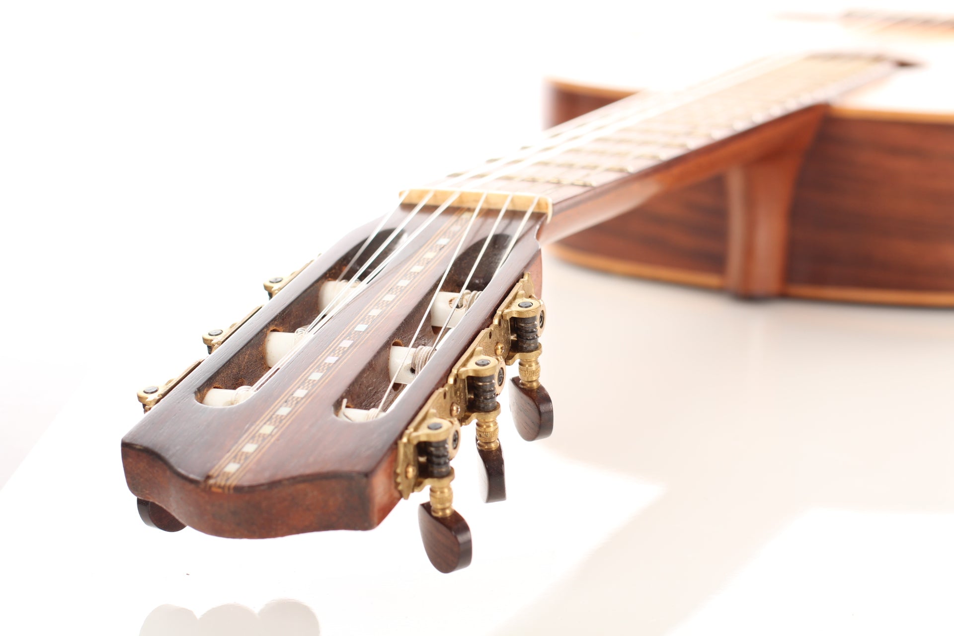 Price on requestSaleLuthier: Hermann Hauser IIConstruction Year: 1956Construction Type: TraditionalTop: SpruceBack and Sides: Brazilian rosewood (CITES certified)Soundboard Finish: French polishBody Finish: French polishAir Body Frequency: F sharp / GWeight (g): 1440Tuner: LandstorferCondition: Excellent -