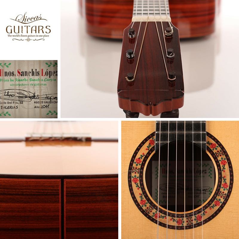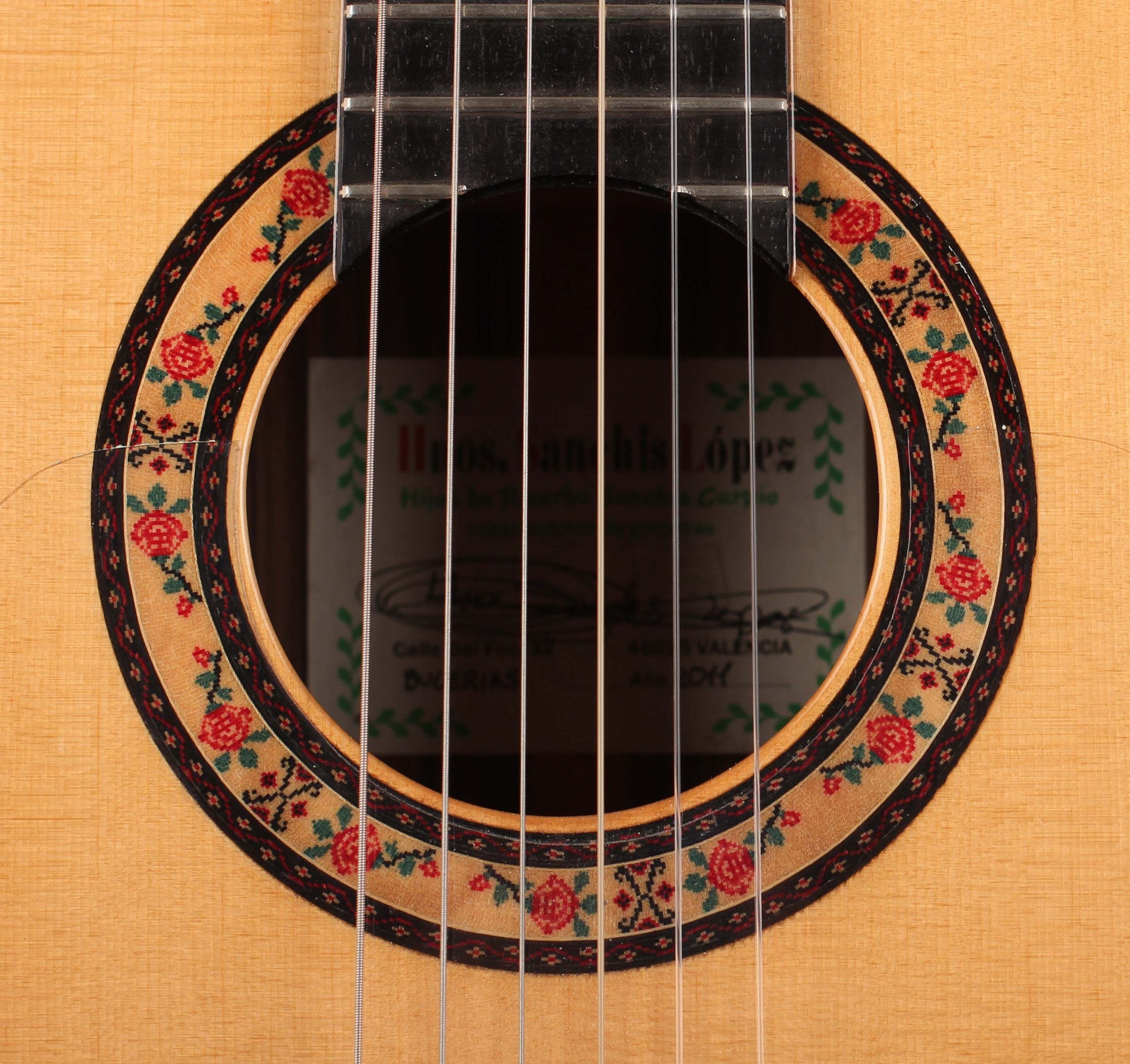 This Hermanos Sanchis López Bulerías model is in excellent condition. Very good woods were used to build this guitar – 1st grade spruce for the top and 1st grade Pau Ferro for back and sides. This instrument offers an outstanding price/performance. The sound is very powerful and has a lot of projection. The basses are full, deep and crisp and the trebles are very lyrical.
