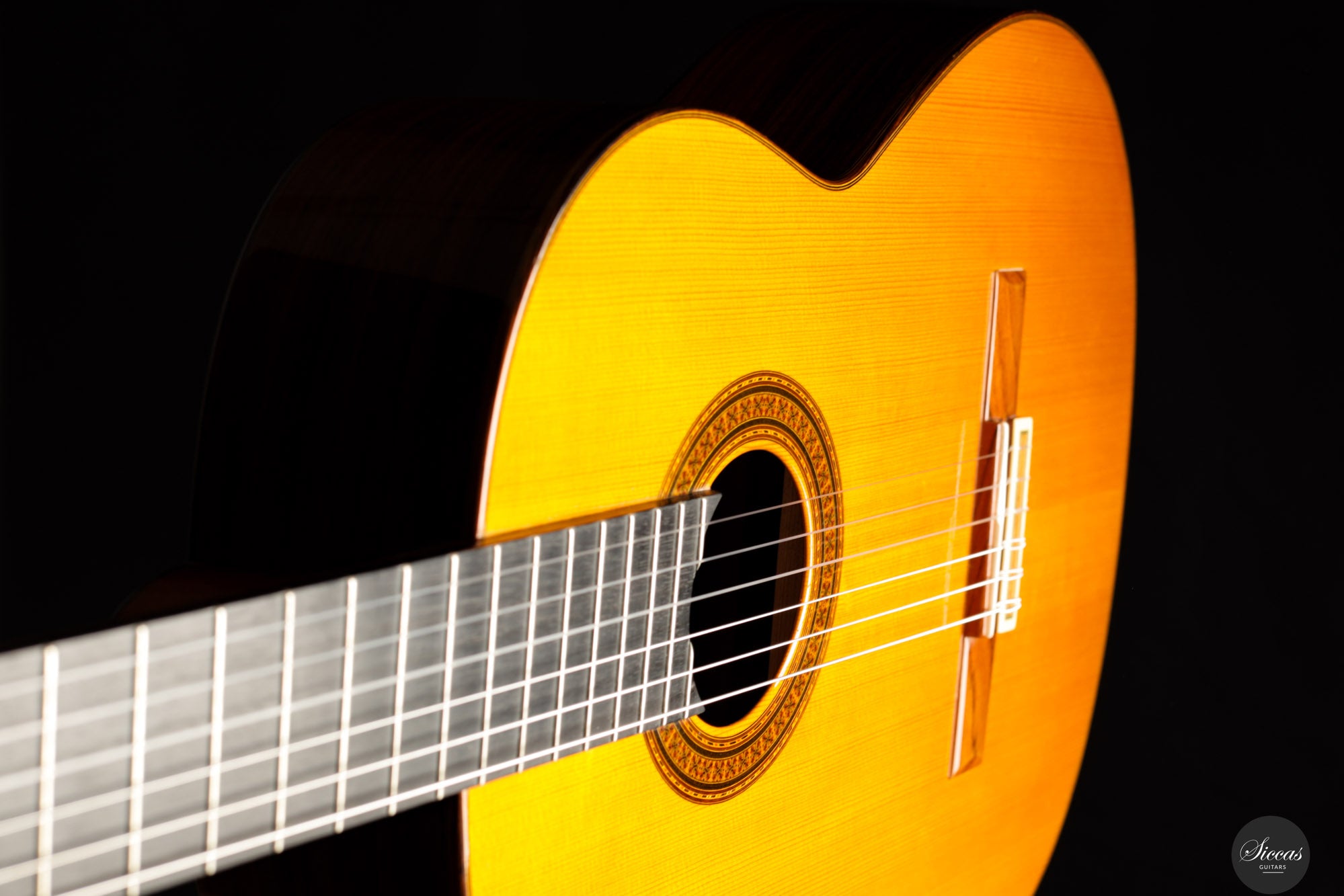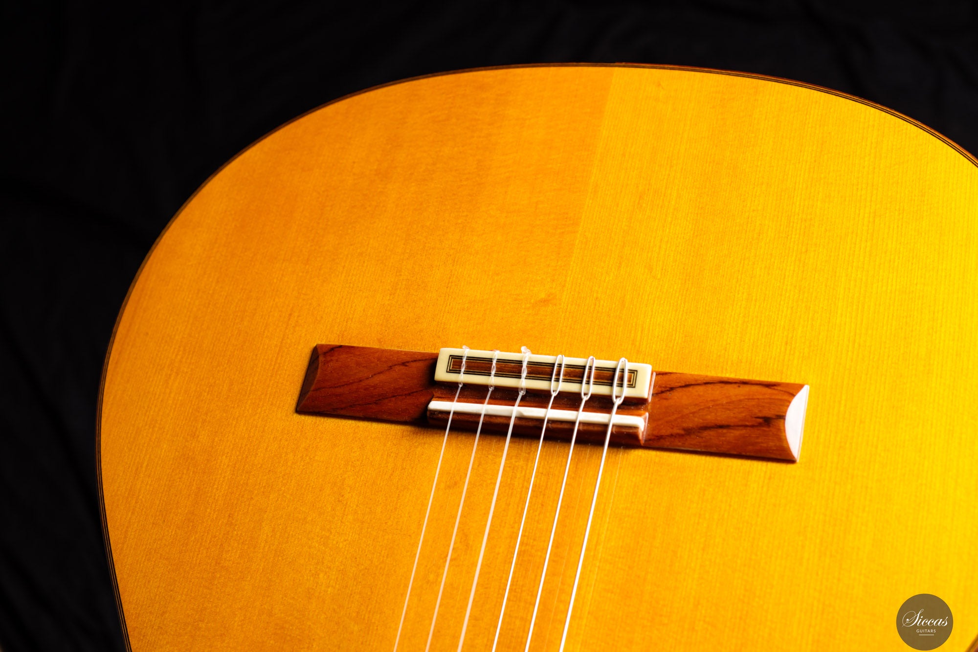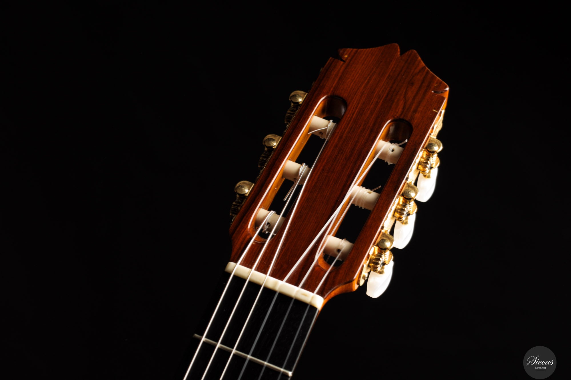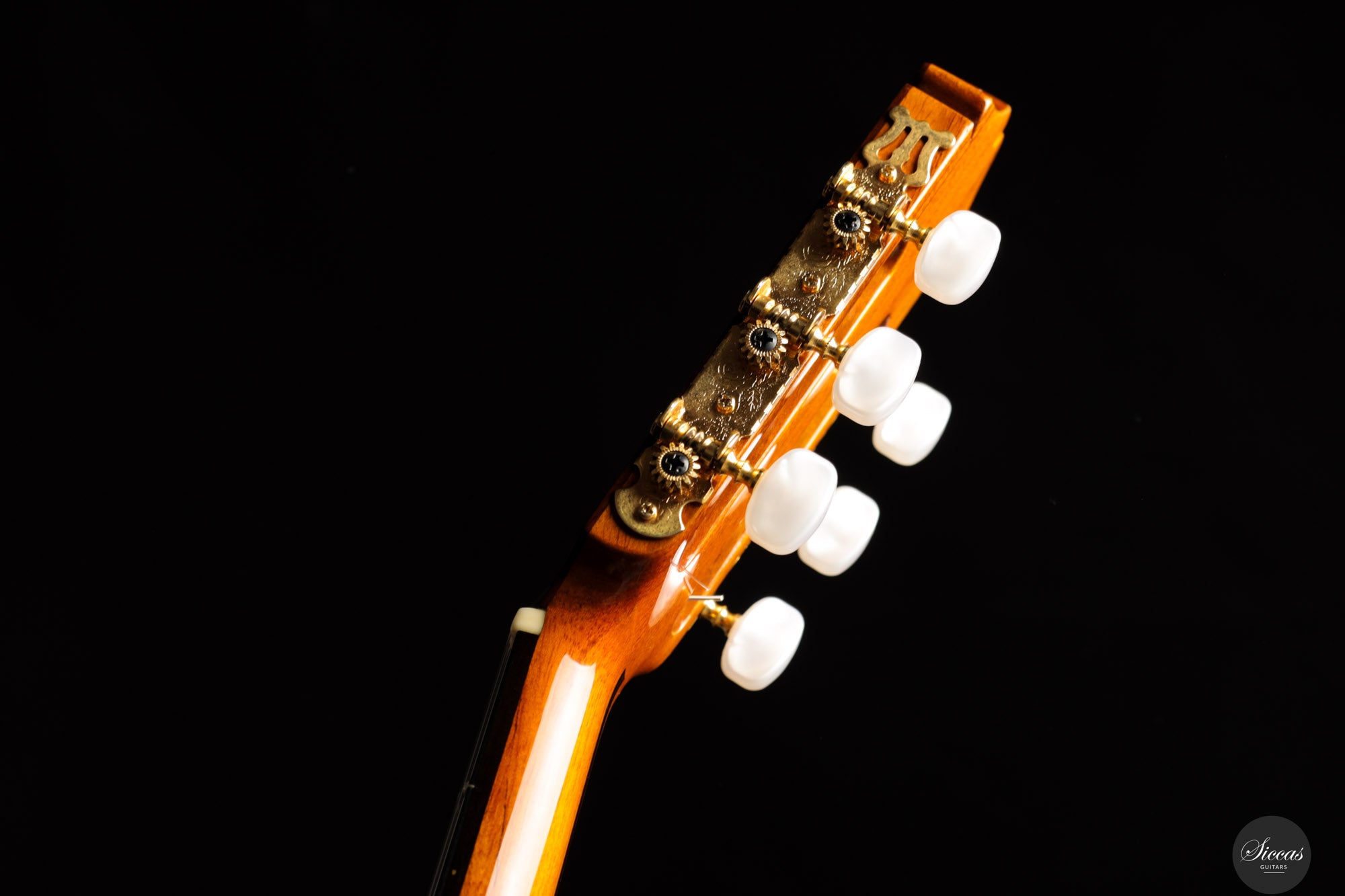This guitar is a truly beautiful instrument that embodies the spirit of Santos Hernández. It features clear and brilliant trebles, exceptional overall balance, and deep, supportive basses. The clarity of the first string is particularly noteworthy, making this guitar especially well-suited for polyphonic repertoire. Furthermore, it has ample volume, ensuring it performs well in any playing situation — from intimate settings to concert halls. A perfect fusion of elegance, tradition, and concert-level performance.