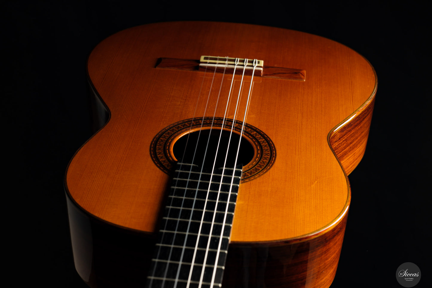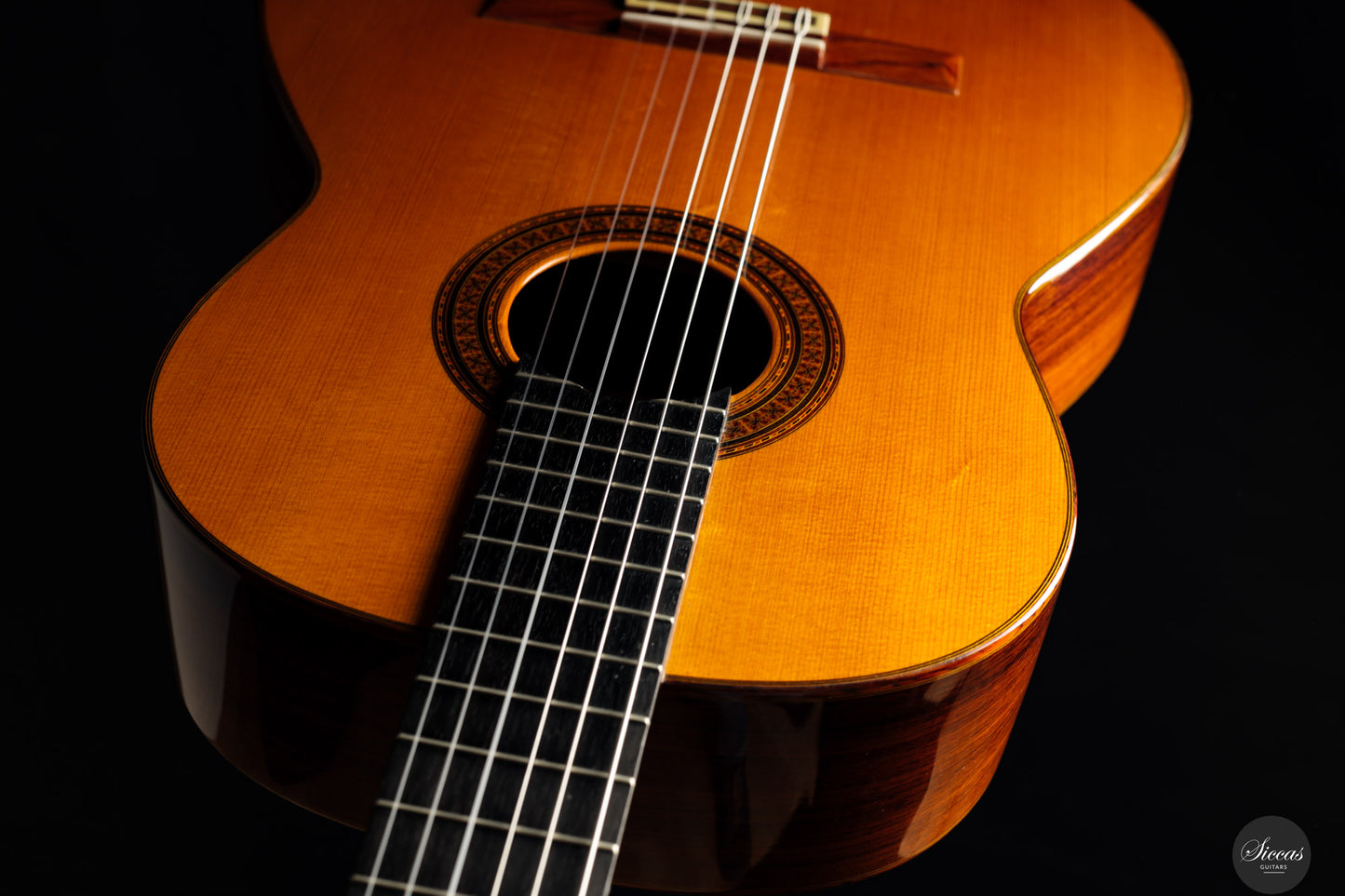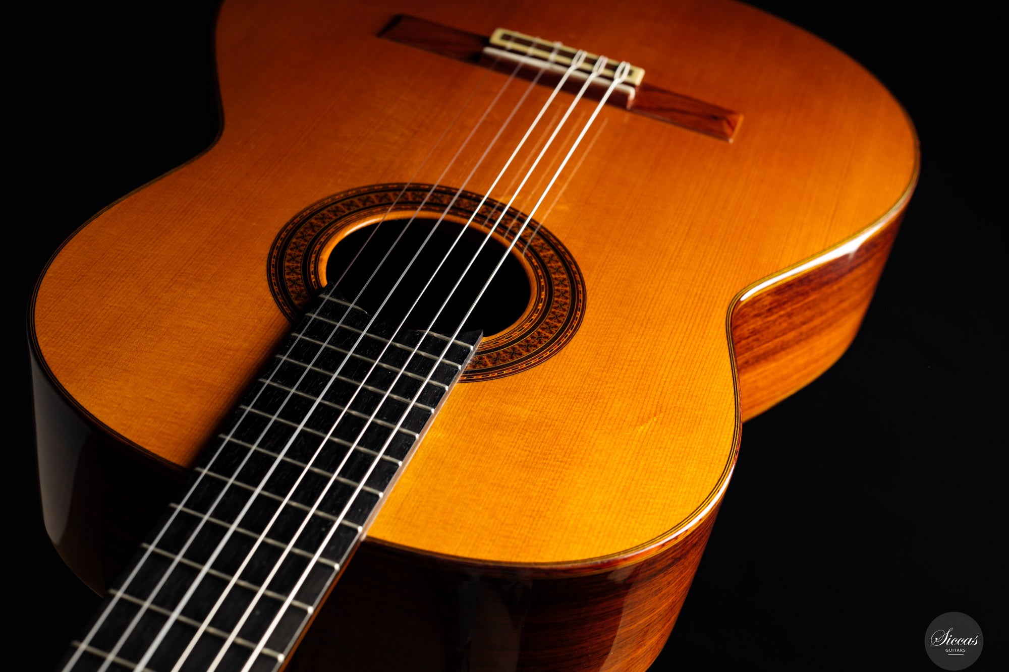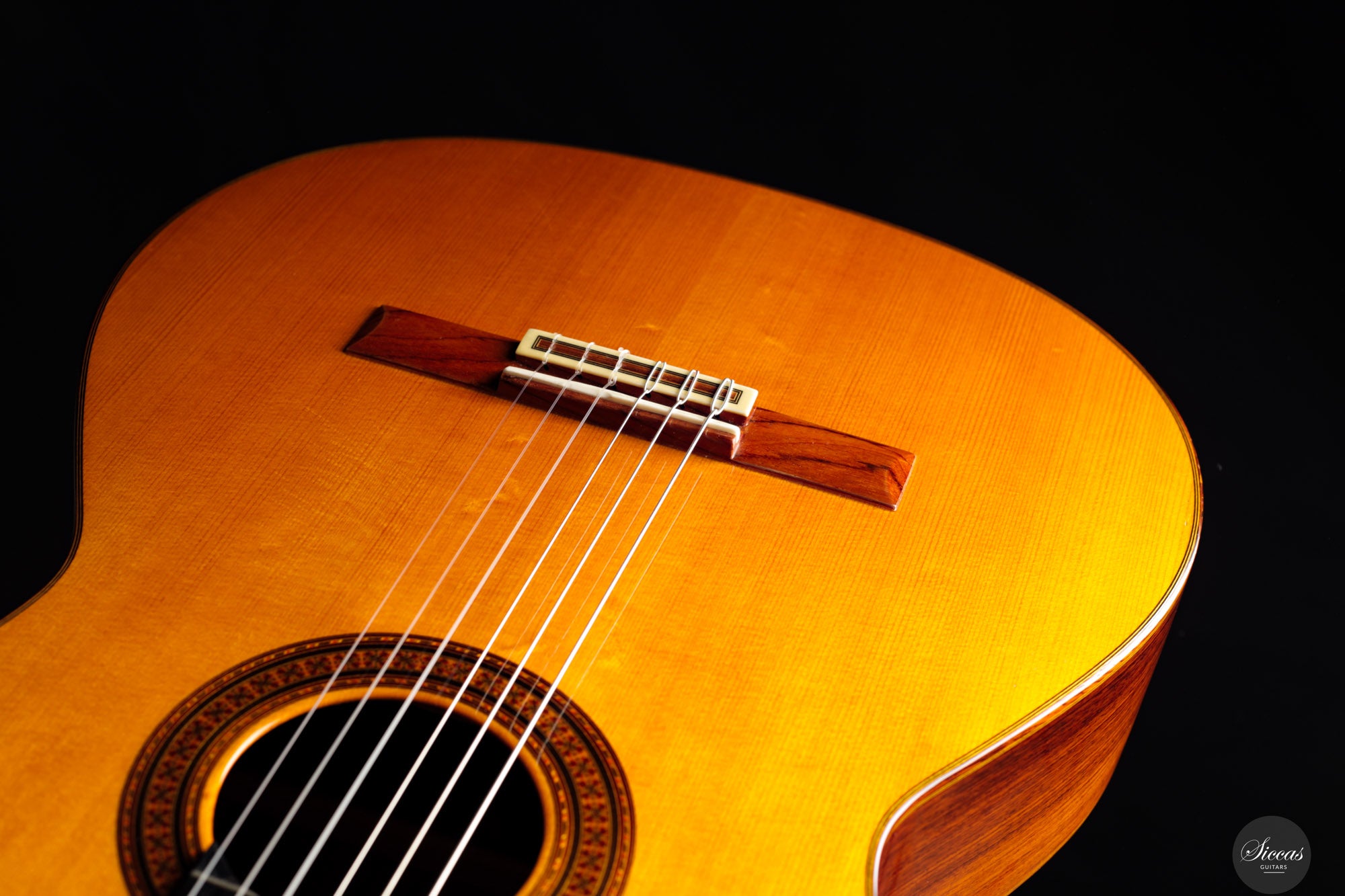 This guitar is a truly beautiful instrument that embodies the spirit of Santos Hernández. It features clear and brilliant trebles, exceptional overall balance, and deep, supportive basses. The clarity of the first string is particularly noteworthy, making this guitar especially well-suited for polyphonic repertoire. Furthermore, it has ample volume, ensuring it performs well in any playing situation — from intimate settings to concert halls. A perfect fusion of elegance, tradition, and concert-level performance.