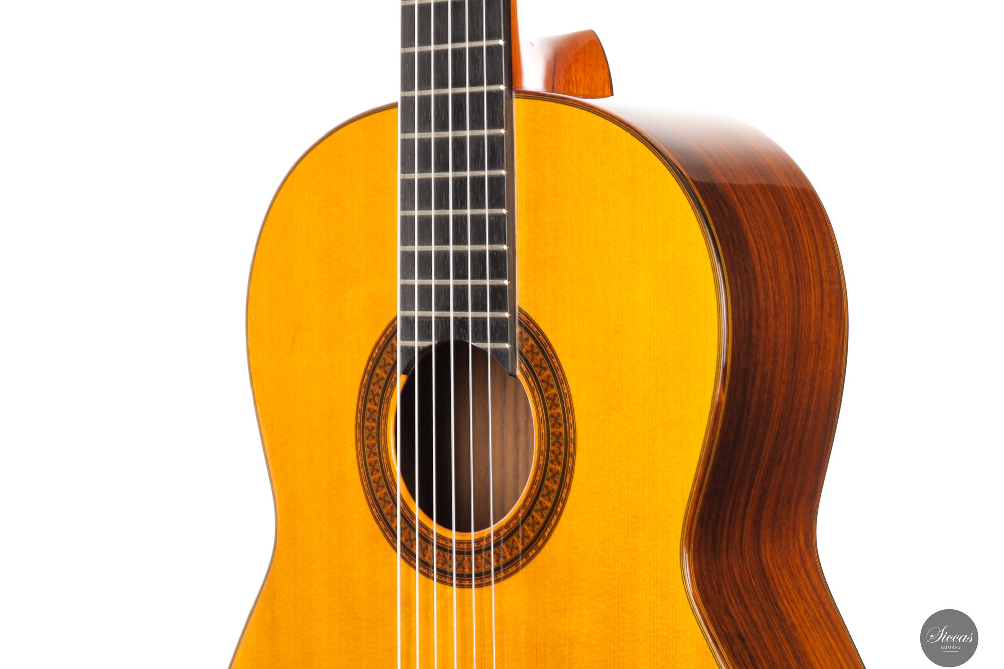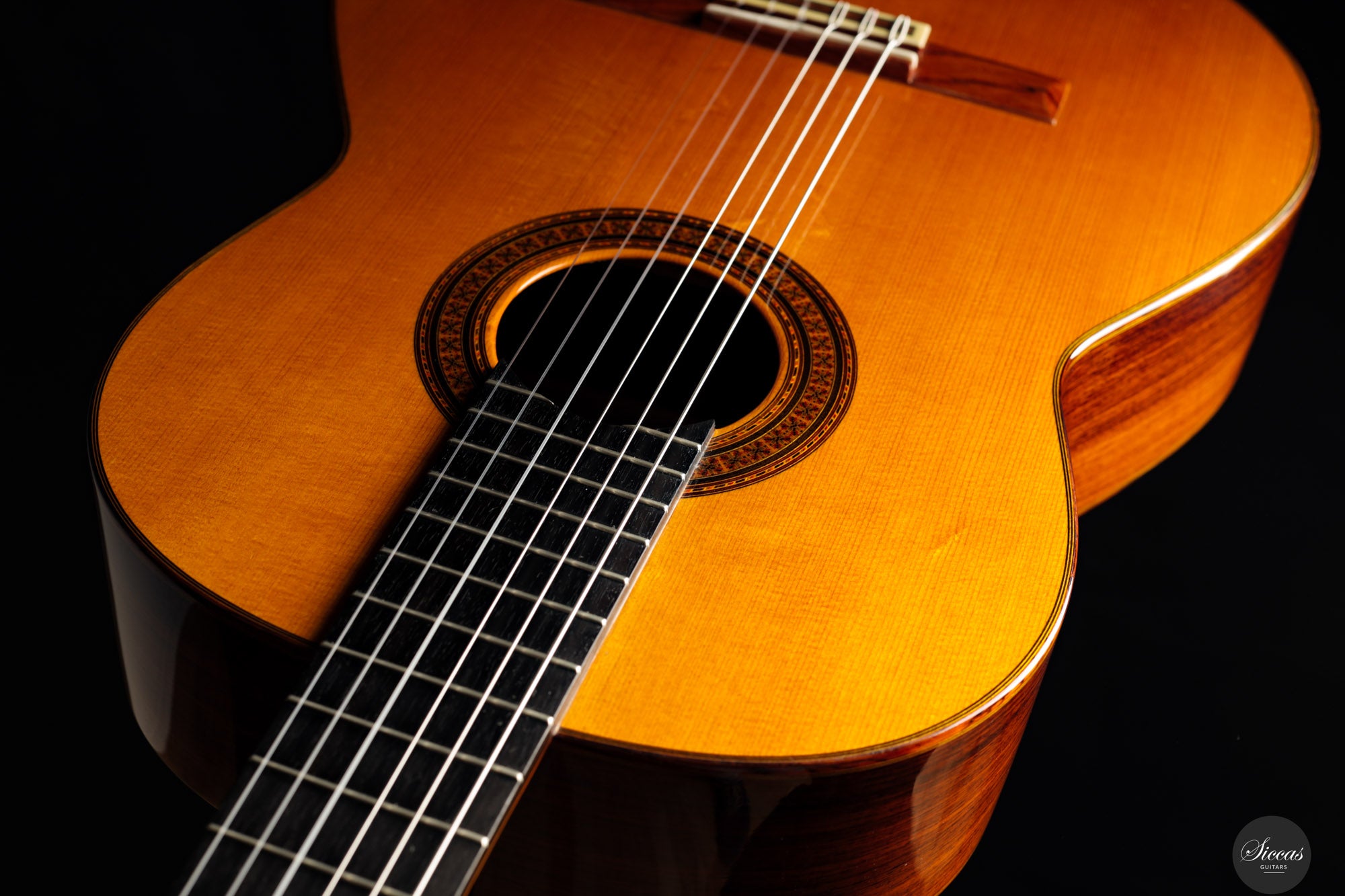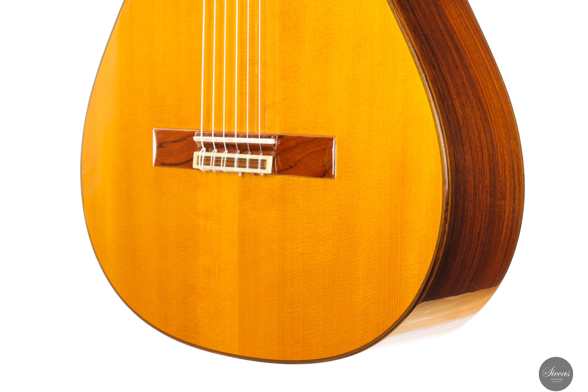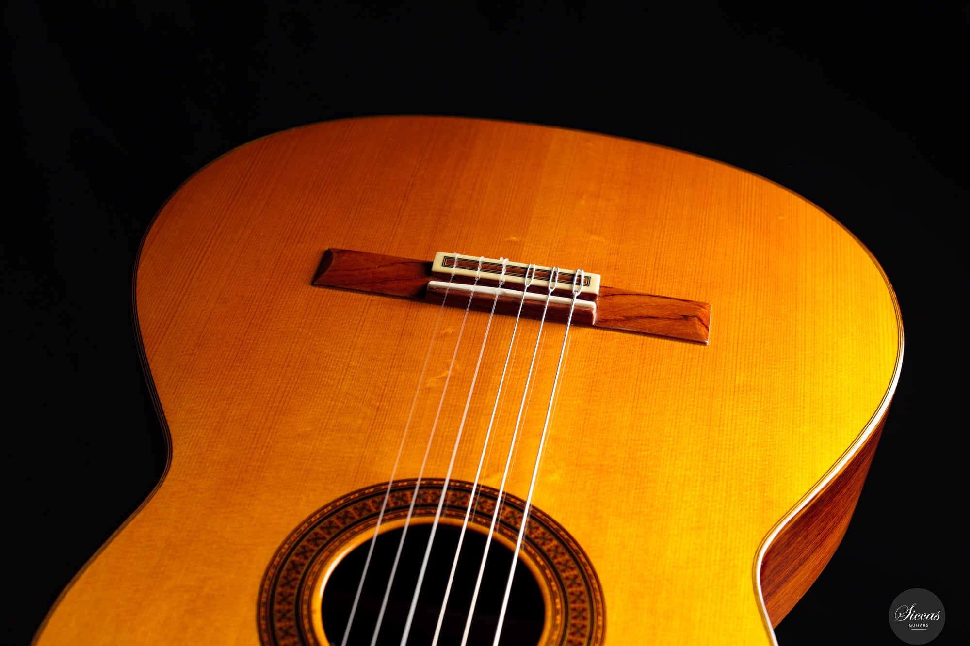 This guitar is a truly beautiful instrument that embodies the spirit of Santos Hernández. It features clear and brilliant trebles, exceptional overall balance, and deep, supportive basses. The clarity of the first string is particularly noteworthy, making this guitar especially well-suited for polyphonic repertoire. Furthermore, it has ample volume, ensuring it performs well in any playing situation — from intimate settings to concert halls. A perfect fusion of elegance, tradition, and concert-level performance.