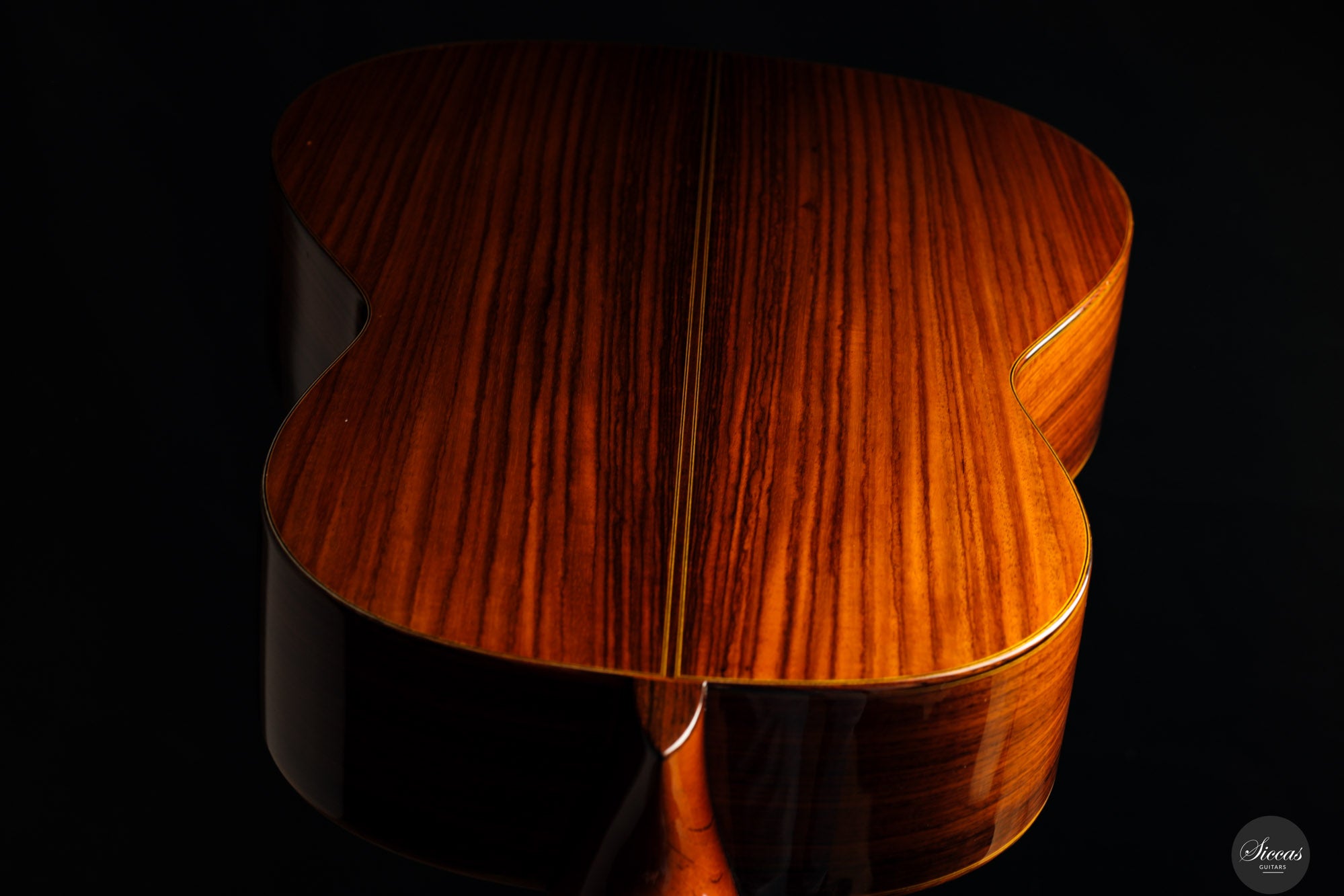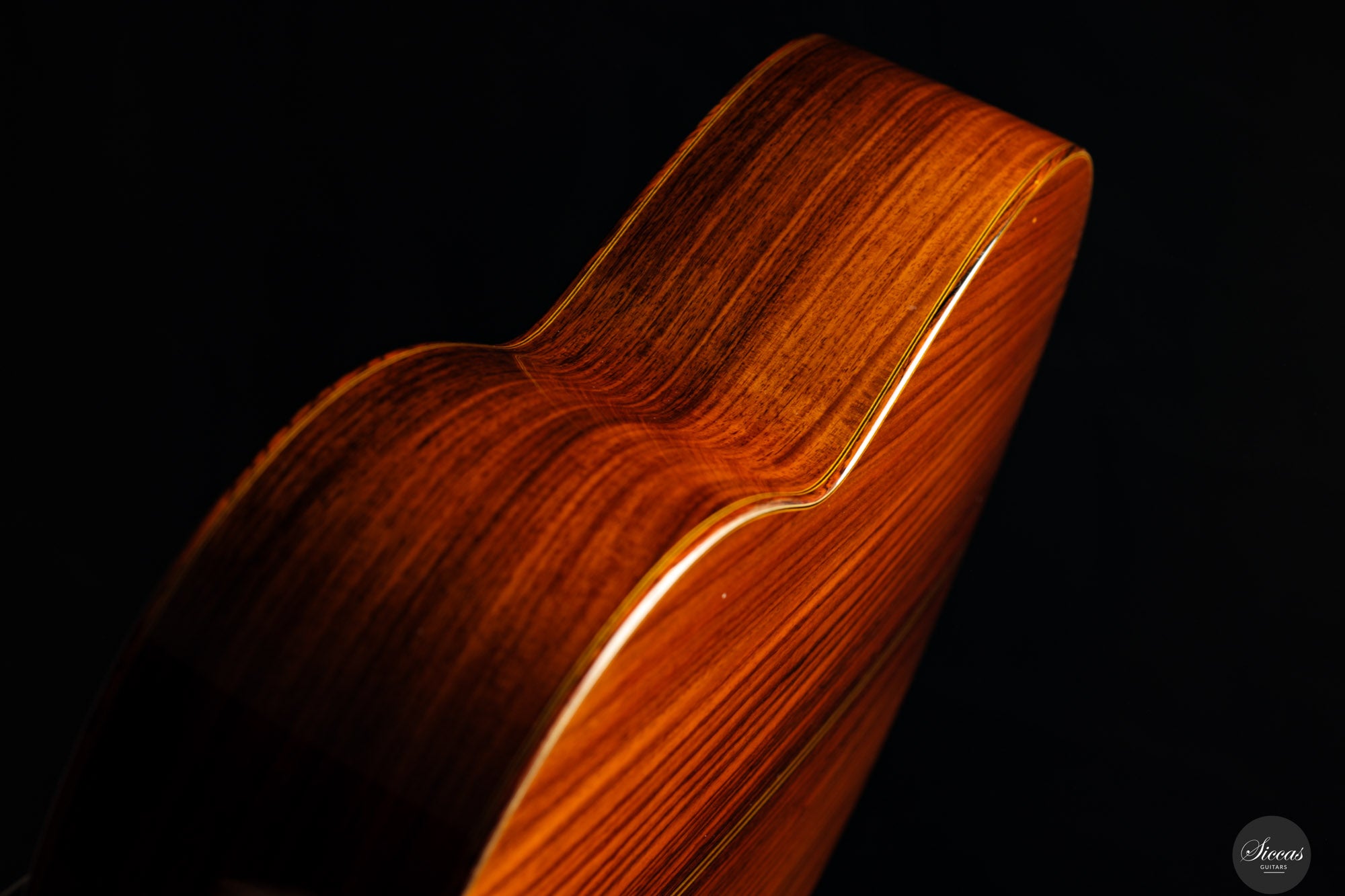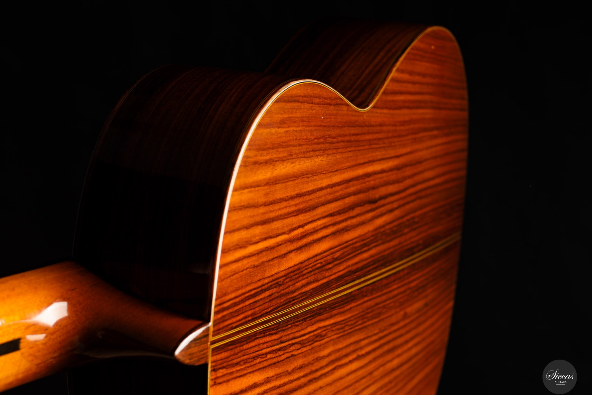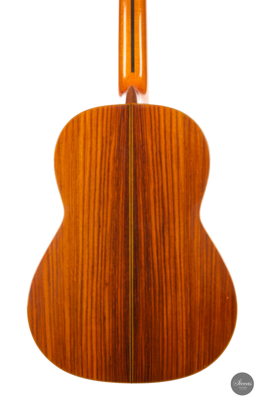 This guitar is a truly beautiful instrument that embodies the spirit of Santos Hernández. It features clear and brilliant trebles, exceptional overall balance, and deep, supportive basses. The clarity of the first string is particularly noteworthy, making this guitar especially well-suited for polyphonic repertoire. Furthermore, it has ample volume, ensuring it performs well in any playing situation — from intimate settings to concert halls. A perfect fusion of elegance, tradition, and concert-level performance.