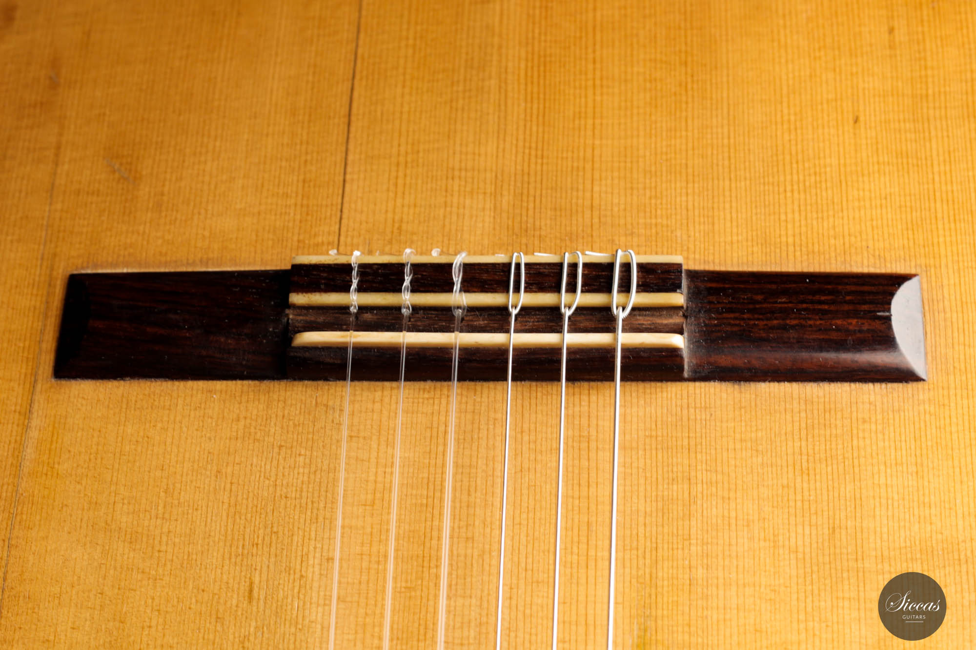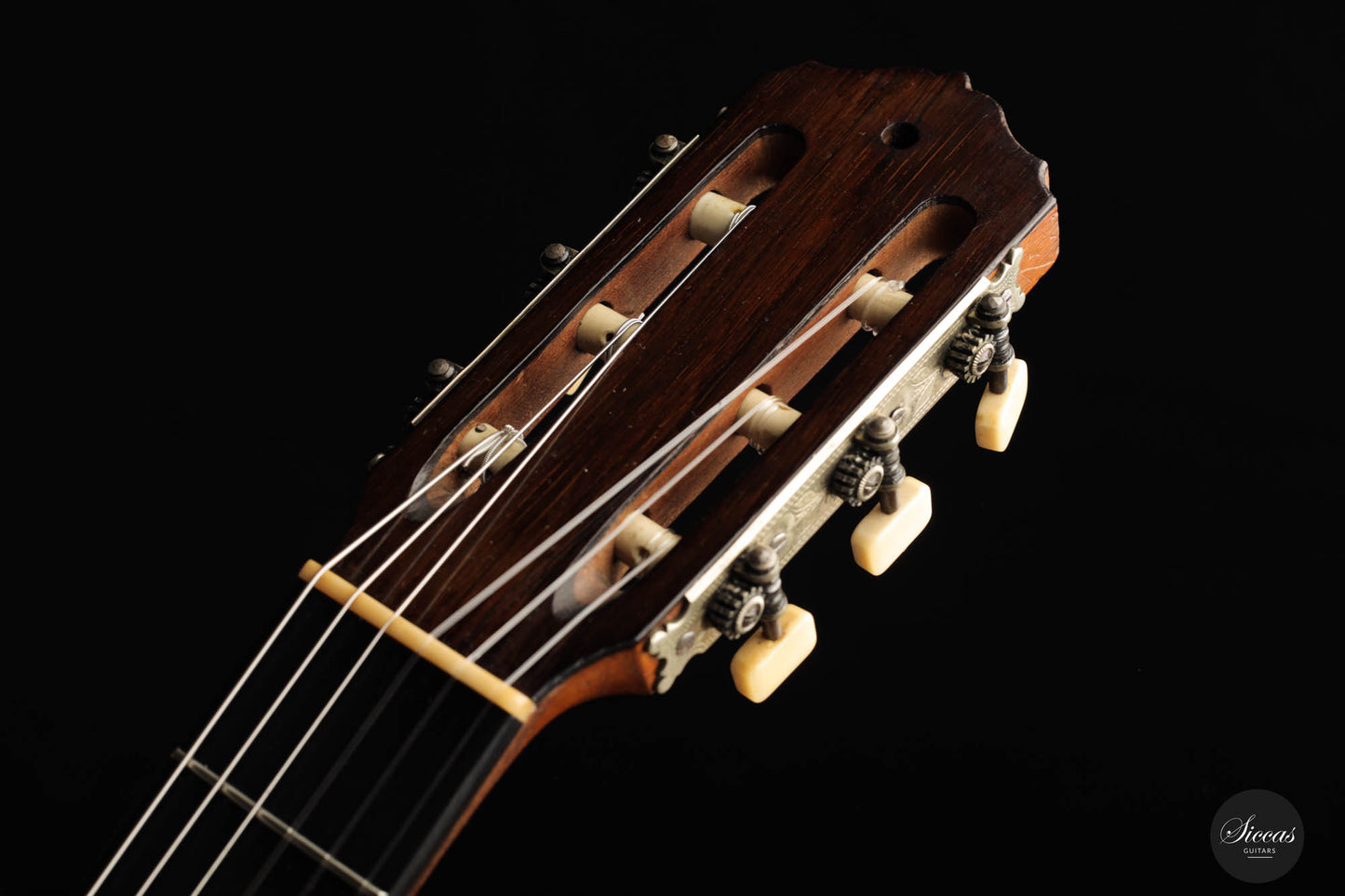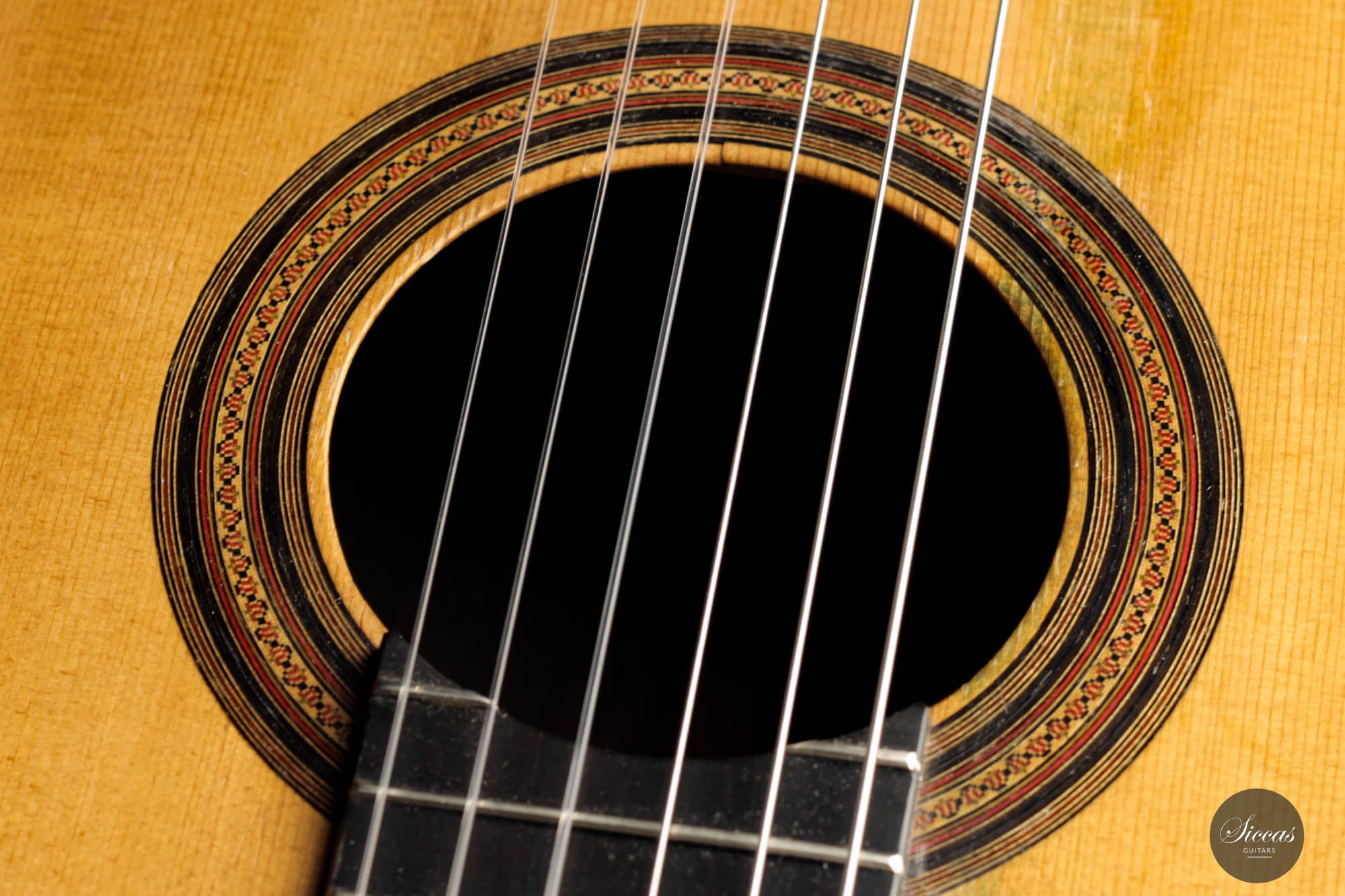 Santos Hernandez (Madrid, 1873-1943) started an apprenticeship very early in Valentin Viudes’s workshop and then moved to José Ortega’s Granadinian workshop. After moving to a few other workshops and serving as a soldier for Spain, he eventually took over Enrique Garcia’s position in Manuel Ramirez’s workshop in 1905. His involvement in building Andrés Segovia’s famous 1912 Manuel Ramirez sealed his reputation as an extraordinary luthier. He opened his first workshop in 1921 after working for Manuel Ramirez’s widow along with Domingo Esteso.