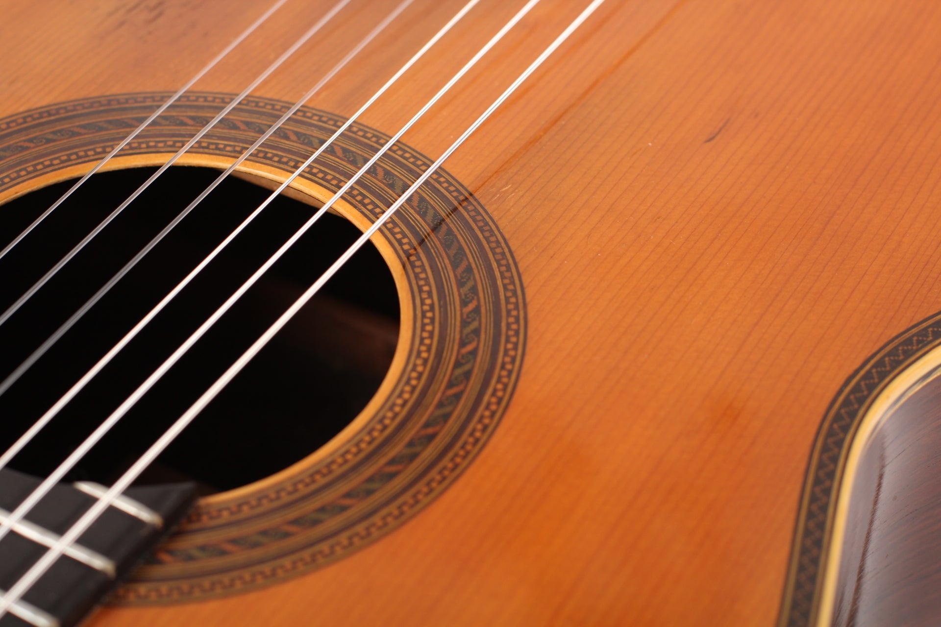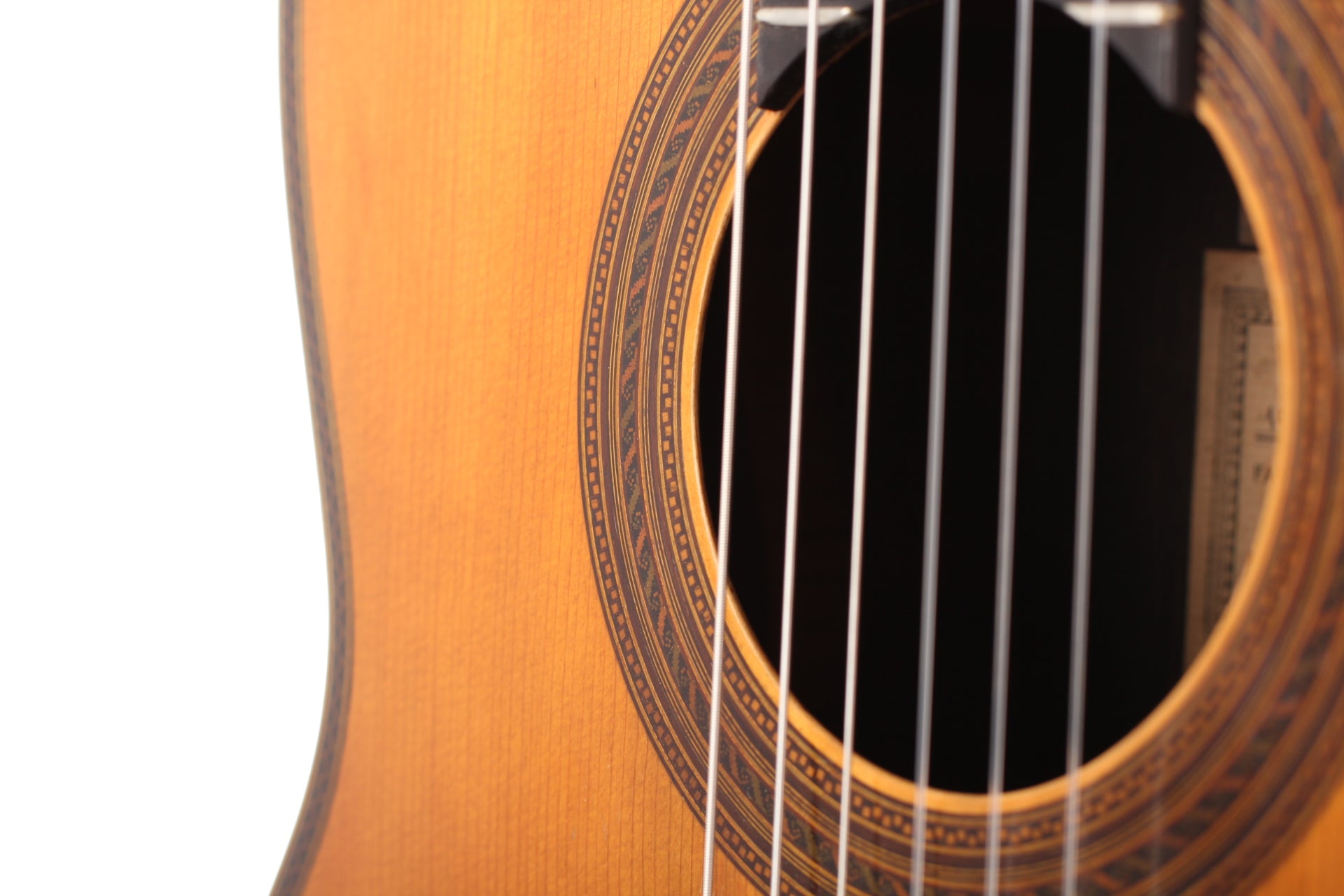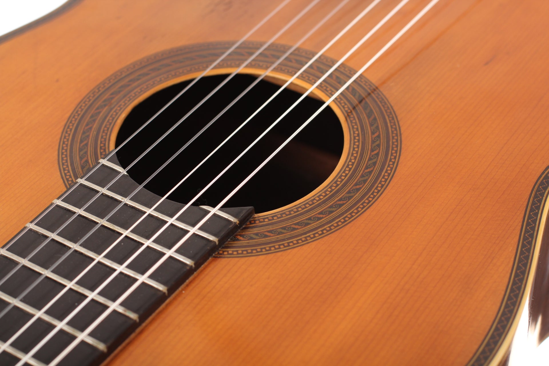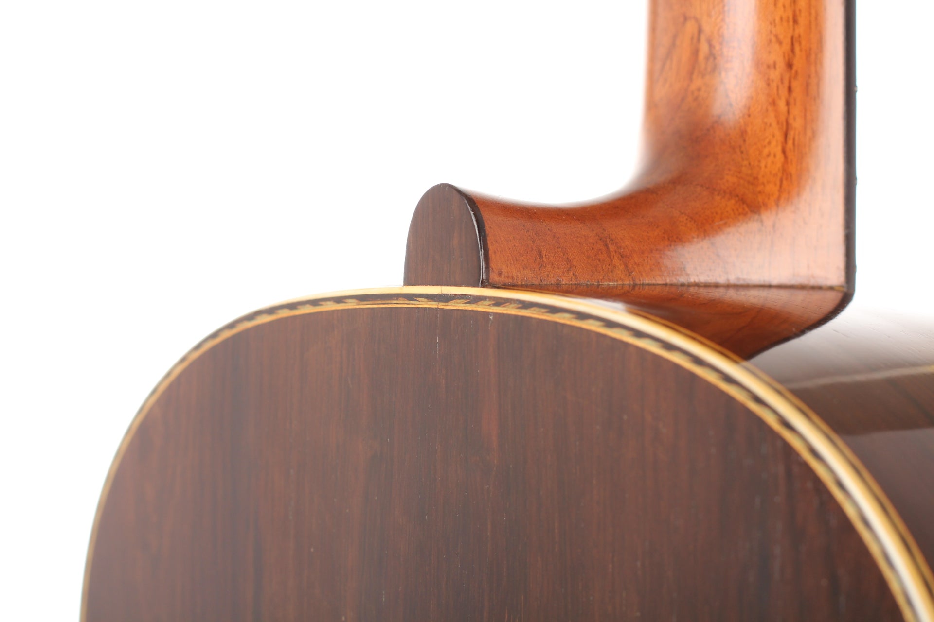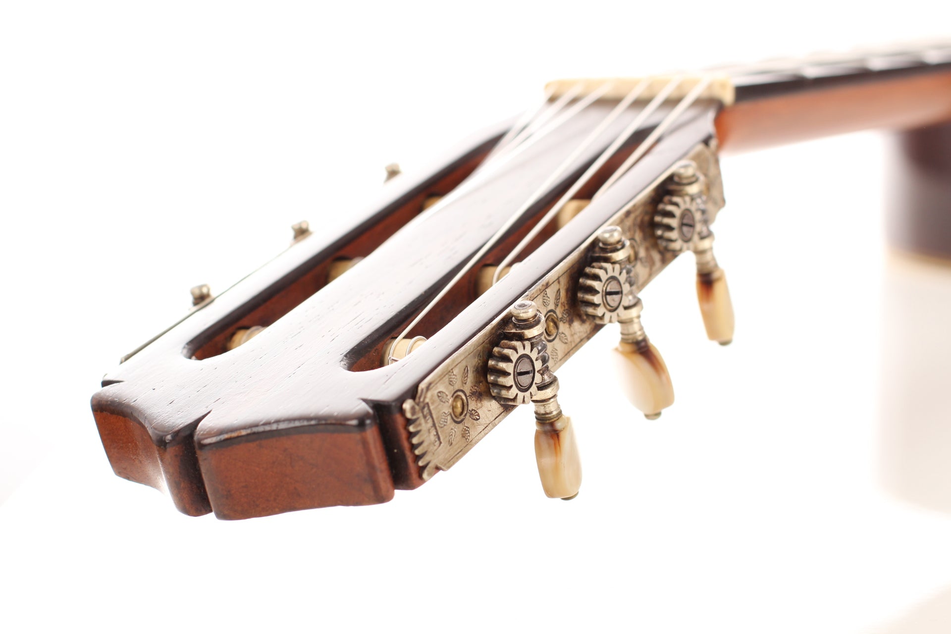 The spruce top is in good condition and basically free of cracks. Just beside the fingerboard there are two little stabalized cracks not affecting the sound nor the stability of the soundboard. Back and sides are made of rosewood. On the back you can find two well repaired cracks. The tuning-machines are old but probably not original. This guitar is a gem! The sound is very clear and brilliant and the basses are not too dominant. A great guitar from one of the most important luthiers ever lived.