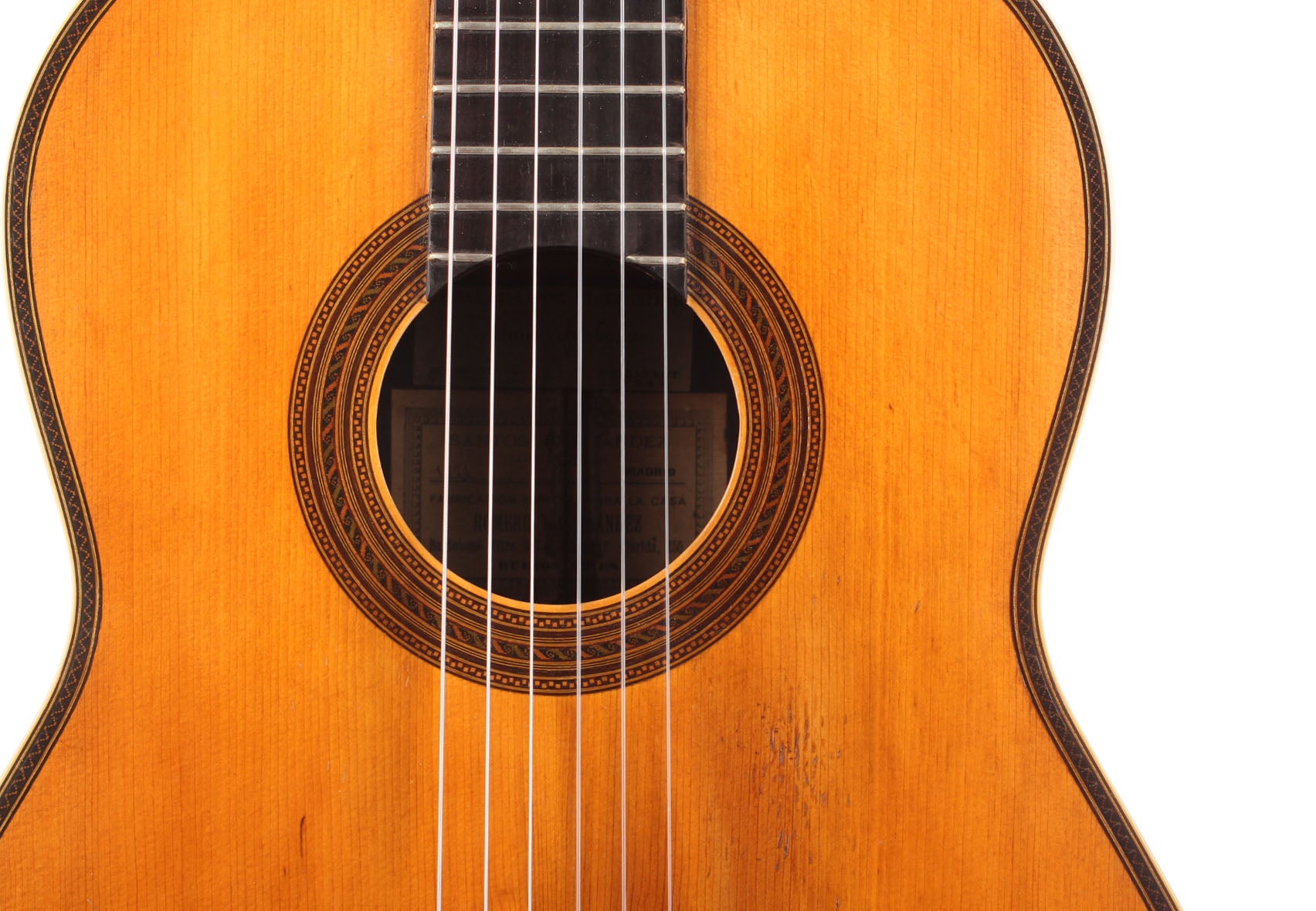 Santos Hernandez (Madrid, 1873-1943) started very early an apprenticeship at the workshop of Valentin Viudes where he worked only for a short time. After that he started to work in Granada at the workshop of José Ortega. Finally he went back to Madrid where he worked at the workshop of Francisco Gonzales. In 1893 he stopped to work as a luthier for five years because of the military service he has to absolve. During that period he was also in Cuba to fight in the Spanish-American war. In 1898 he left the army and opened his own workshop in ‘Calle Nicolas Salmerón’. In 1905 he started to work at the Manuel Ramirez workshop were he took over the position of Enrique Garcia (Garcia has gone to Barcelona). It seems that Hernandez was very much involved in the construction of Segovia's guitar that was made at the Ramirez workshop in 1912.