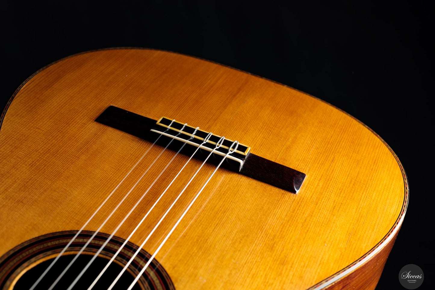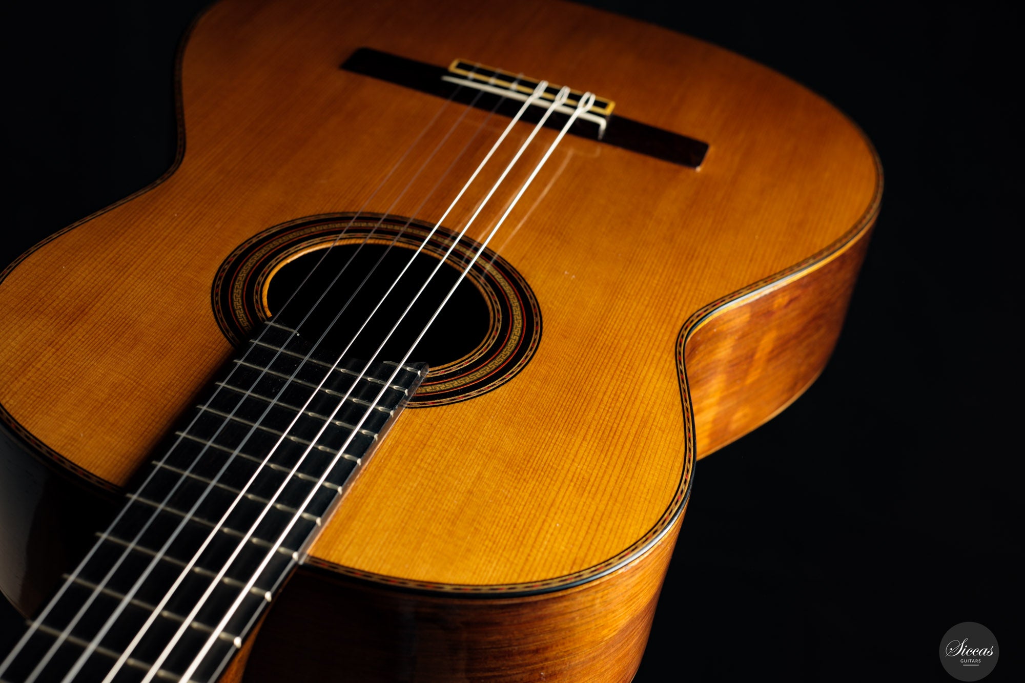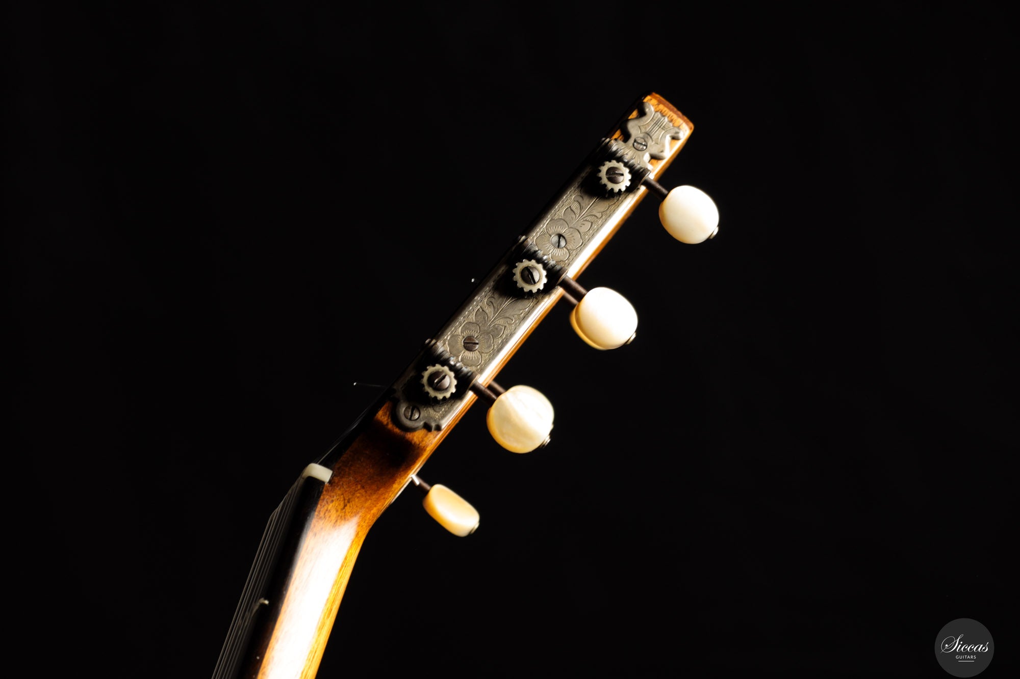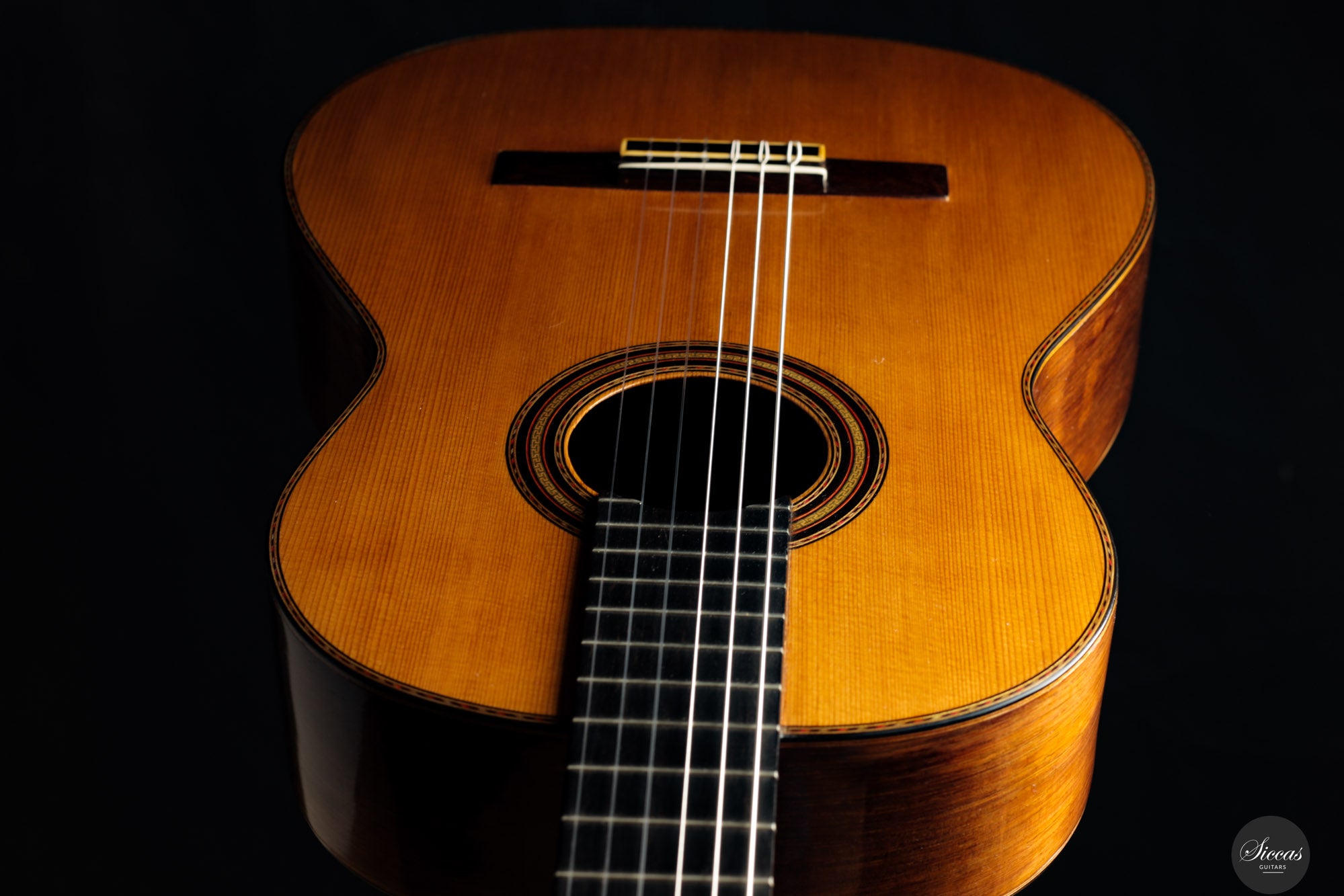 Santos Hernandez (Madrid, 1873-1943) started an apprenticeship very early in Valentin Viudes’s workshop and then moved to José Ortega’s Granadinian workshop. After moving to a few other workshops and serving as a soldier for Spain, he eventually took over Enrique Garcia’s position in Manuel Ramirez’s workshop in 1905. His involvement in the building of Andrés Segovia’s famous 1912 Manuel Ramirez sealed his reputation as an extraordinary luthier. He opened his first own workshop in 1921 after having worked for Manuel Ramirez’s widow along with Domingo Esteso.About the guitar