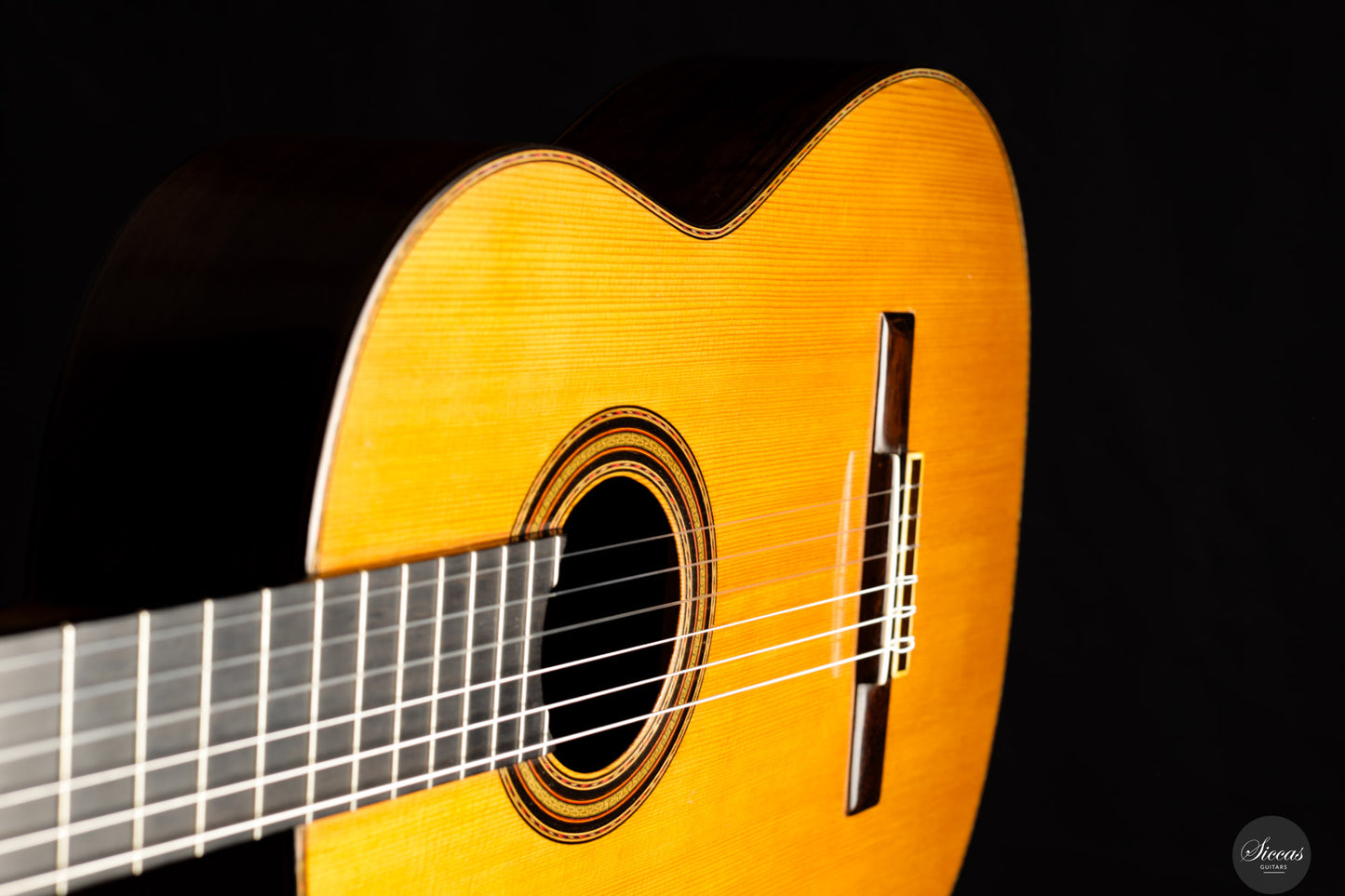 Sonically, the guitar is a marvel. It captures the essence of the “old world” tone—warm, lyrical, and full of nuance—yet remains relevant and inspiring for modern repertoire. The bass response is rich and free due to the low body resonance, while the trebles are sweet, charismatic, and articulate. It is an instrument of great expressive range, equally suited for refined historical interpretation and contemporary concert performance.Condition