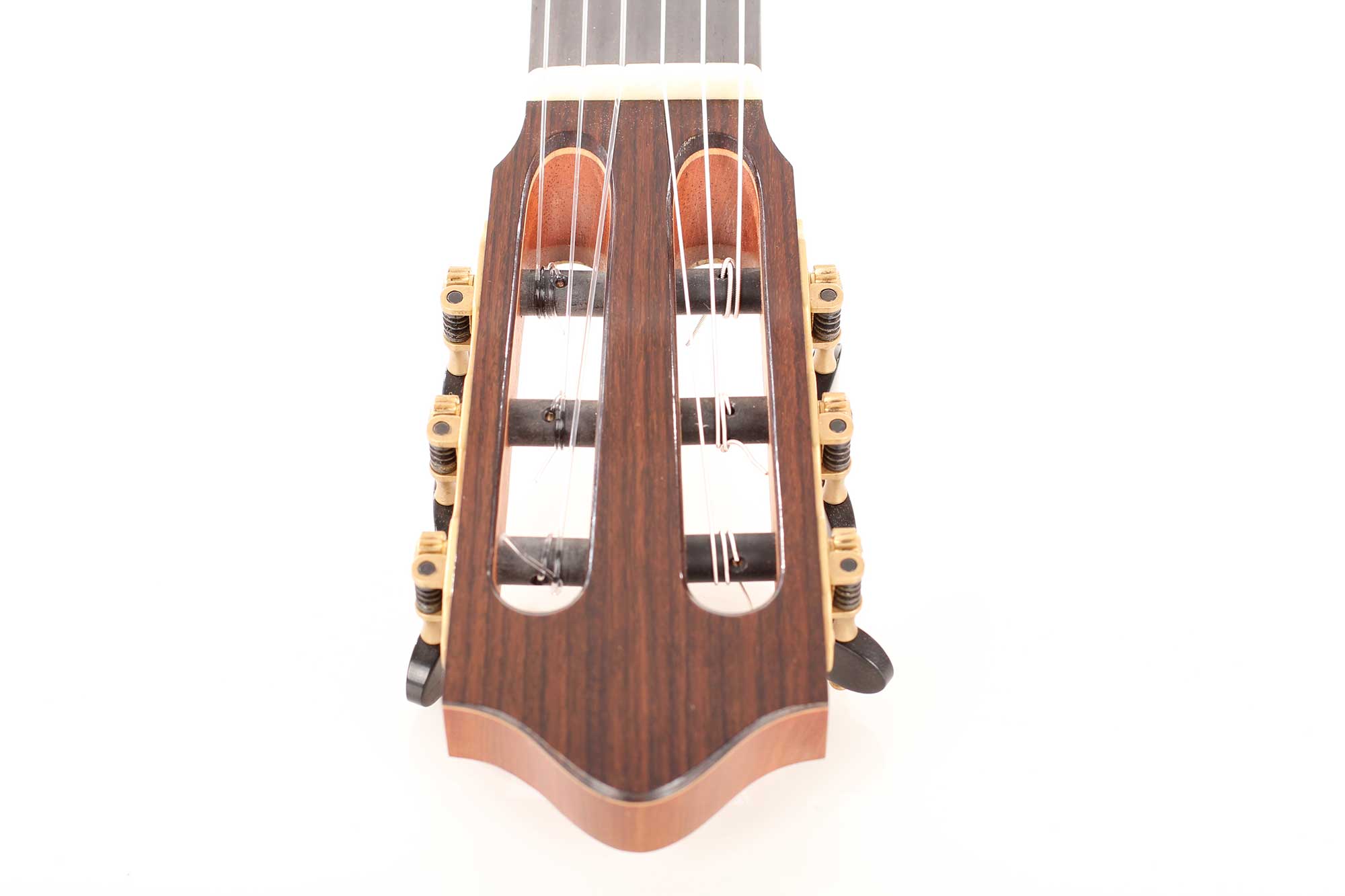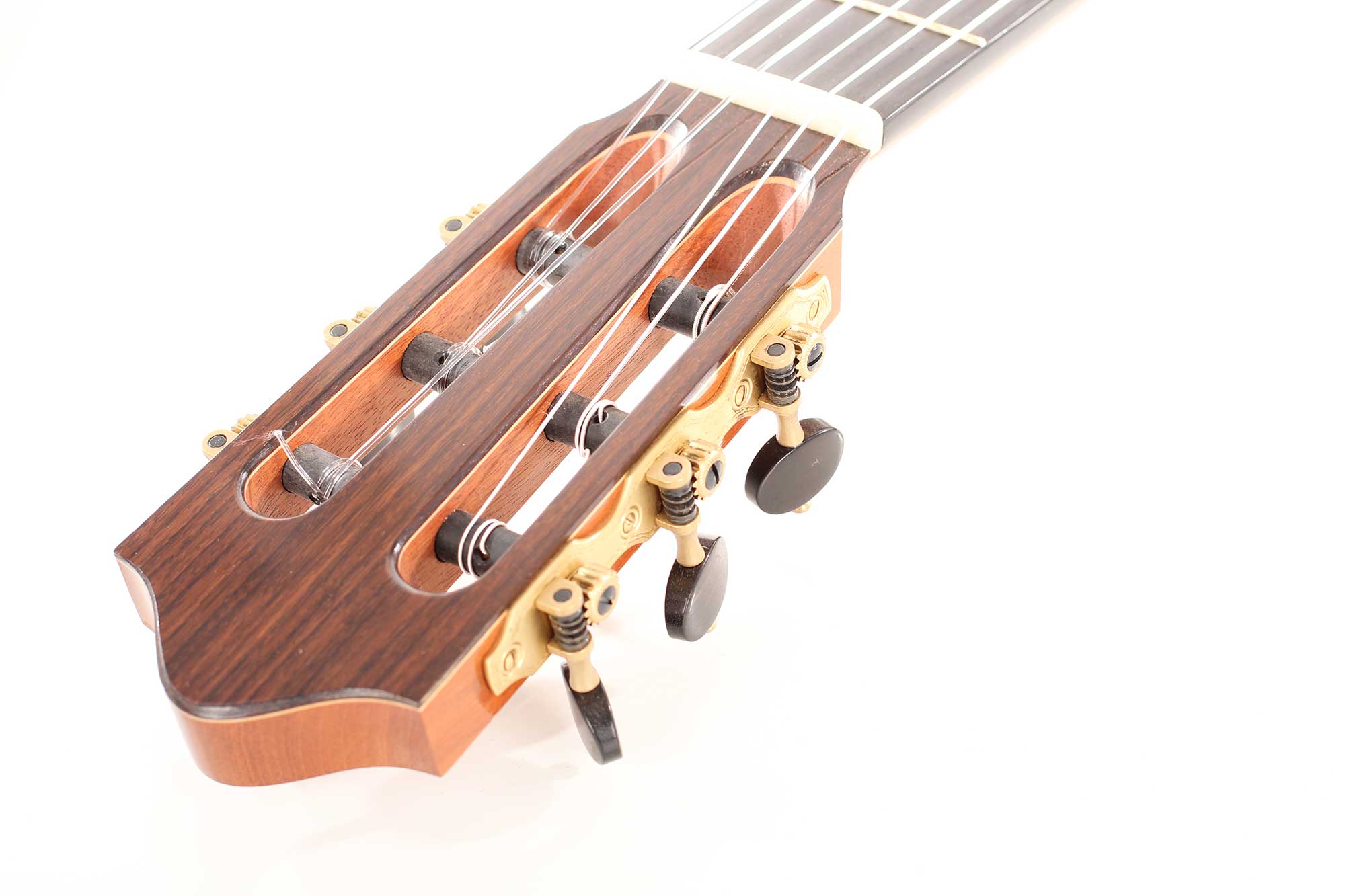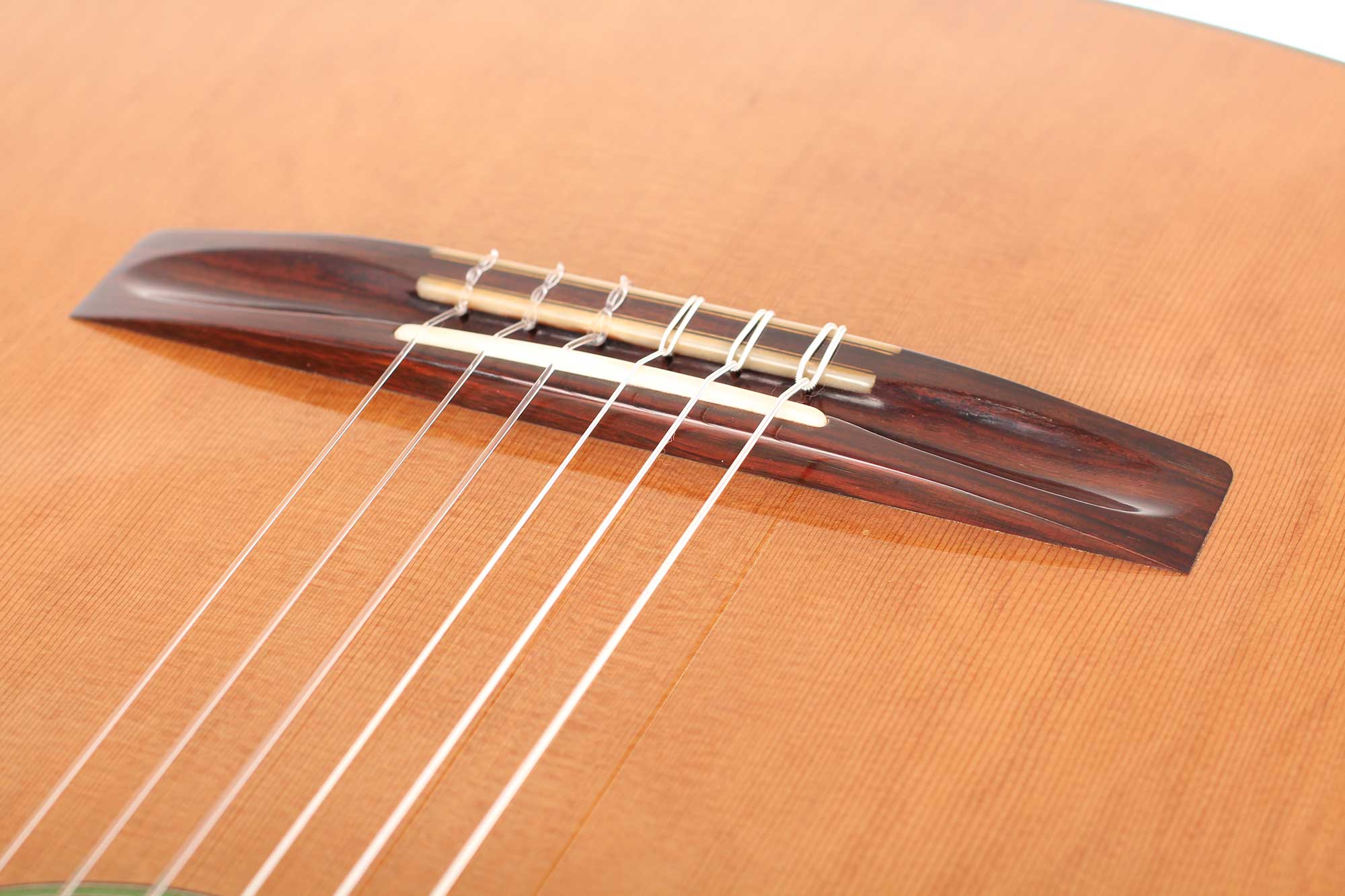This instrument’s top is made of fine cedar, its sides are made of Indian Rosewood. The strong sound of this guitar is impressive, it has a good balance and riveting depth of bass, focused mids and singing trebles. Altogether a remarkable instrument with impressive balance, sustain and refinement. All shellac French-polished to very high standard. The tuners are made by Rubner. A Hiscox Pro II case is included.