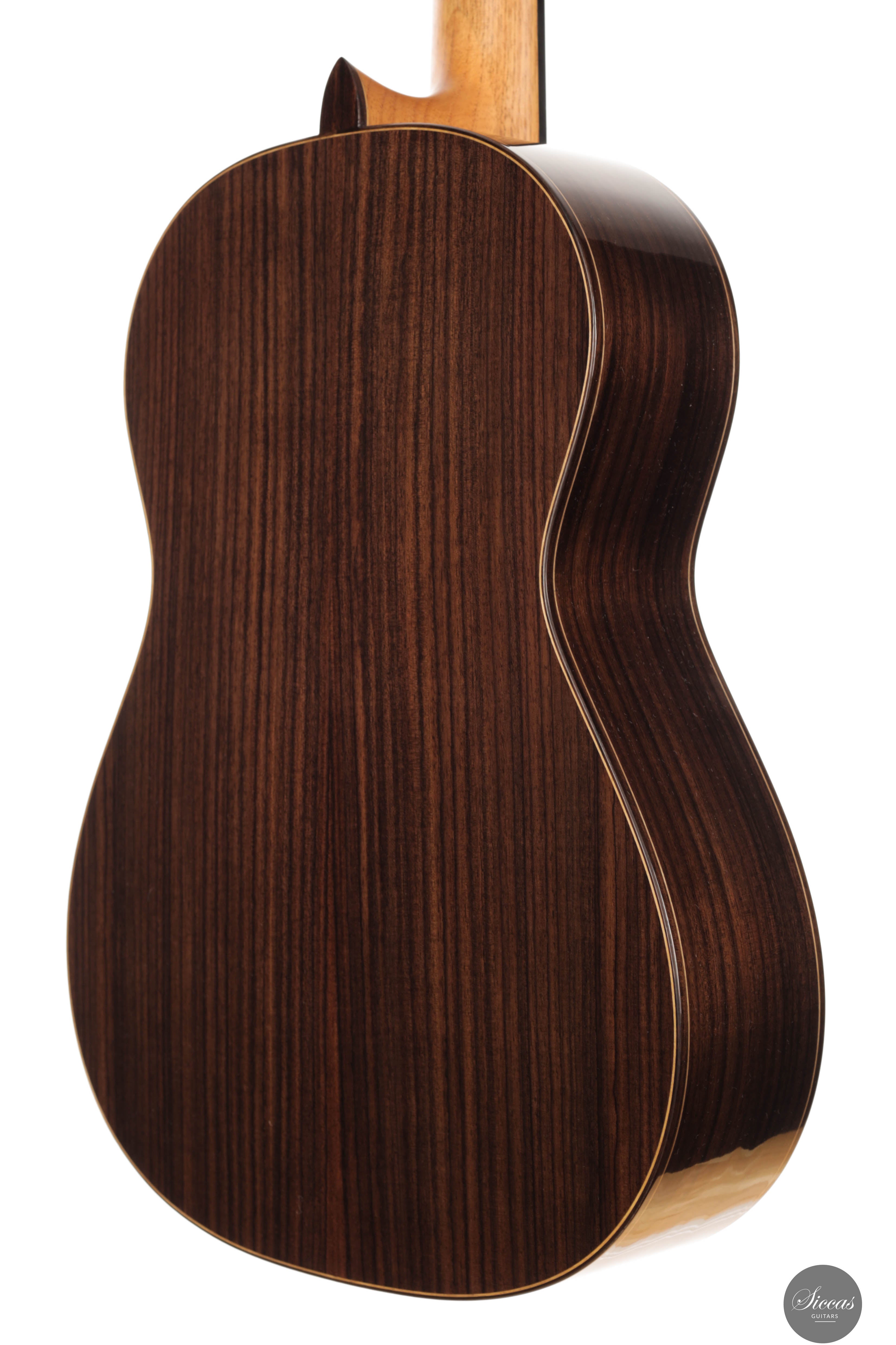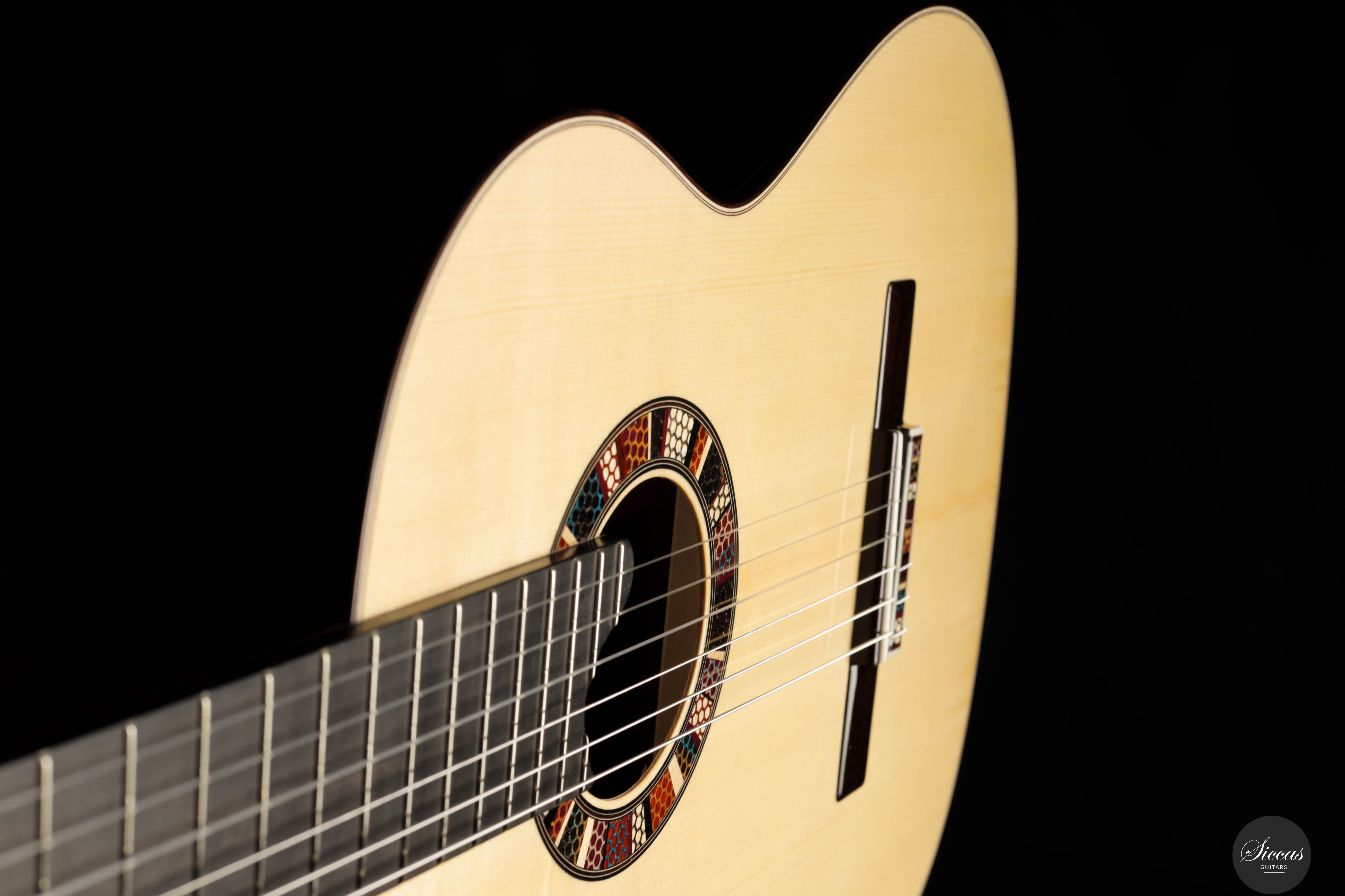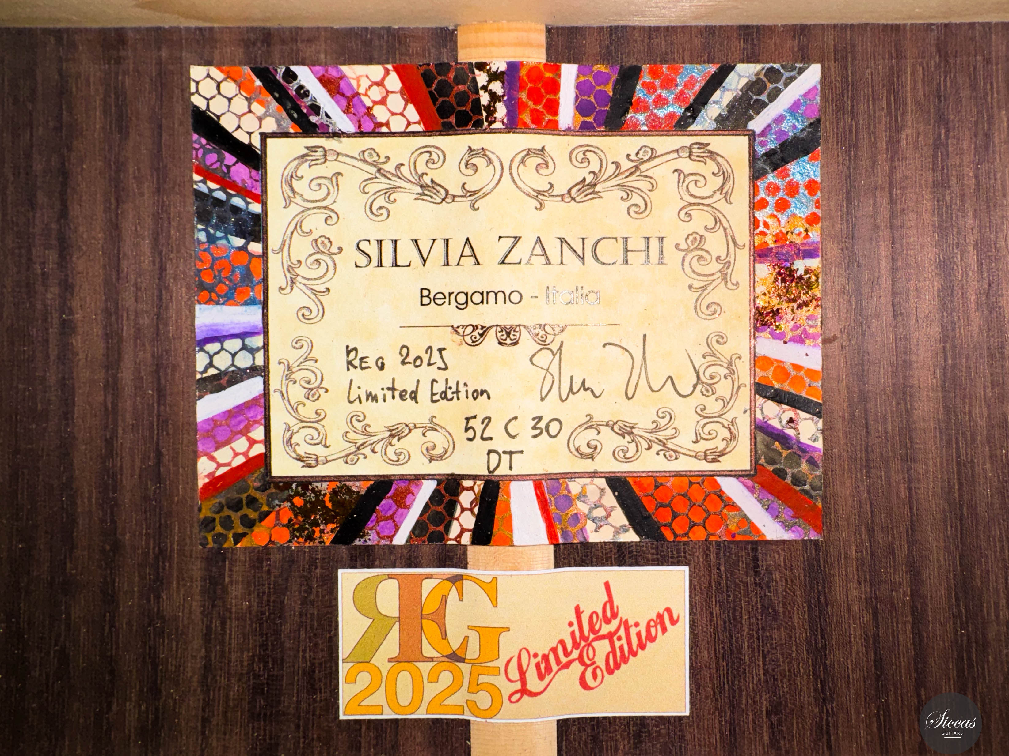 Silvia Zanchi, based in Bergamo, specializes in the construction of classical concert guitars, plucked instruments for early music, and the restoration of historical plucked instruments. After studying at the Liceo Artistico Statale in Bergamo, she graduated from the Civica Scuola di Liuteria in Milan, where she focused on building and restoring early music plucked string instruments. Since 2006, she has collaborated with lutherie schools (Civica Scuola di Liuteria di Milano, Accademia di Liuteria Piemontese, Cr Forma Cremona, Scuola di Artigianato Artistico Centopievese), associations, institutions, companies, and music conservatories, teaching masterclasses on construction, varnishing, and restoration of plucked string instruments both in Italy and abroad. She primarily creates a personal model of traditional classical guitars, drawing inspiration from great masters of the past, while also exploring modern projects using new technologies and materials to meet contemporary guitarist needs. Her aesthetic choices, deeply influenced by her artistic background, highlight her attention to detail, which is a hallmark of her craftsmanship.About the guitar