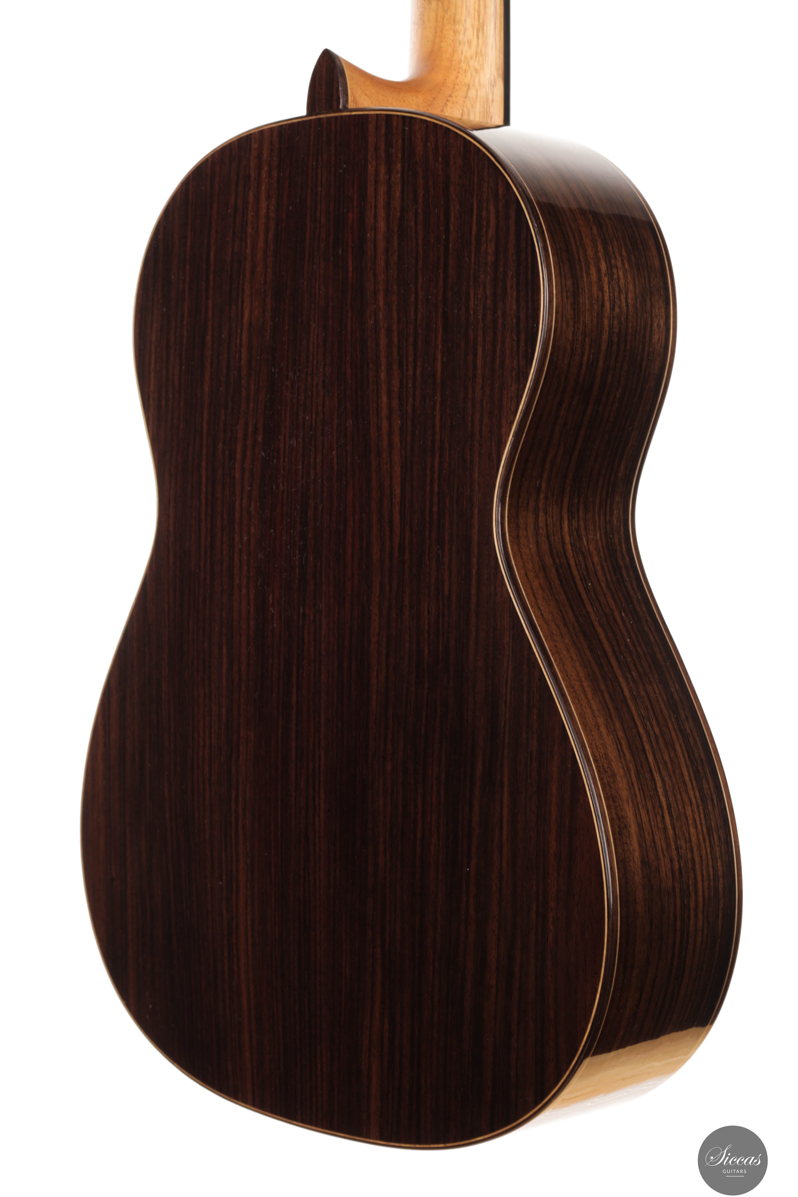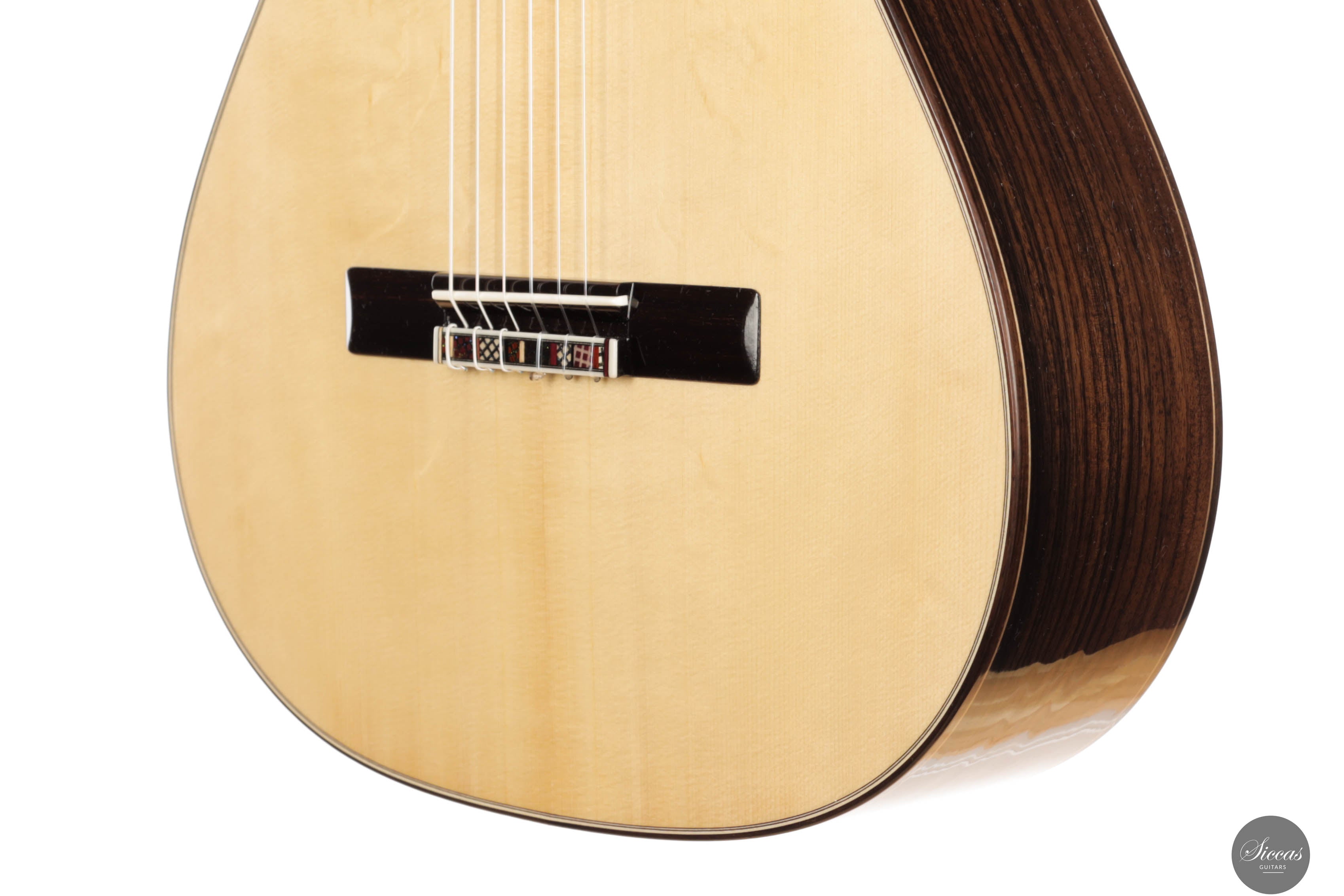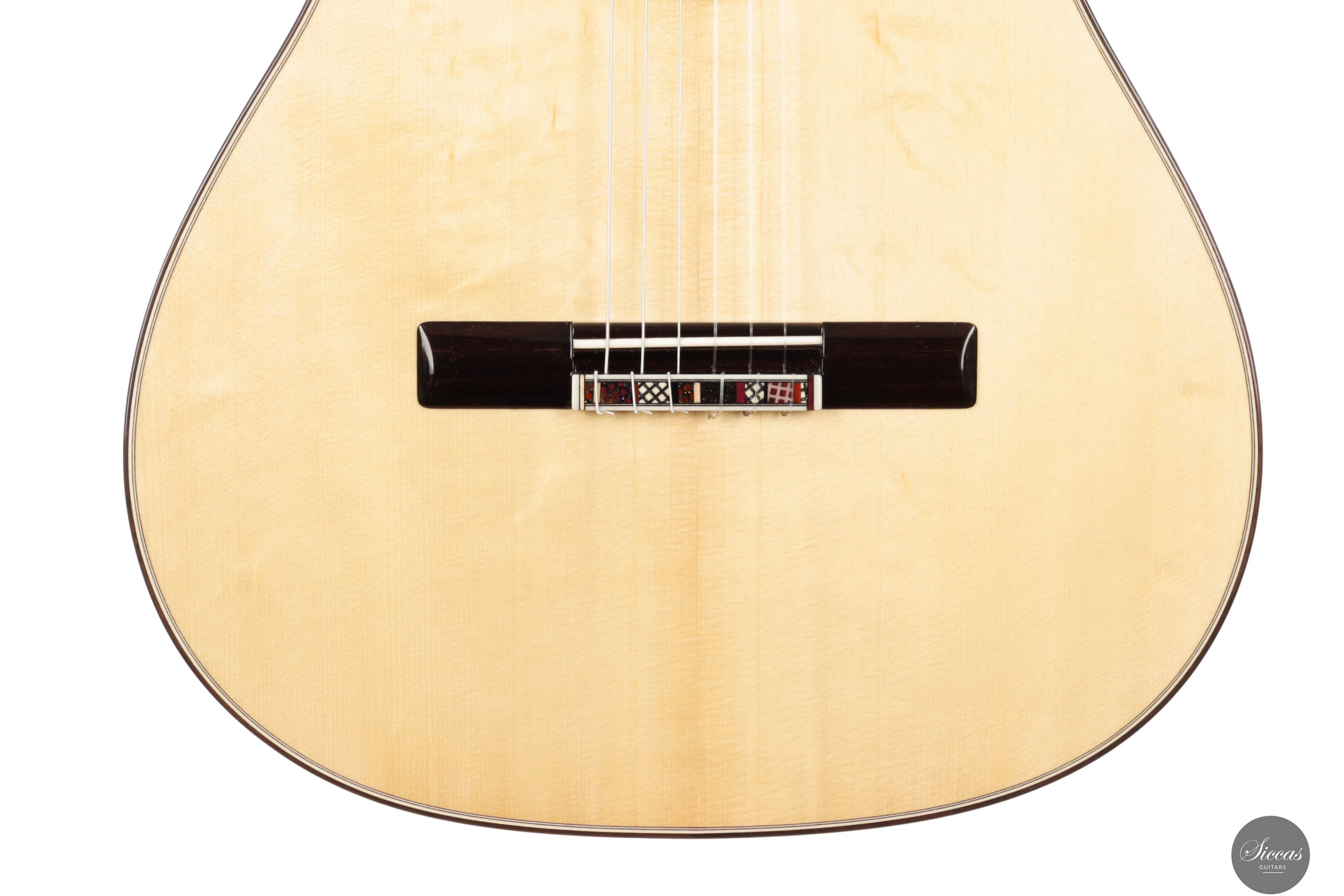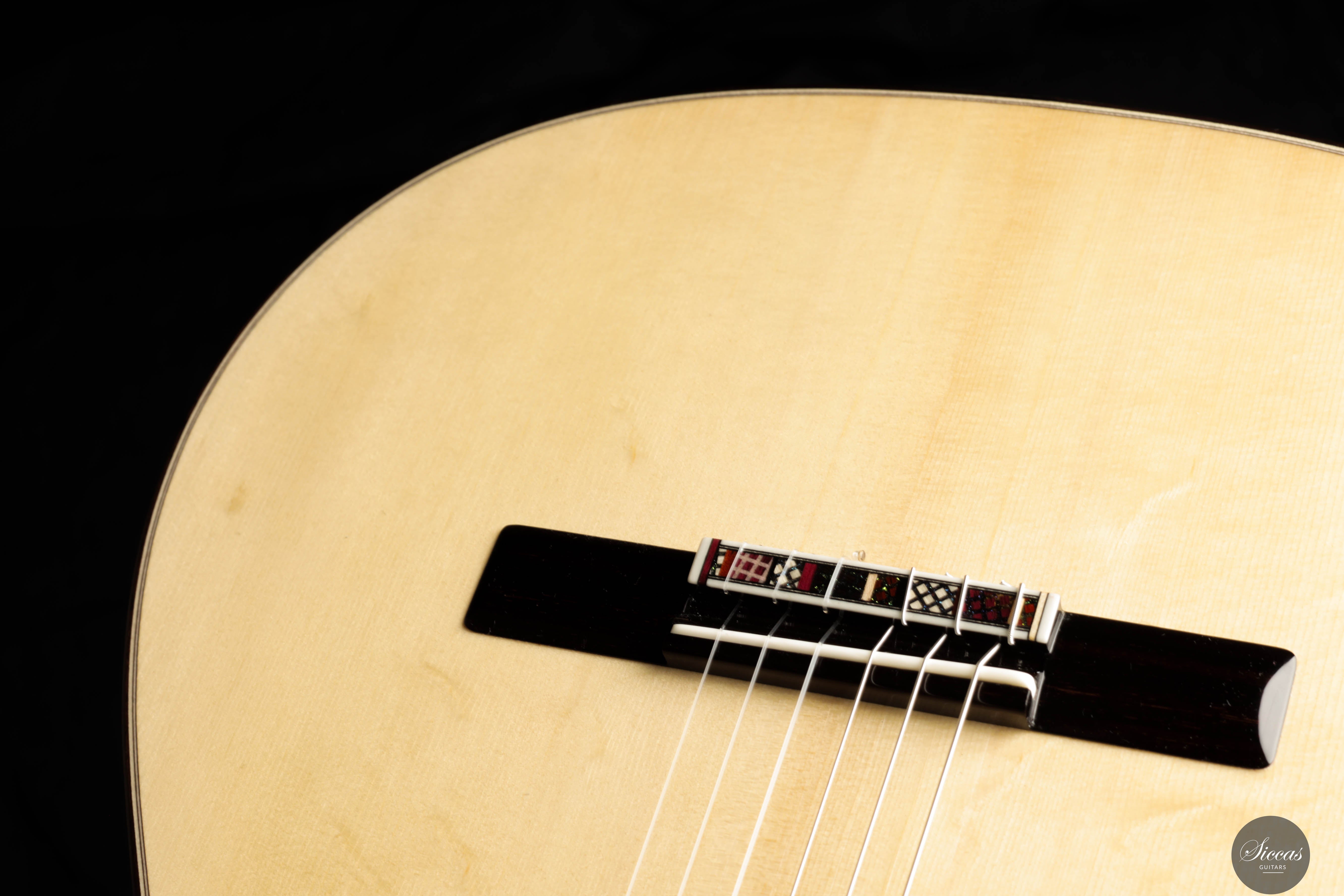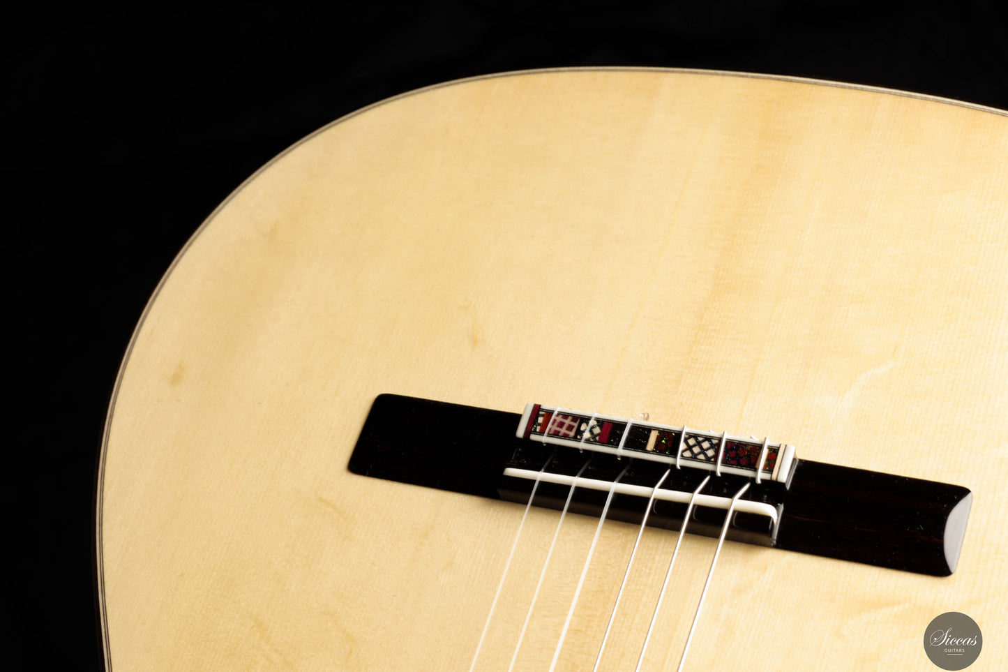 Silvia Zanchi, based in Bergamo, specializes in the construction of classical concert guitars, plucked instruments for early music, and the restoration of historical plucked instruments. After studying at the Liceo Artistico Statale in Bergamo, she graduated from the Civica Scuola di Liuteria in Milan, where she focused on building and restoring early music plucked string instruments. Since 2006, she has collaborated with lutherie schools (Civica Scuola di Liuteria di Milano, Accademia di Liuteria Piemontese, Cr Forma Cremona, Scuola di Artigianato Artistico Centopievese), associations, institutions, companies, and music conservatories, teaching masterclasses on construction, varnishing, and restoration of plucked string instruments both in Italy and abroad. She primarily creates a personal model of traditional classical guitars, drawing inspiration from great masters of the past, while also exploring modern projects using new technologies and materials to meet contemporary guitarist needs. Her aesthetic choices, deeply influenced by her artistic background, highlight her attention to detail, which is a hallmark of her craftsmanship.About the guitar