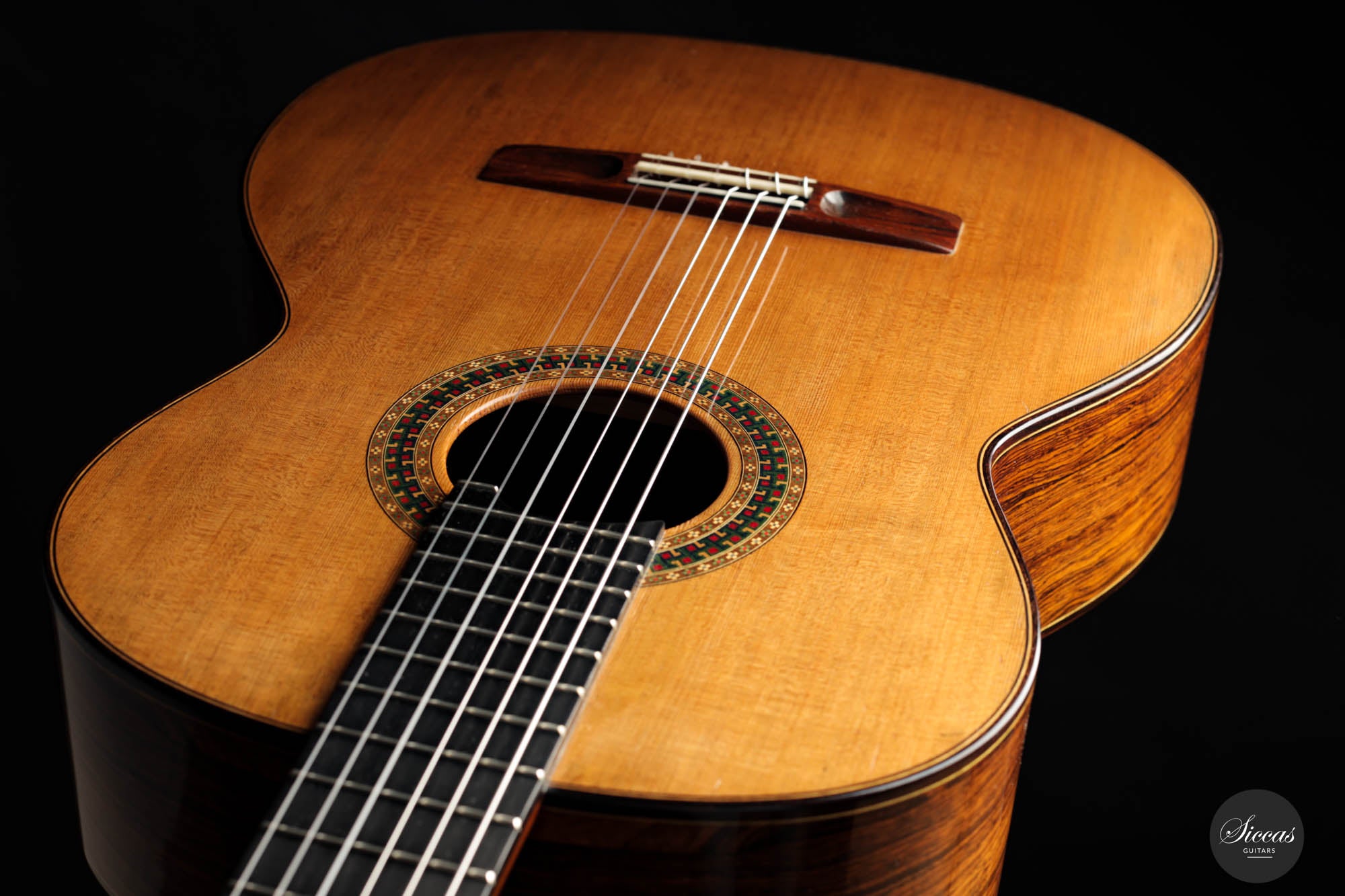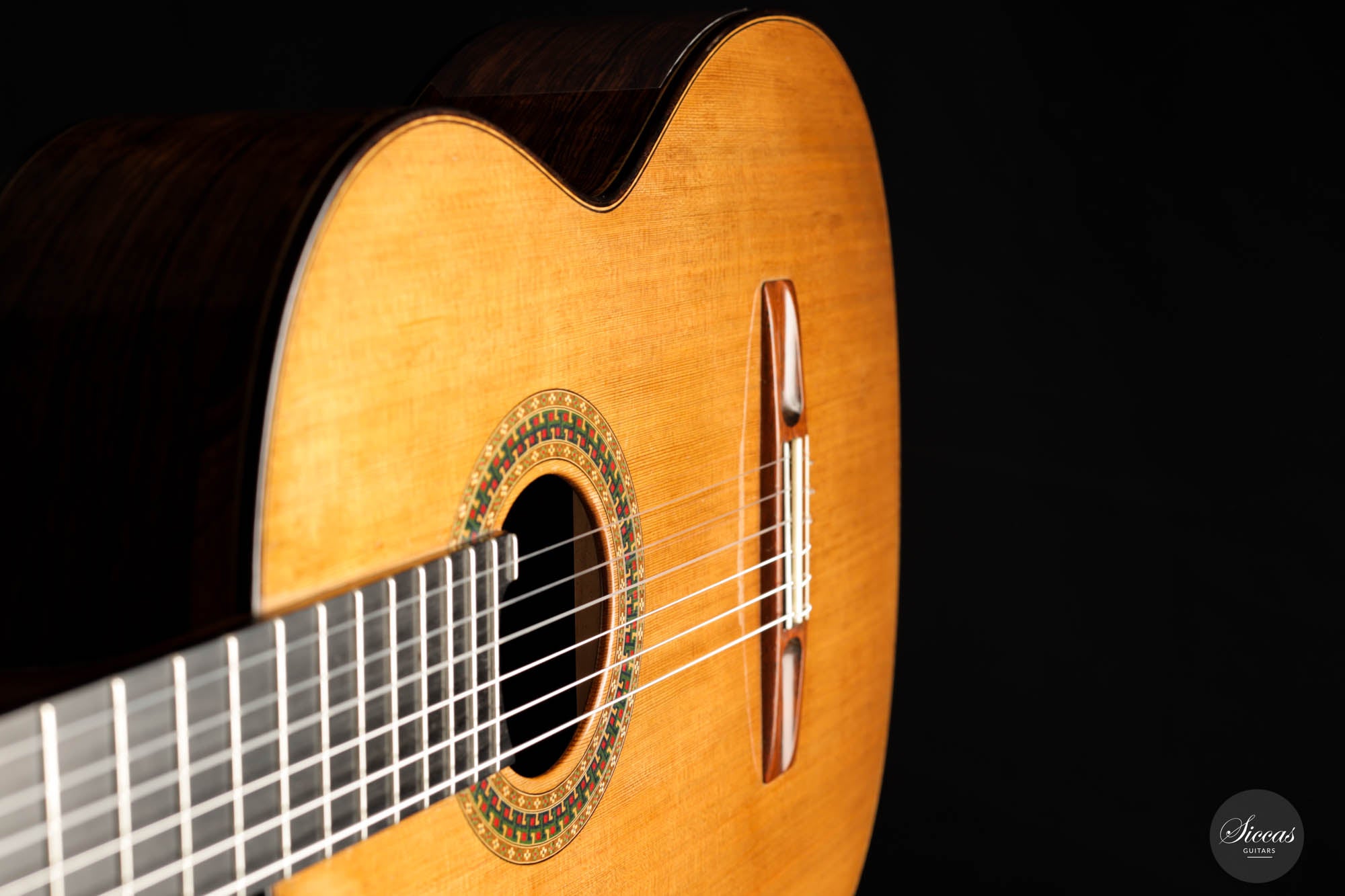 A standout example of his artistry is the model from 2007, which presents itself in pristine condition. There are no cracks or signs of repair on this instrument. Several aspects distinguish this exceptional guitar. Foremost is its impressive responsiveness, allowing musicians to play with a gentle and effortless touch, yet still achieve a rich sound in all registers. Additionally, the unique sound that Simon Marty has achieved through his meticulous research and visionary approach to modern guitar design stands out. Lastly, the profound expressiveness of this unique instrument, captivating every listener, cannot go unmentioned.