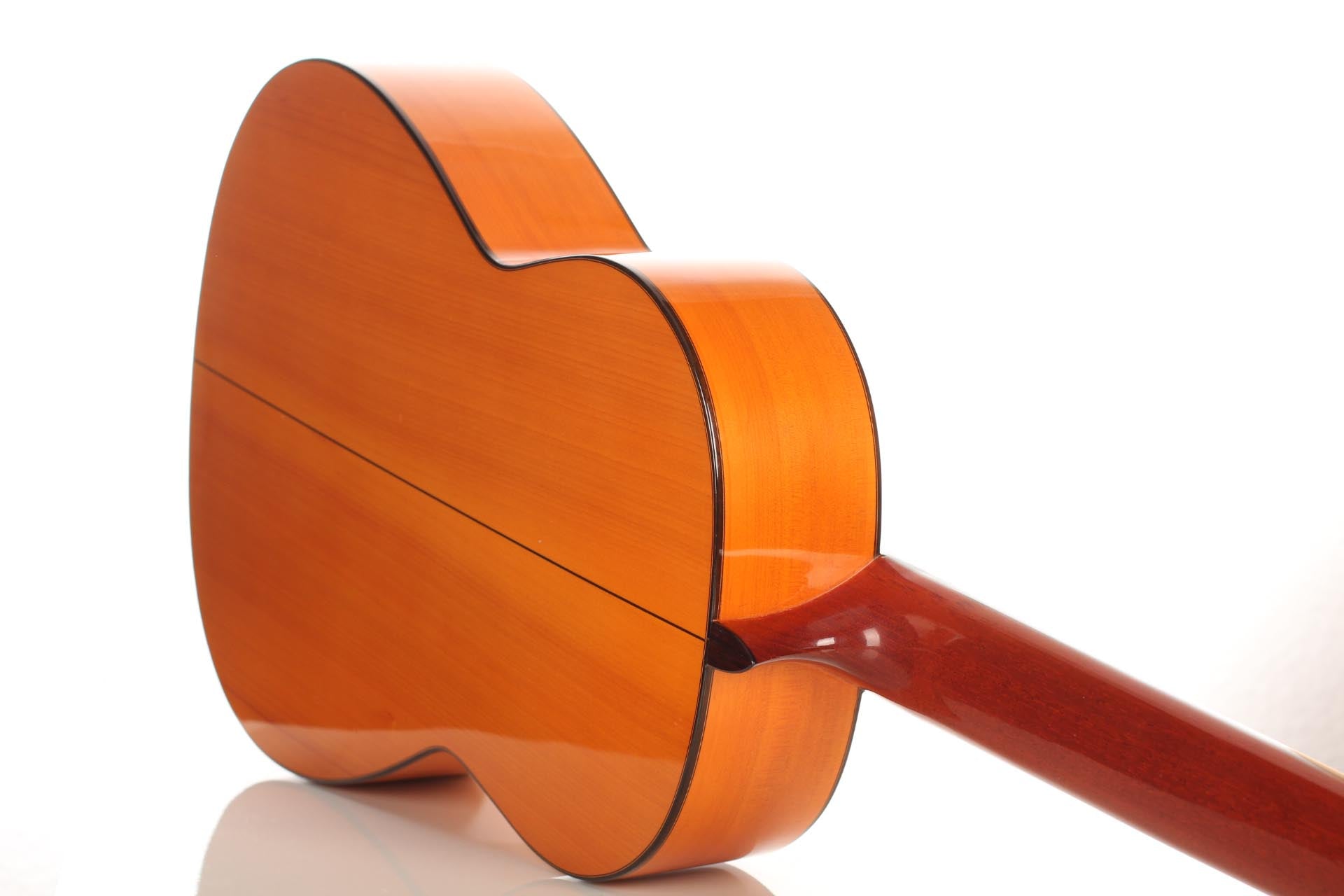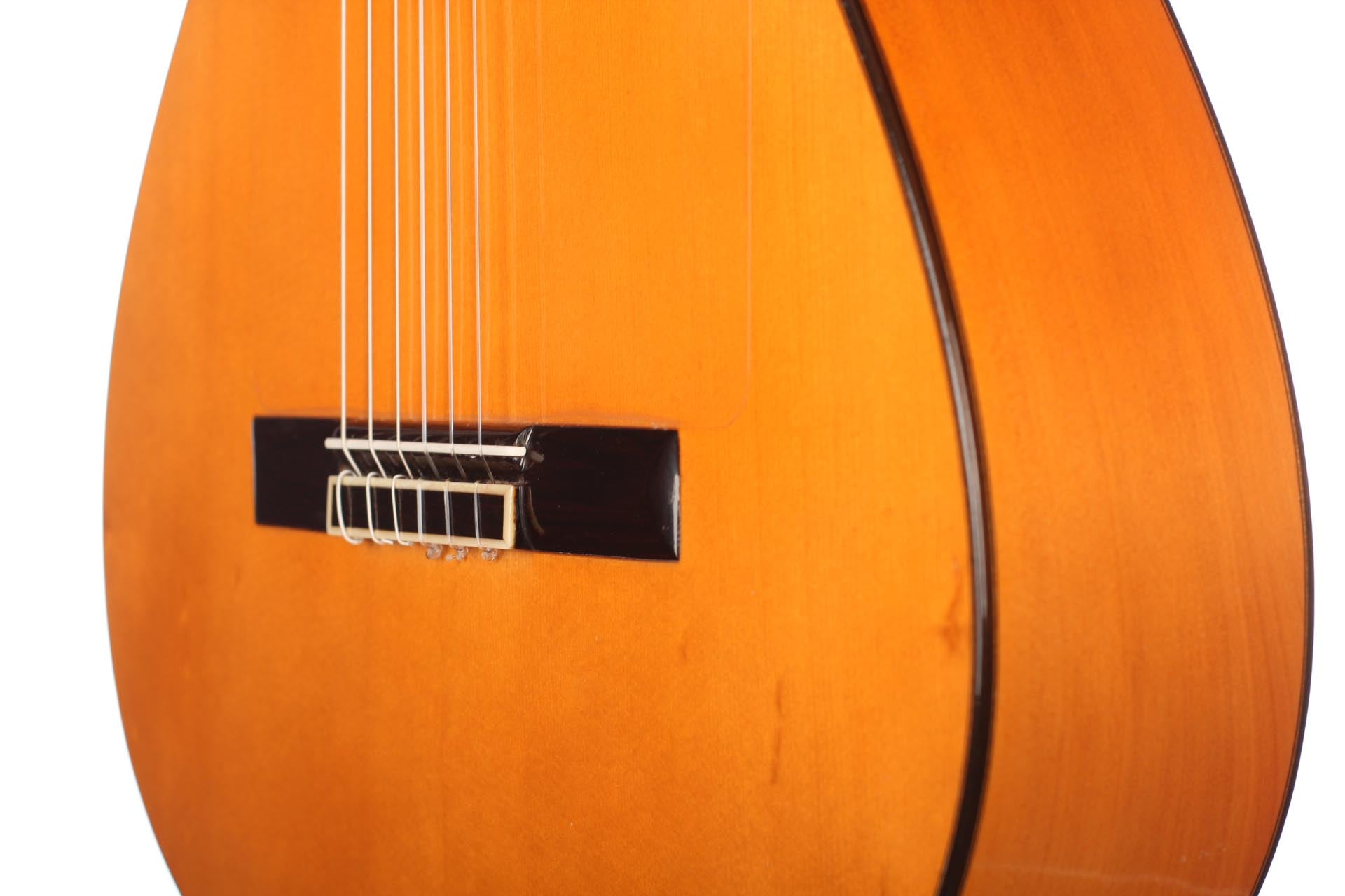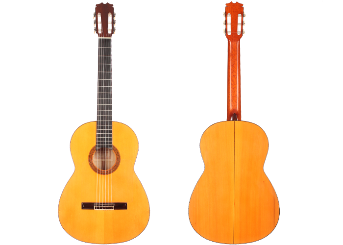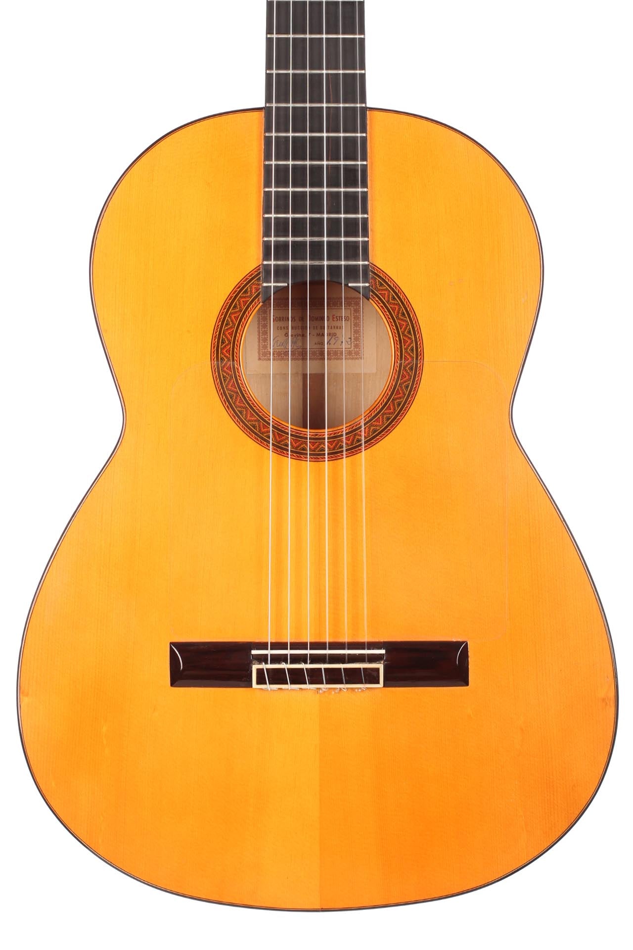 This guitar was built in 1972. It has beautiful cypress back and sides and a fine spruce top. The guitar has NO crack what is unbelievable considering its age and the normal use of a flamenco guitar! It is absolutely ready to be played, in a flamenco or a classical style! The new tuning machines are made by Fustero. A hard-shell case is included.