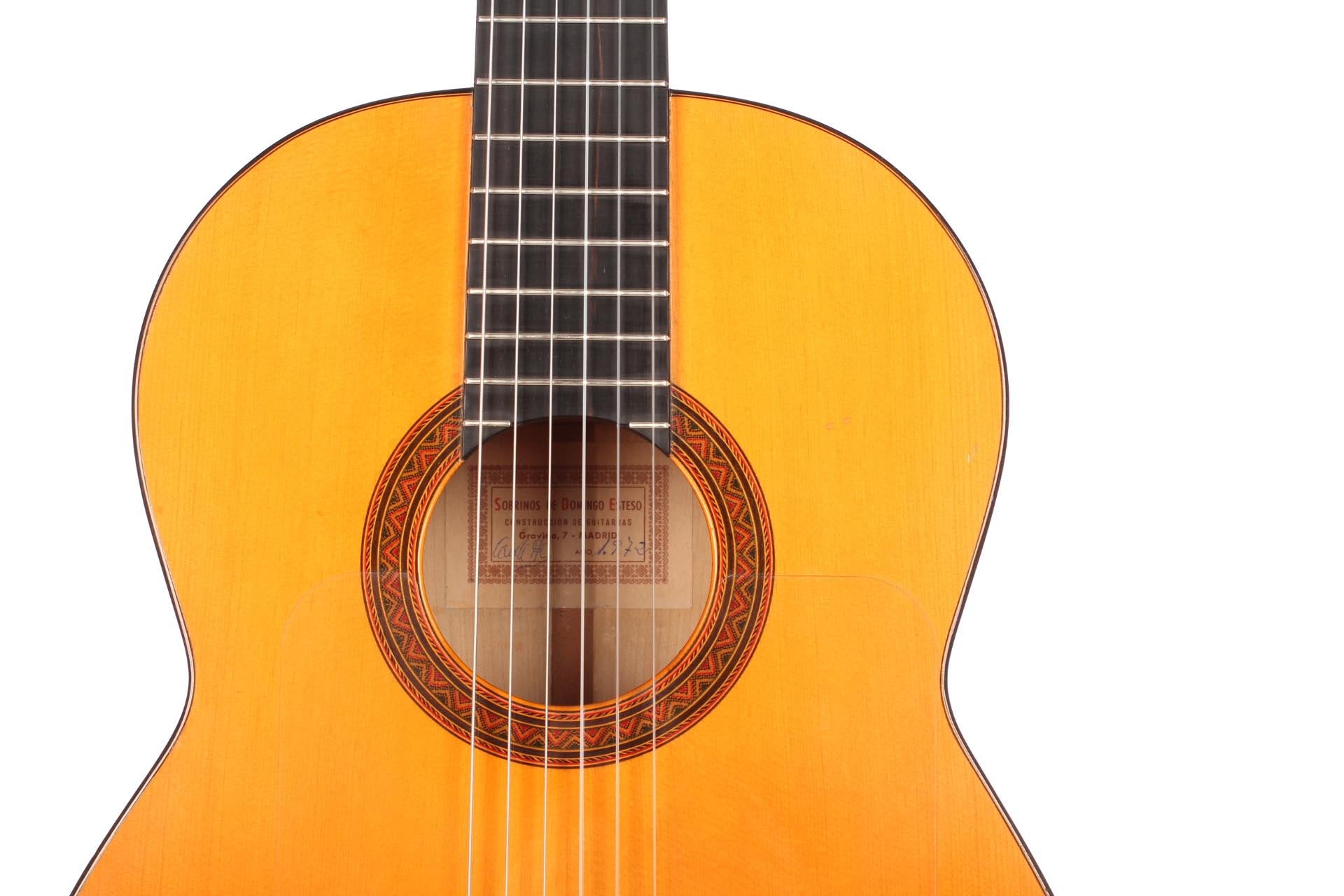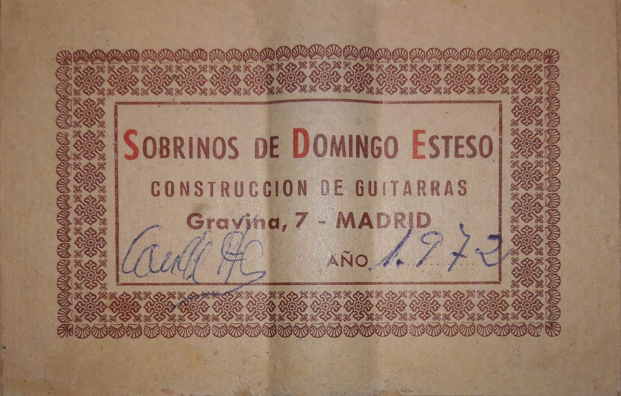 Domingo Esteso Lopez was born in San Clemente in 1882. He was one of the most important luthiers of the 20th century’s beginning. In the 1890′s, he began his apprenticeship at the workshop of Manuel Ramirez in Madrid. There, he worked along with Modesto Borreguero, Santos Hernandez, etc. The year following Manuel Ramirez’ death (1864 – 1916) he worked for M. Ramirez’ widow. In 1917, Domingo Esteso opened his own workshop in the Calle Gravina in Madrid. In 1926, his nephew Faustino Conde joined the workshop, followed three years later by his brother Mariano Conde and eventually Julio Conde. When Domingo Esteso died in 1937, the three brother kept building under the name „Vda y Sobrinos de Domingo Esteso“.