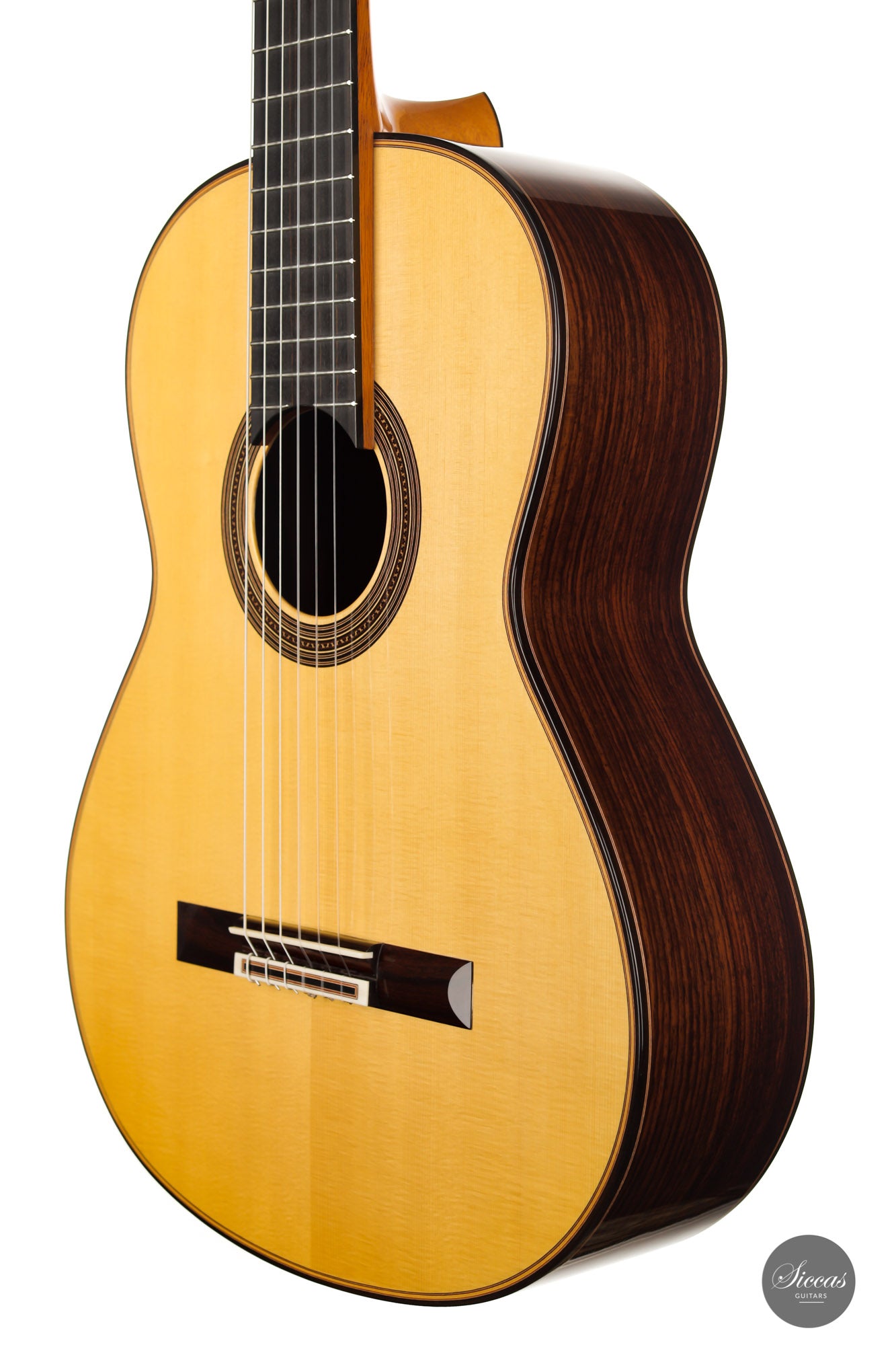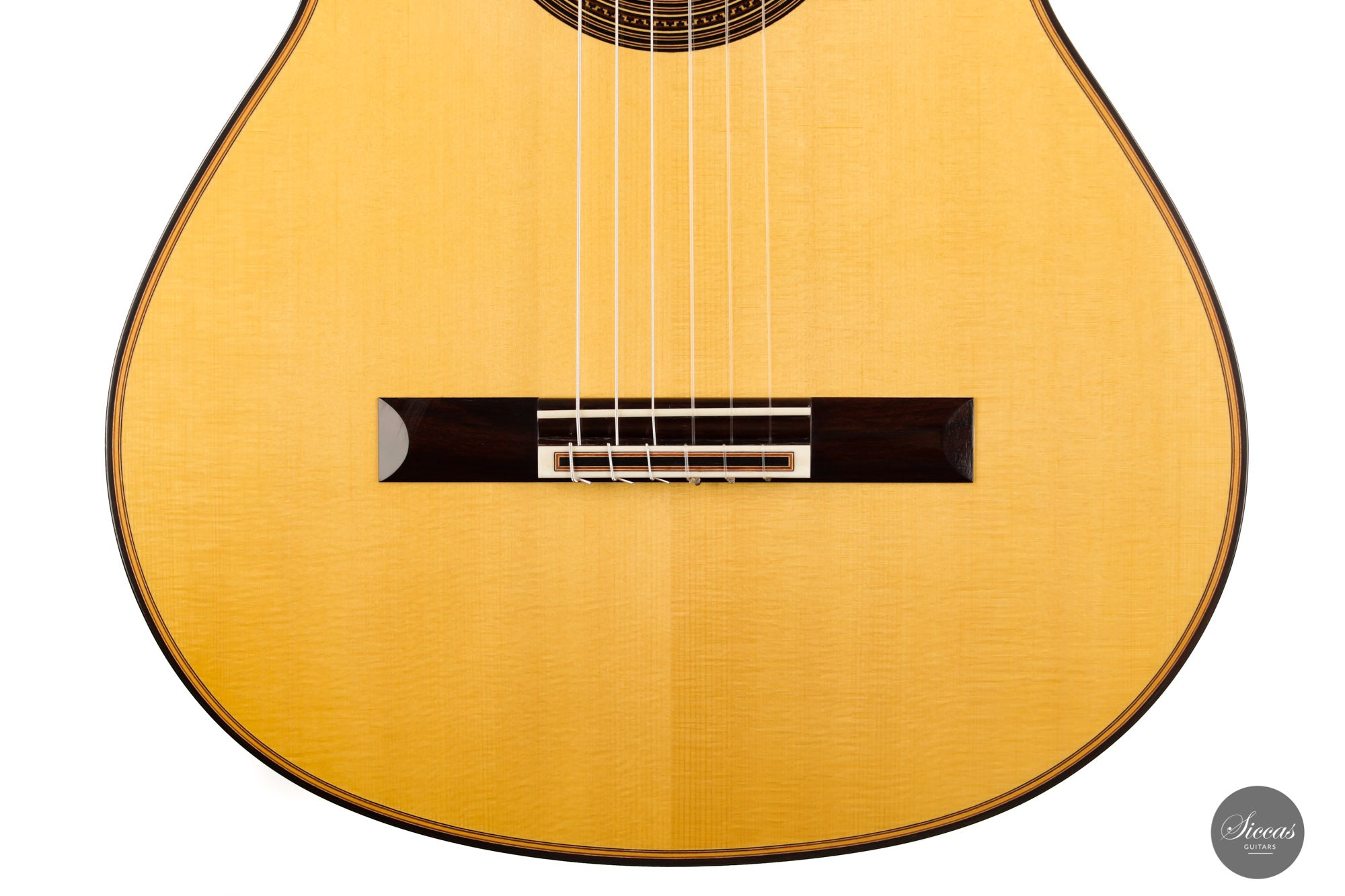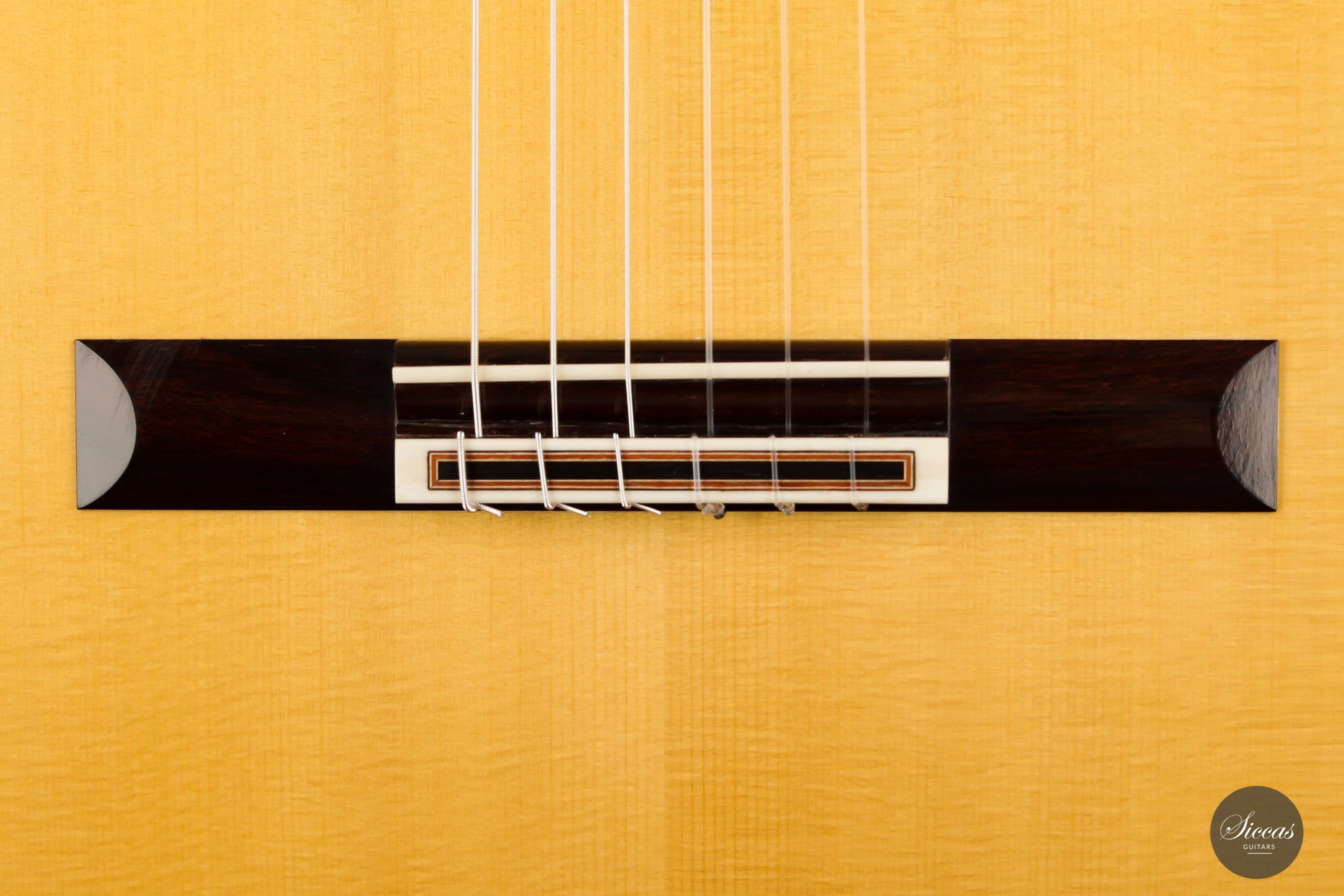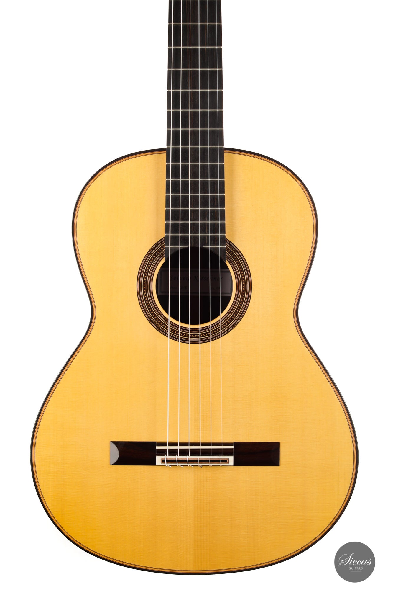 This admirable 2015 guitar is in almost perfect condition with only a few playing marks. The openness of the tone and responsiveness of the soundboard is just unbelievable. The trebles are enormous with an airy well rounded, and mature character. Exploring the tone colours and dynamic range of this guitar is an absolute pleasure, and this instrument faithfully gives back to the public everything the guitarist puts in.