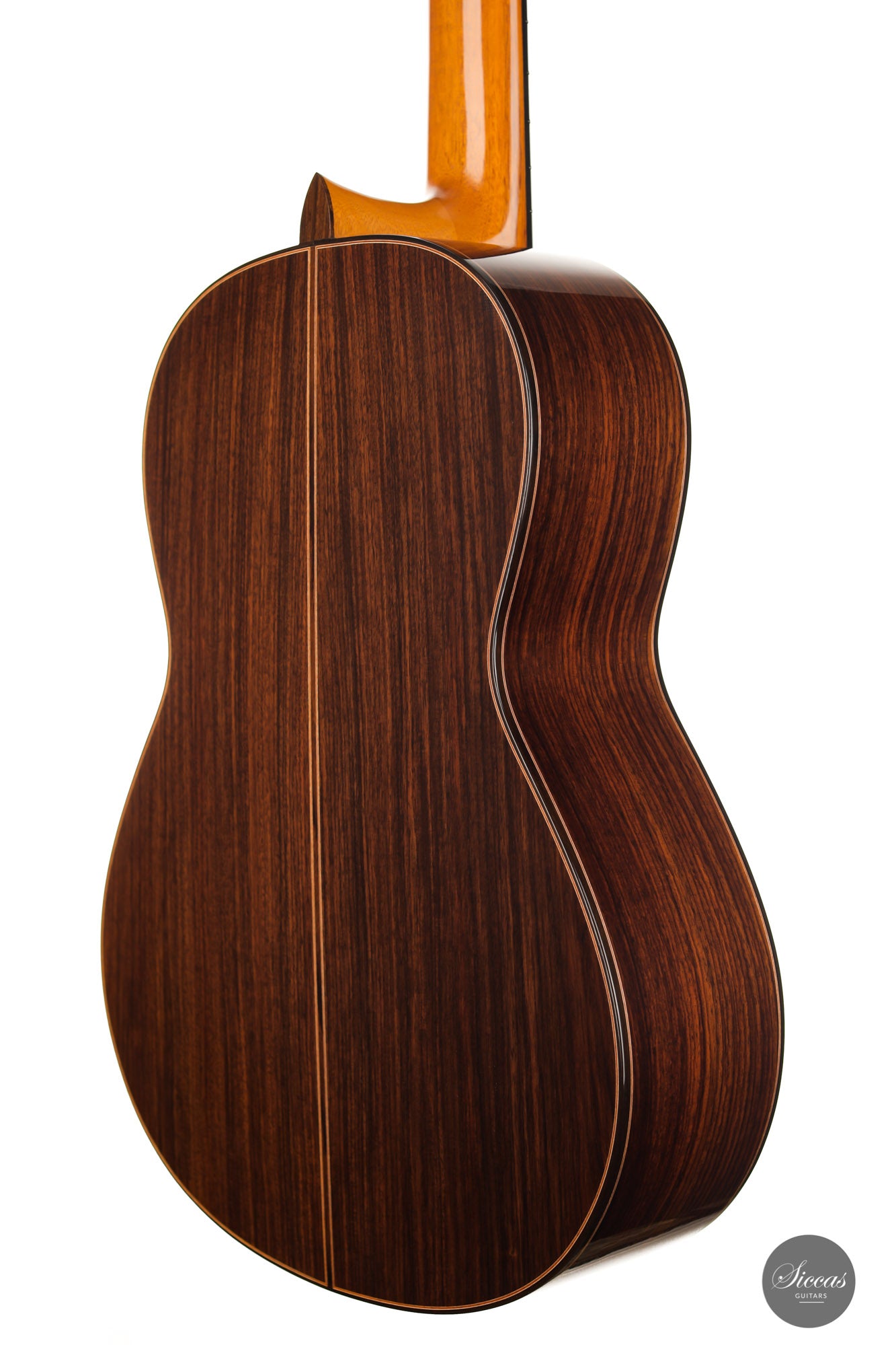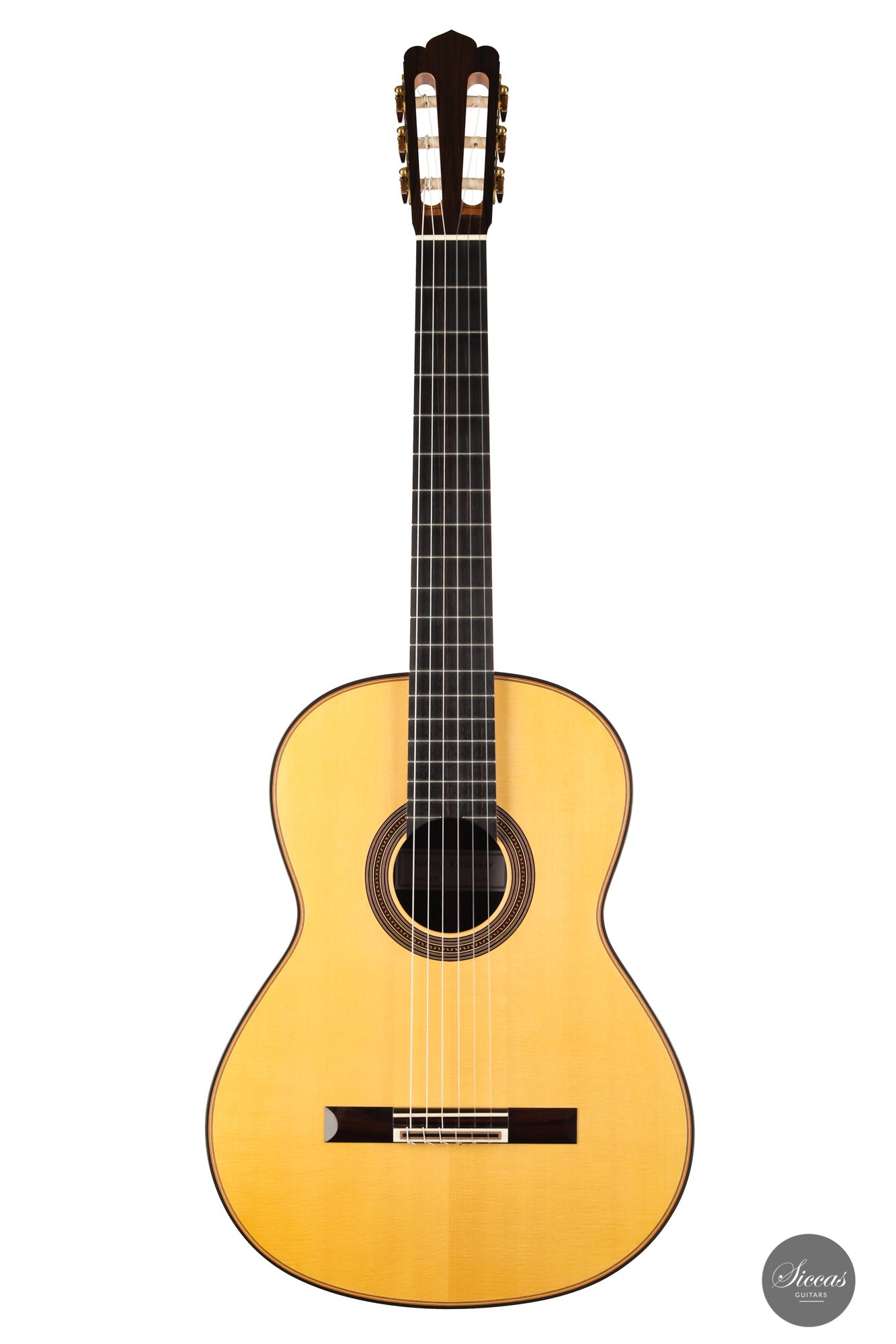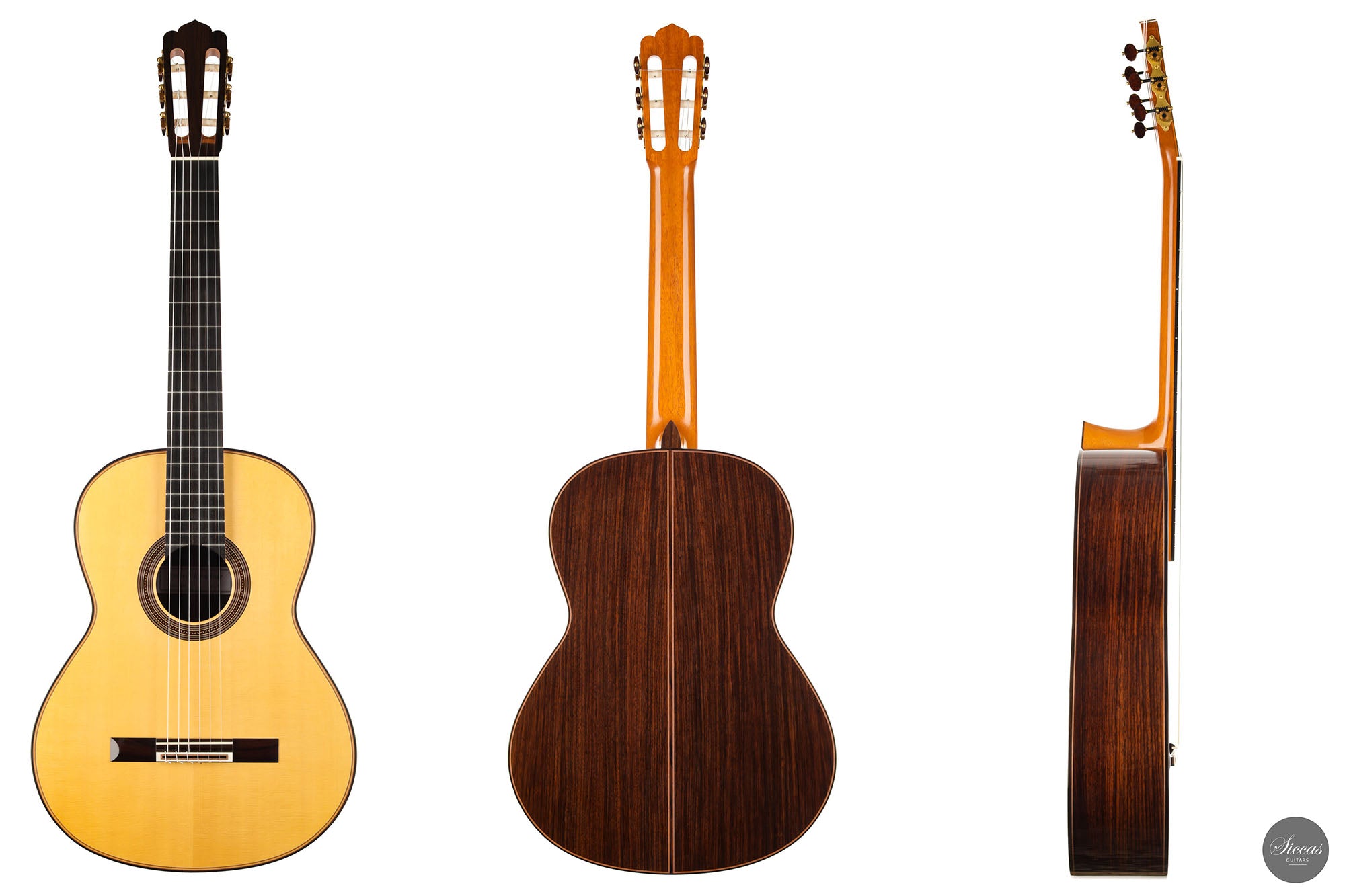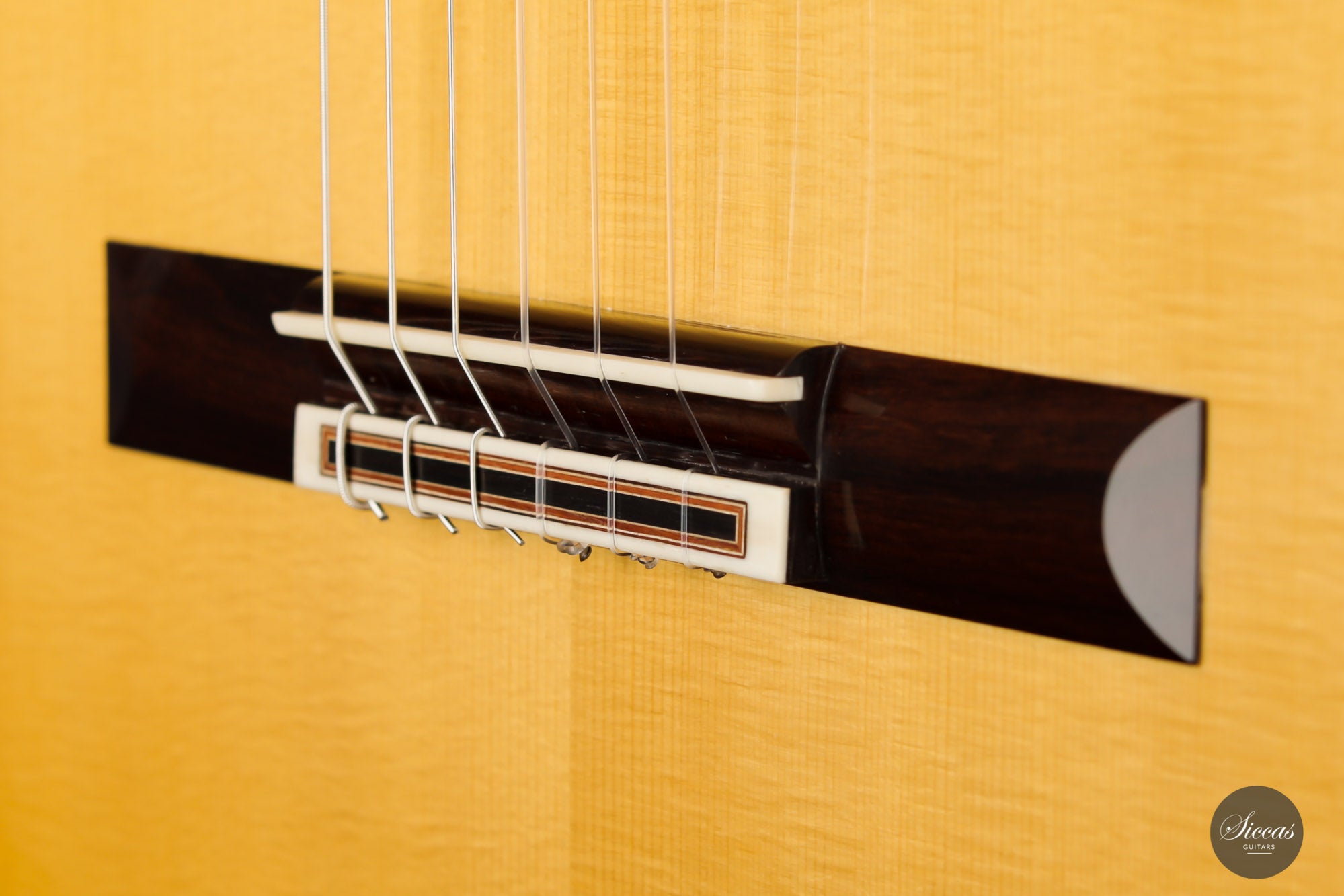 This admirable 2015 guitar is in almost perfect condition with only a few playing marks. The openness of the tone and responsiveness of the soundboard is just unbelievable. The trebles are enormous with an airy well rounded, and mature character. Exploring the tone colours and dynamic range of this guitar is an absolute pleasure, and this instrument faithfully gives back to the public everything the guitarist puts in.