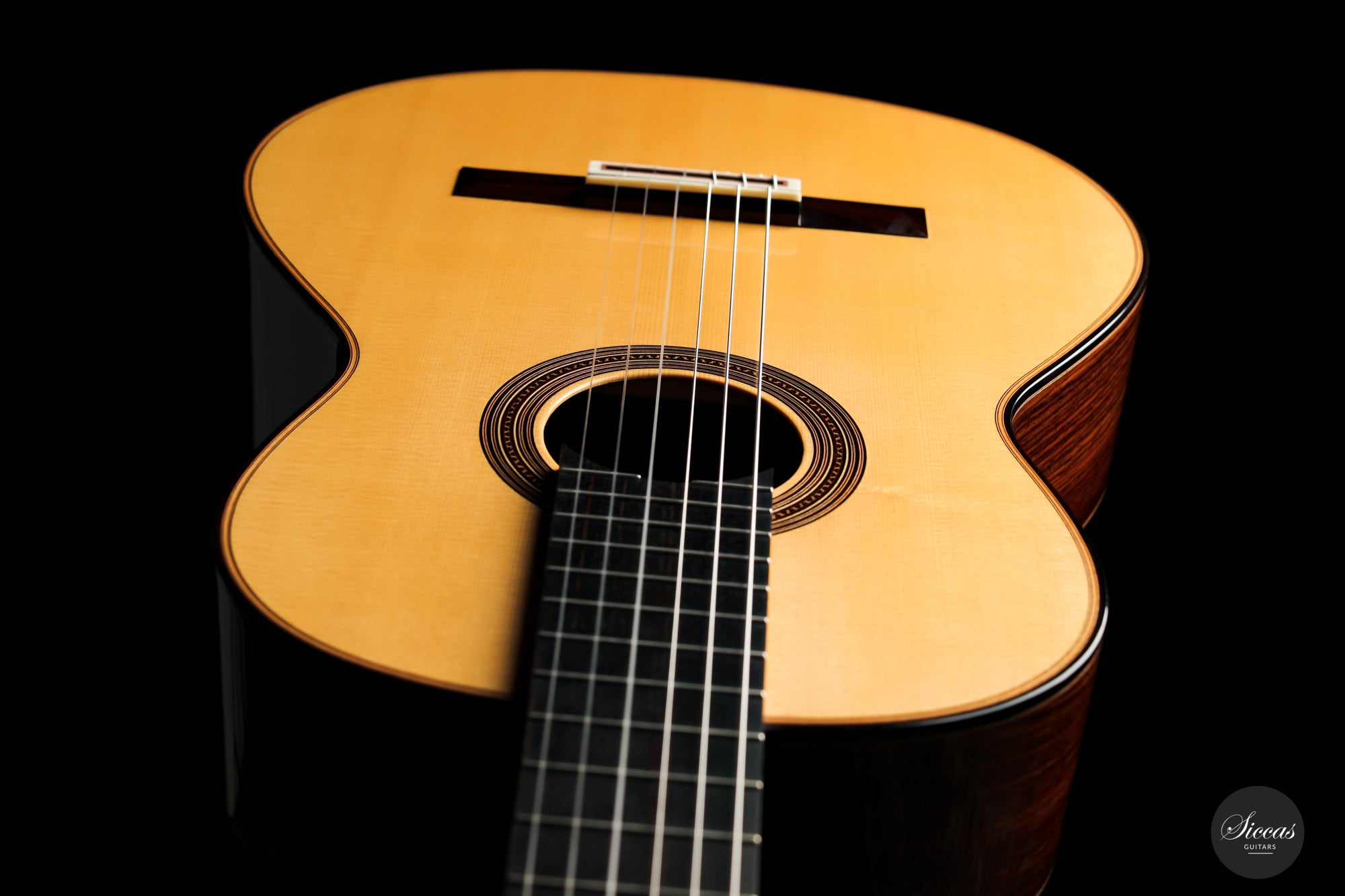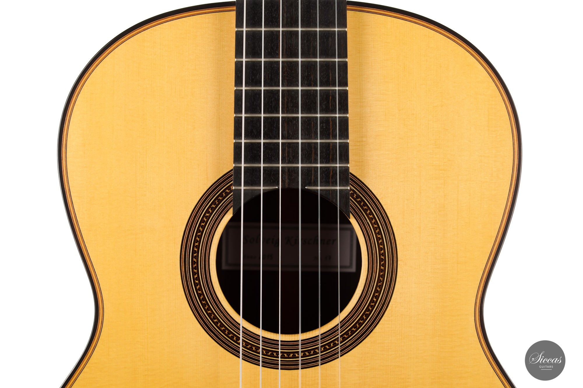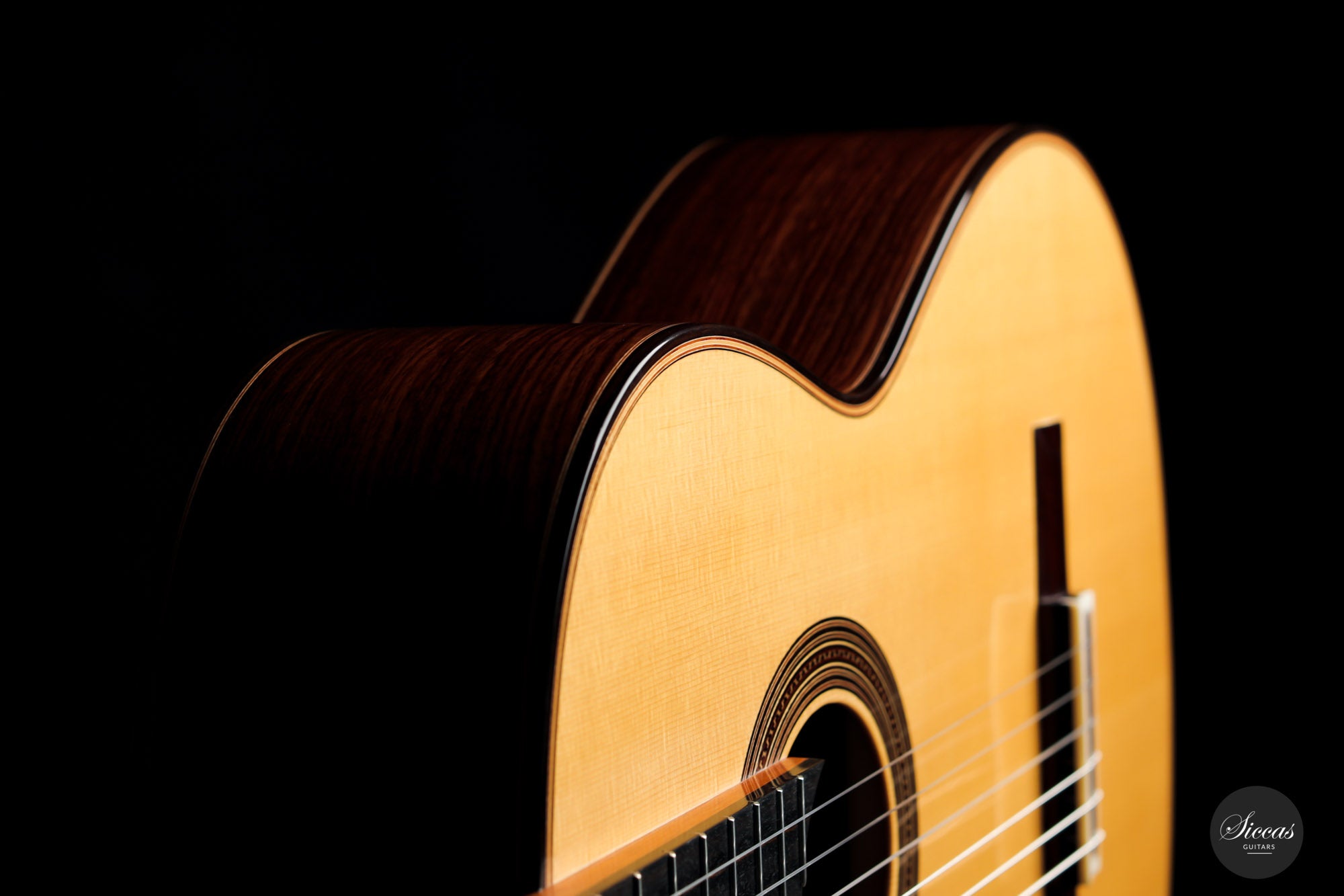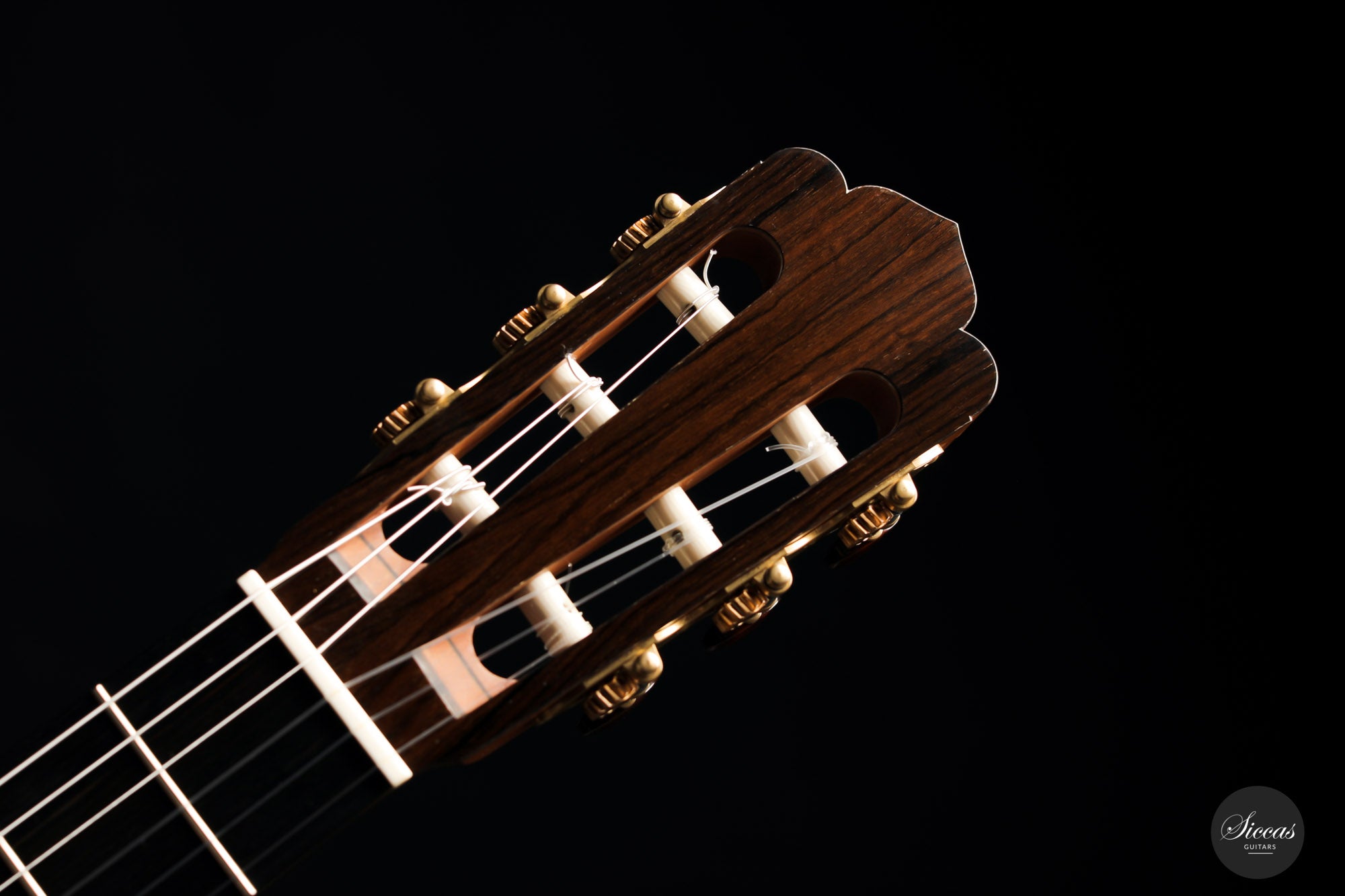 This admirable 2015 guitar is in almost perfect condition with only a few playing marks. The openness of the tone and responsiveness of the soundboard is just unbelievable. The trebles are enormous with an airy well rounded, and mature character. Exploring the tone colours and dynamic range of this guitar is an absolute pleasure, and this instrument faithfully gives back to the public everything the guitarist puts in.