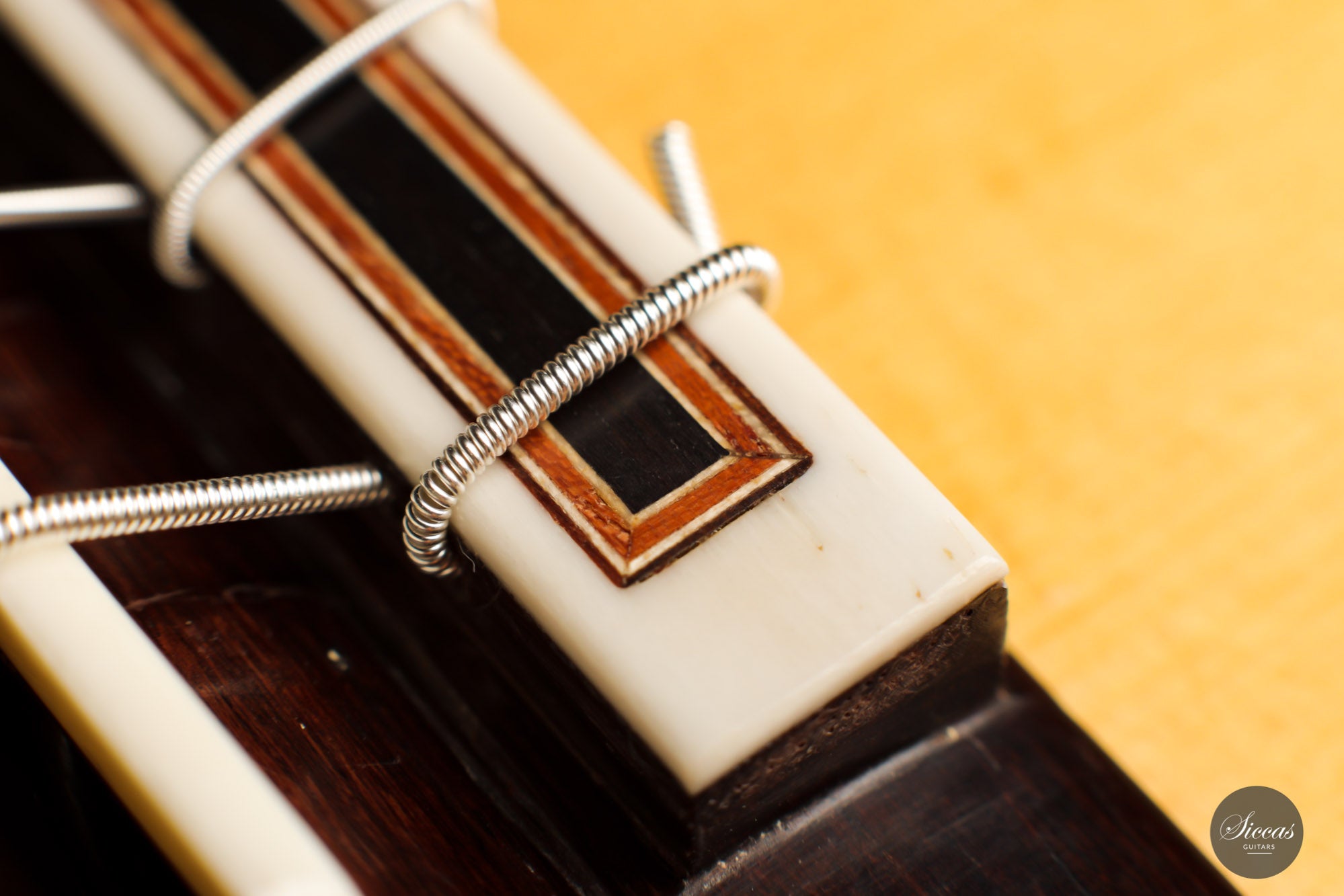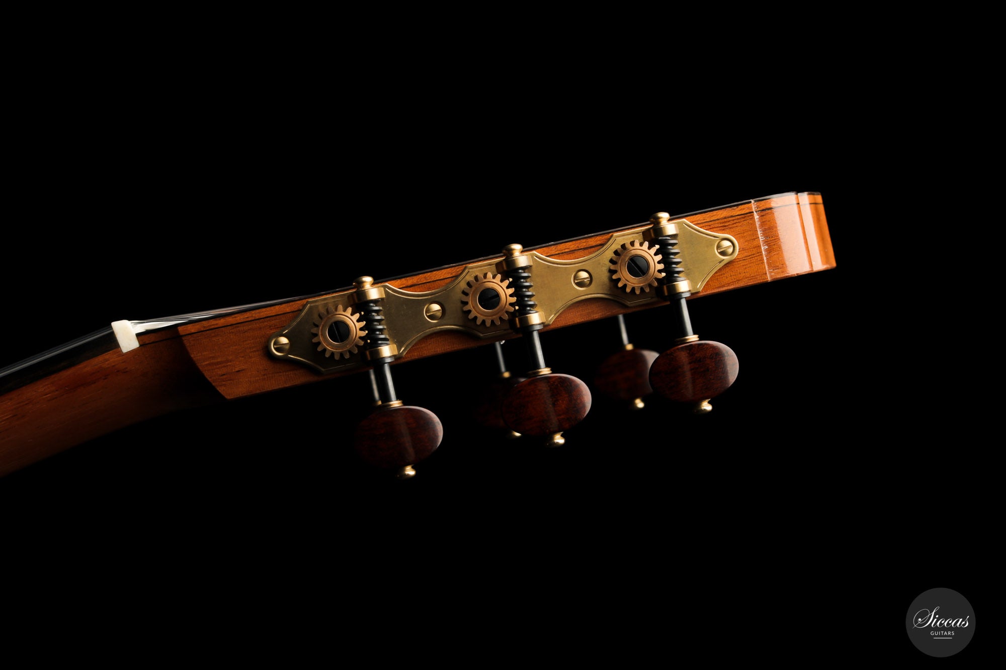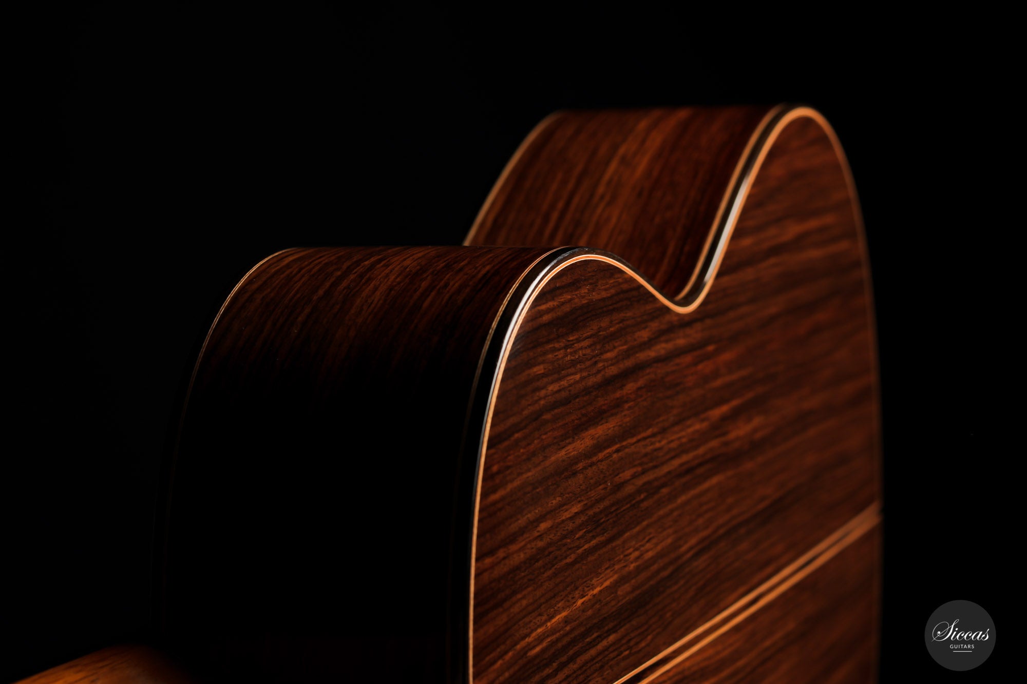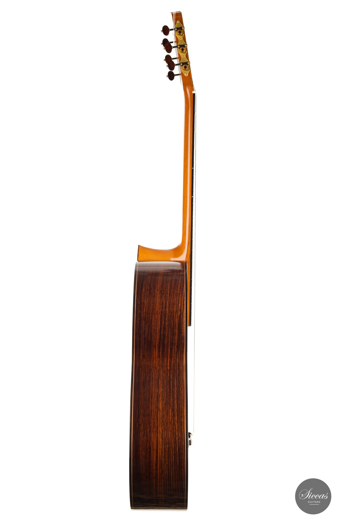 This admirable 2015 guitar is in almost perfect condition with only a few playing marks. The openness of the tone and responsiveness of the soundboard is just unbelievable. The trebles are enormous with an airy well rounded, and mature character. Exploring the tone colours and dynamic range of this guitar is an absolute pleasure, and this instrument faithfully gives back to the public everything the guitarist puts in.
