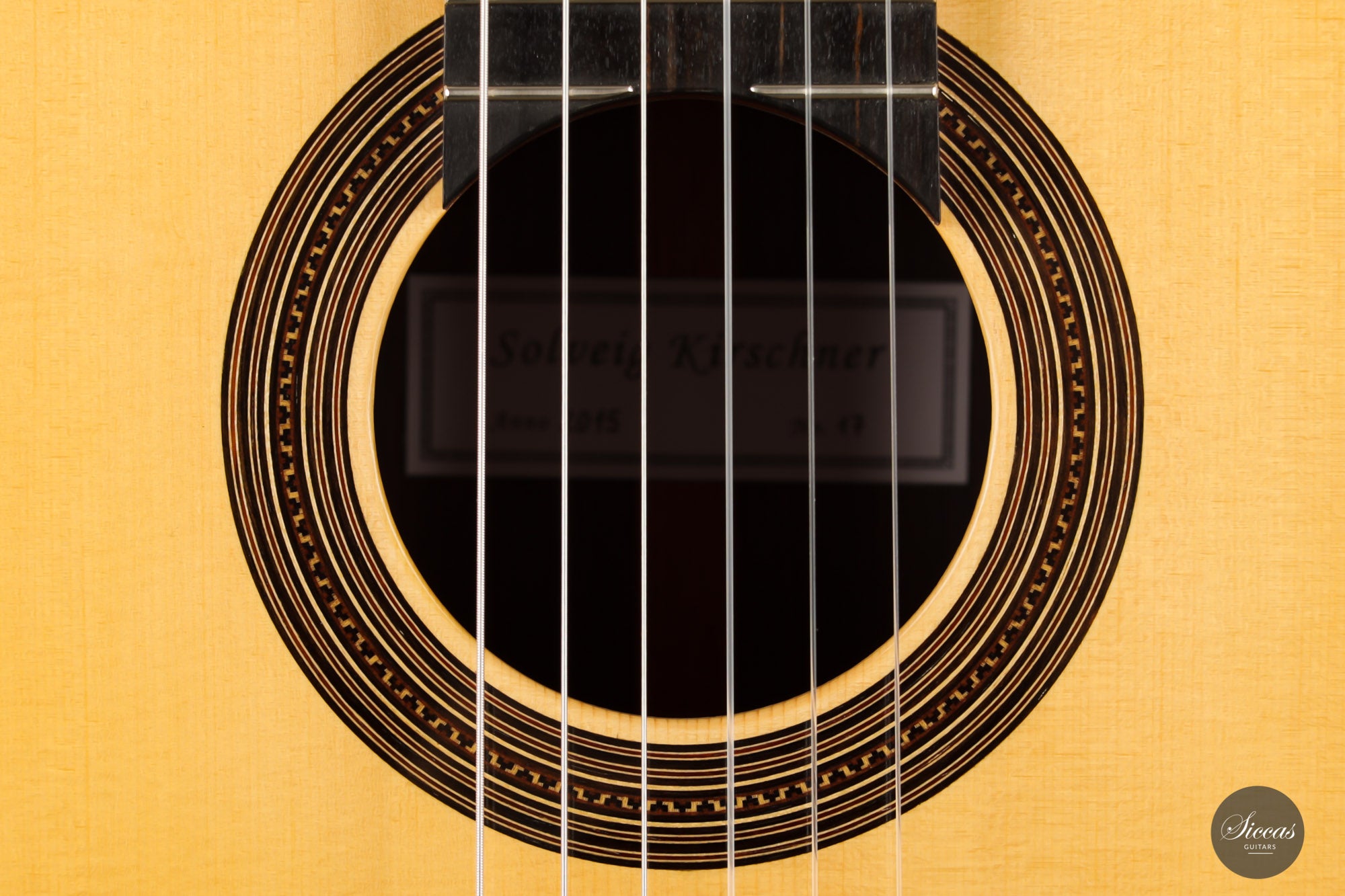 Solveig studied lutherie at the State School of Musical Instrument Making in Mittenwald/Germany and now lives and works in Niedenstein/Germany, where she and her husband Andreas run a joint guitar workshop where her fantastic guitars are made. She only builds four to five guitars a year, but with the highest devotion and precision, creating breathtakingly beautiful instruments. Solveig’s guitars are traditionally built, very light and impressively powerful. Typical for her instruments is the charming and elegant sound of the trebles, which, combined with perfect balance and long sustain, results in a fantastic singing guitar.