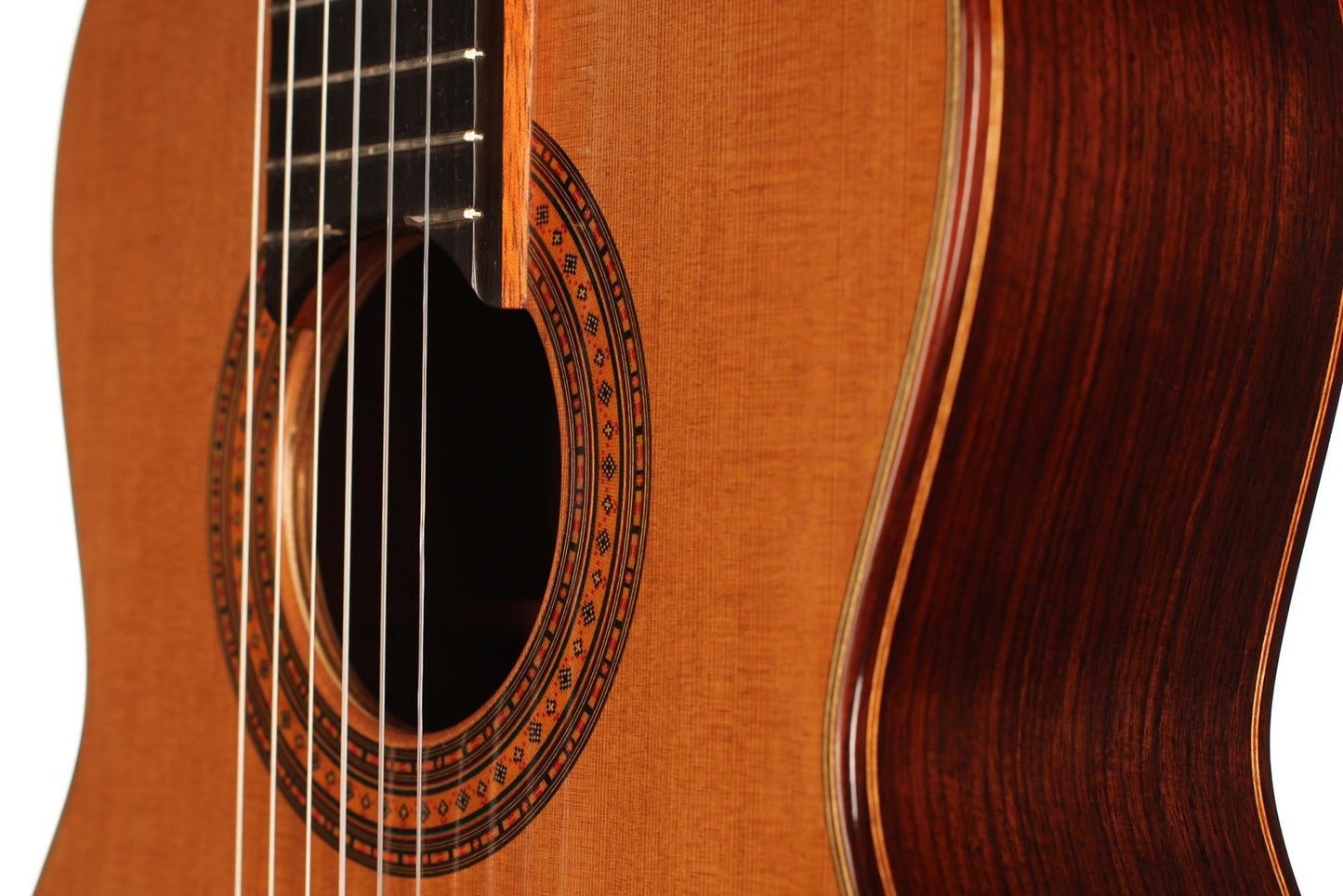 The classical guitar, with its soft nylon strings and characteristic timbre, has become a symbol of chamber music, Spanish tradition, and concert repertoire. Its modern form was shaped by Antonio de Torres in the 19th century, setting the standard for the body, fan bracing, and the 65-centimeter scale length that are still used today. Instruments in this category open up a rich palette from the refined Romantic miniatures of Tárrega to the majestic concertos of Rodrigo. Here you will find guitars that preserve historical continuity and at the same time inspire new interpretations.Look all products of the collection -