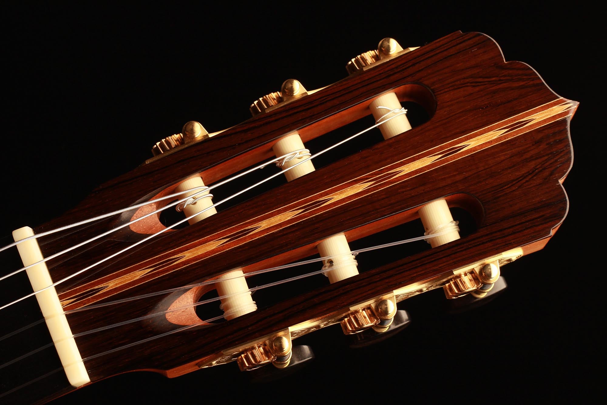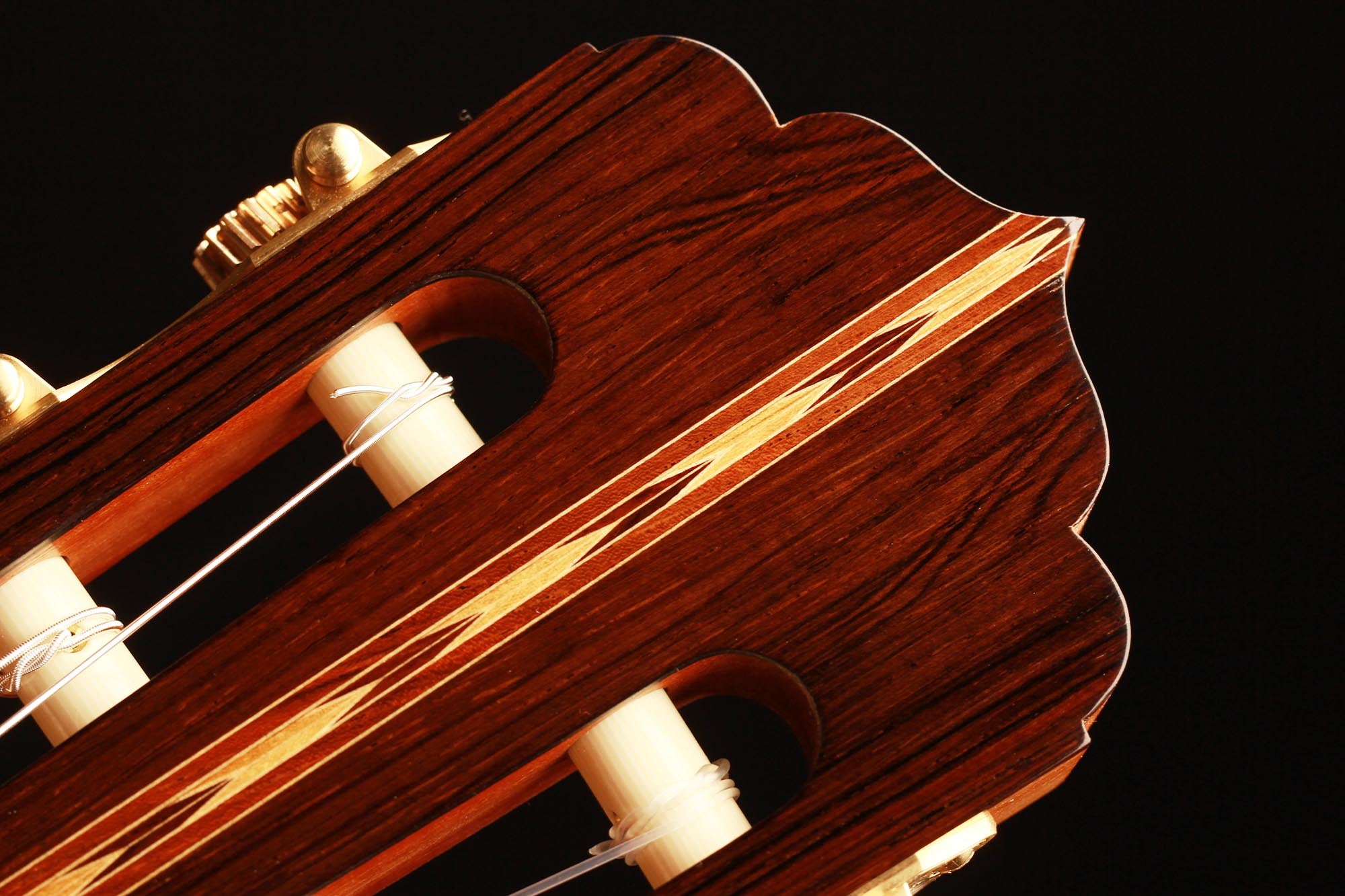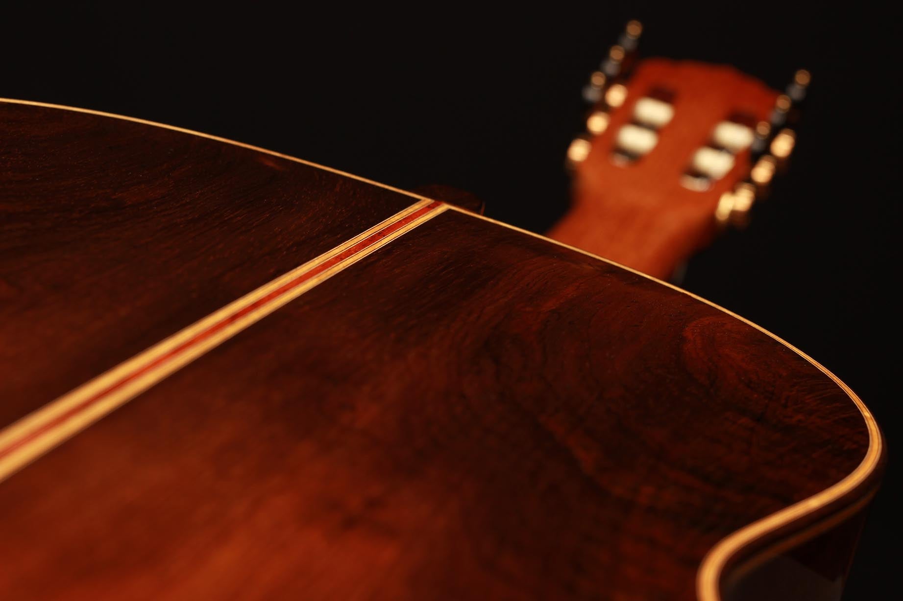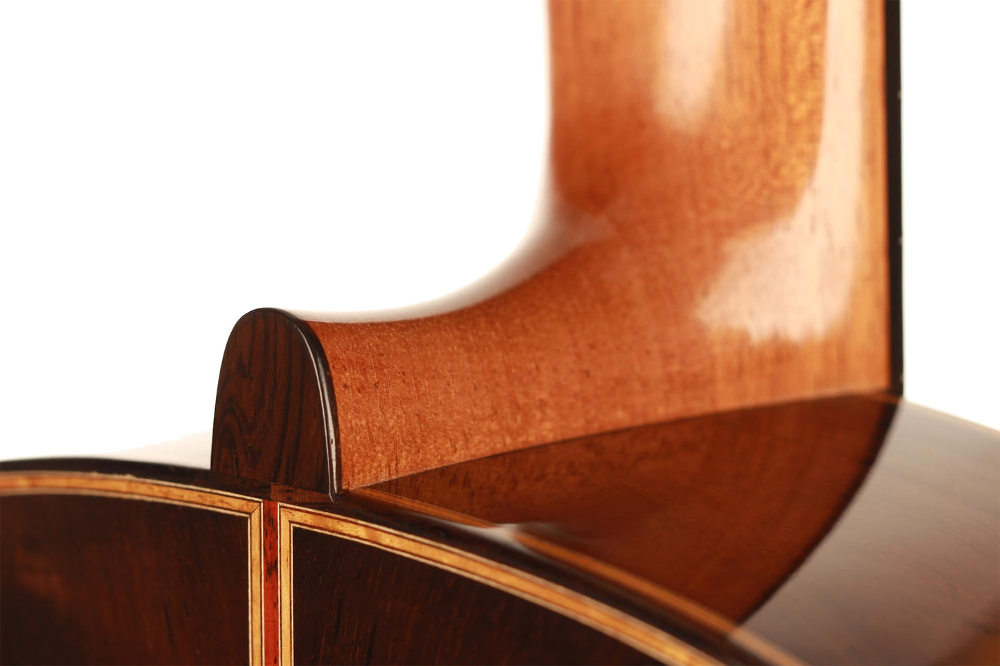 This beautiful instrument named “La Lucena” is one of Stefan Nitschke’s true masterpieces, reaching the highest standards. With its bear-claw vintage-colored spruce top and first-grade Brazilian rosewood (Cites certified), the appearance of this guitar is absolutely striking. Stefan paid great attention to the marquetry details of this José Luis Romanillos model, reproduced the legendary rosette true to the original and used the legendary bridge inlays.