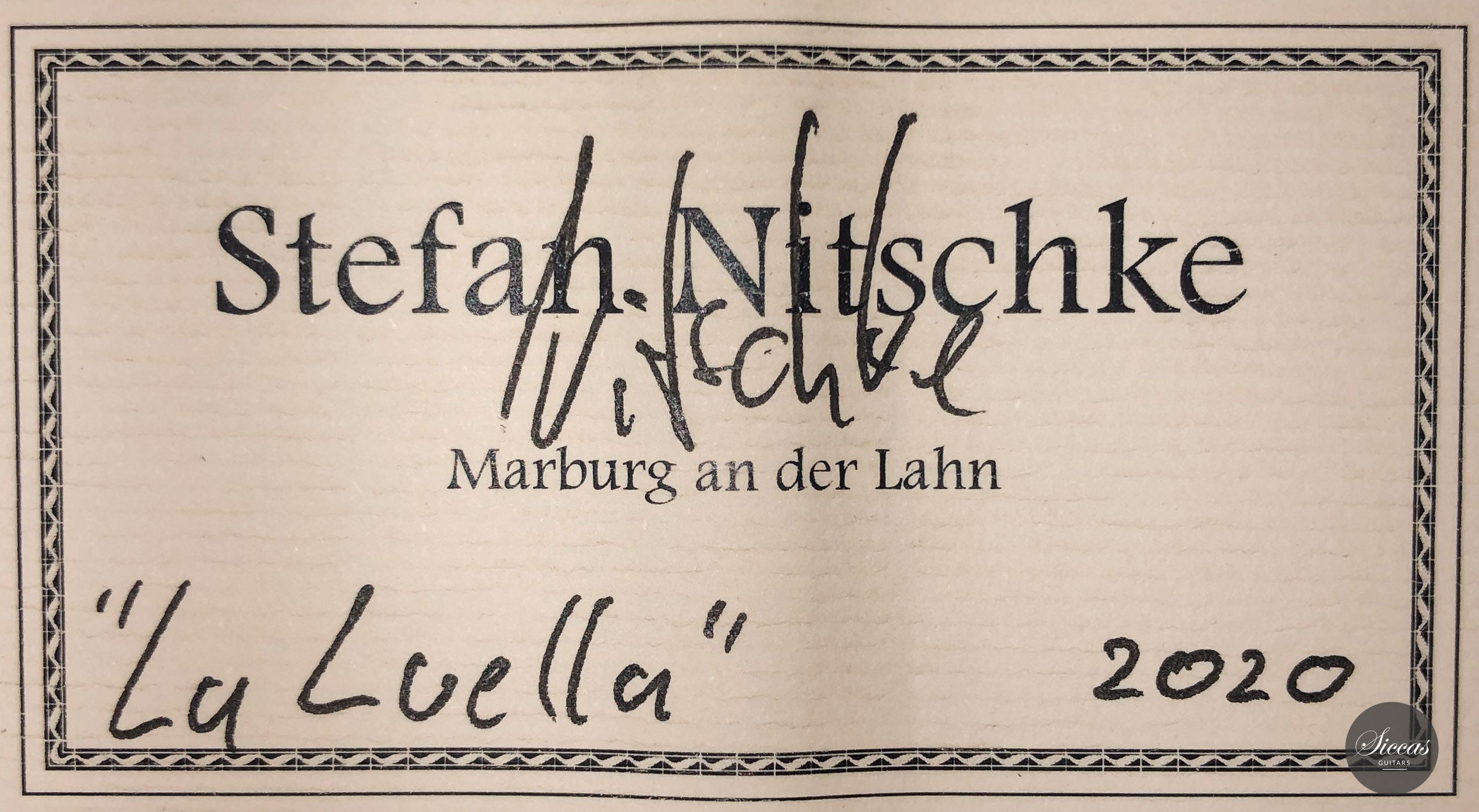 It is a pure joy to play and admire this wonderful guitar, named "La Luella". By choosing highest quality and rare woods Stefan Nitschke has created a colorful and symphonic work of art.Back and sides are made of (CITES-certified) Brazilian rosewood varying in the nuances from dark chocolate to vivid orange. The fine-grained spruce top gives the guitar a wide, open sound. This guitar has a deep singing and silky bass paired with smooth and playful trebles. The great general playability of this instrument adds once again to the pleasure of the guitarist. As a result, this vivid guitar is splendid both in its construction as well as in elegance and depth of its tone. A true concert guitar that will inspire many years to come.
