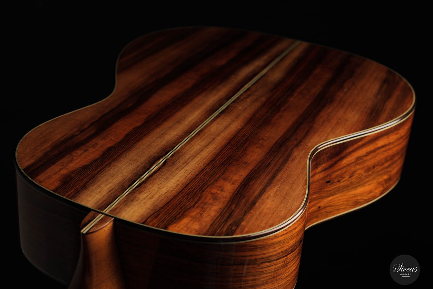 The 2023 Stefan Nitschke "La Imelda" guitar serves as an epitome of expert guitar craftsmanship and remarkable tonal qualities. Nitschke, recognized in the guitar-making industry for his amazing designs and attention to detail, handcrafted "La Imelda" with a selection of rare, high-quality woods, making it a must-have for both collectors and musicians worldwide. Constructed from CITES-certified Rio rosewood, "La Imelda" is a feast for the eyes with its color variations that range from a deep chocolate hue to a vibrant orange. The back panel of this exquisite guitar features a unique, centered orange feather-like pattern, showcasing Nitschke's unparalleled aesthetic sense in guitar construction. The guitar top, another crucial aspect of this exceptional instrument, is made of fine-grained "bear claw spruce," a material favored by many German luthiers for its superior acoustic properties. This premium wood selection results in a guitar capable of producing a wide and open sound, making "La Imelda" a coveted model among discerning guitarists. What sets the 2023 Stefan Nitschke "La Imelda" guitar apart from other instruments in its category is its distinctive resonance frequency slightly below F. This unique characteristic results in a rich and responsive bass sound. "La Imelda" delivers a deep, melodious, and silky bass, creating an immersive music experience for players and listeners alike. Complementing its outstanding bass is the smooth and playful treble, displaying a unique spontaneous character. This guitar's exceptional playability further enhances the playing experience, adding to the overall pleasure of owning and performing with this instrument. In conclusion, the 2023 Stefan Nitschke "La Imelda" guitar, with its superior craftsmanship, materials, and sound depth, stands as a testament to Nitschke's mastery in lutherie. Whether you're a collector or a performing artist, "La Imelda" is an investment worth considering.