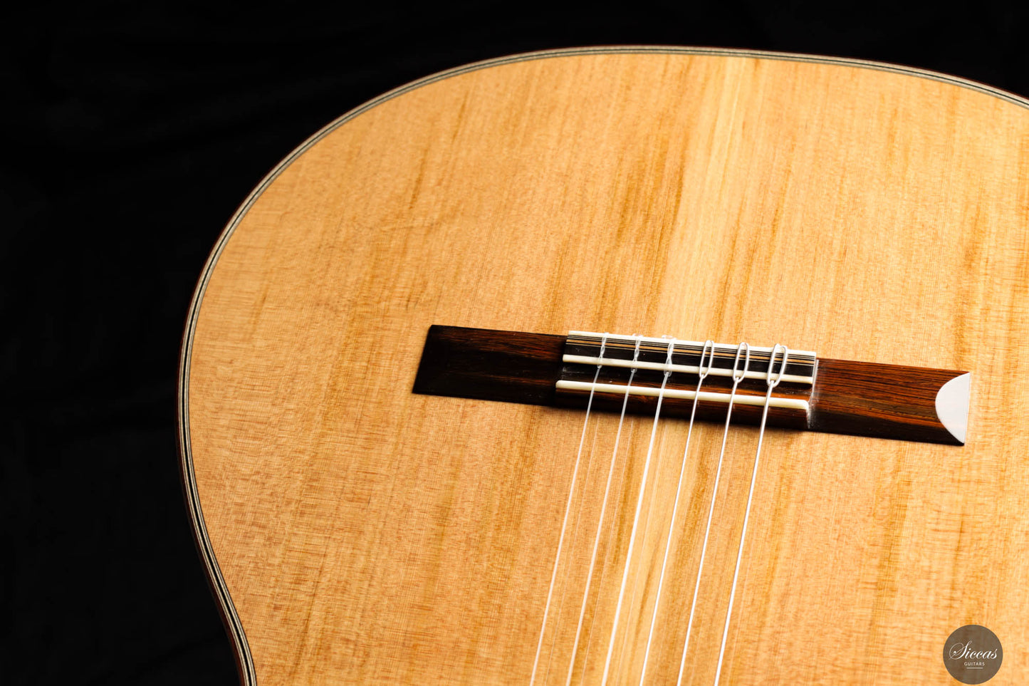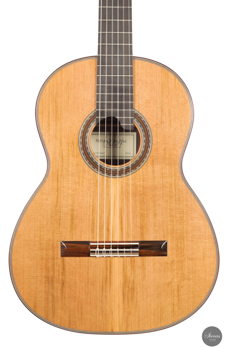 Over the past 15 years, Stefan Nitschke has established himself as a distinguished luthier, creating guitars that transcend functionality to become true works of art. His journey began under the mentorship of the renowned Gerhard Oldiges, and his creations reflect the enduring legacy of 19th- and 20th-century masters such as Antonio de Torres, Francisco Simplicio, and Santos Hernandez. The influence of these iconic figures can be felt in the refined tonal qualities and impeccable craftsmanship of Nitschke’s instruments.