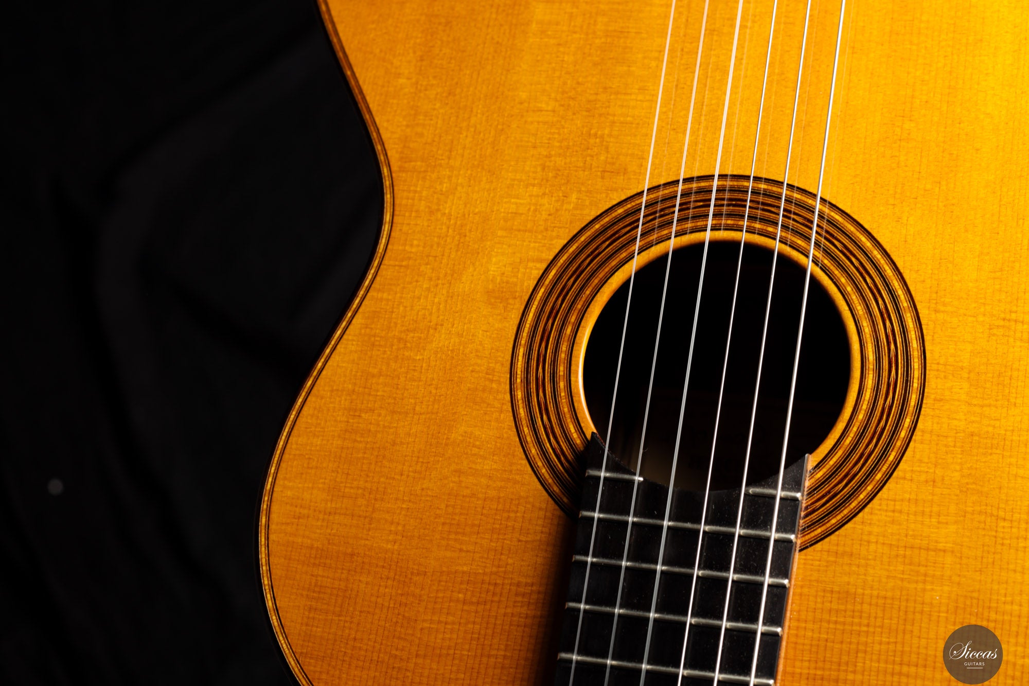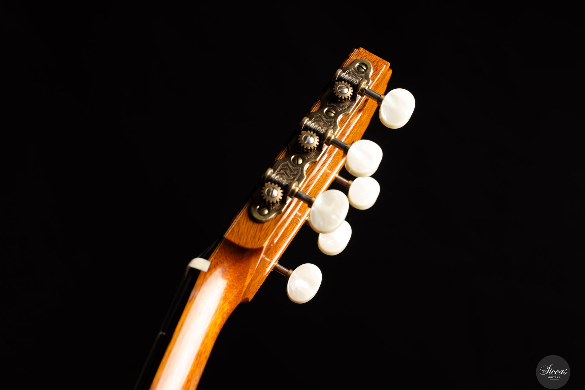 The guitar is in excellent condition. A small crack on the back has been carefully glued and is considered stable. Otherwise, the instrument shows minimal wear and remains structurally sound. The French polish finish is well preserved, and the Sloane tuners operate precisely. The guitar is fully performance-ready.Regular care extends the life of the instrument