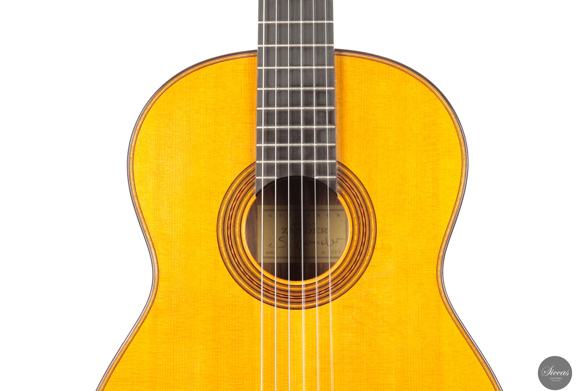 Stefan Zander has been building guitars for over three decades, earning recognition for instruments that combine precision, balance, and tonal depth. His work is rooted in the tradition of the Spanish guitar but informed by his own design concepts. Zander places emphasis on energy-efficient sound transmission, careful voicing of tonewoods, and exact craftsmanship down to the smallest details. Each instrument is hand-tuned to achieve a broad palette of colors, wide dynamic range, and excellent playability. By blending traditional methods with a deep knowledge of acoustics and materials, Zander has created instruments that are highly valued by discerning performers.About the guitar
