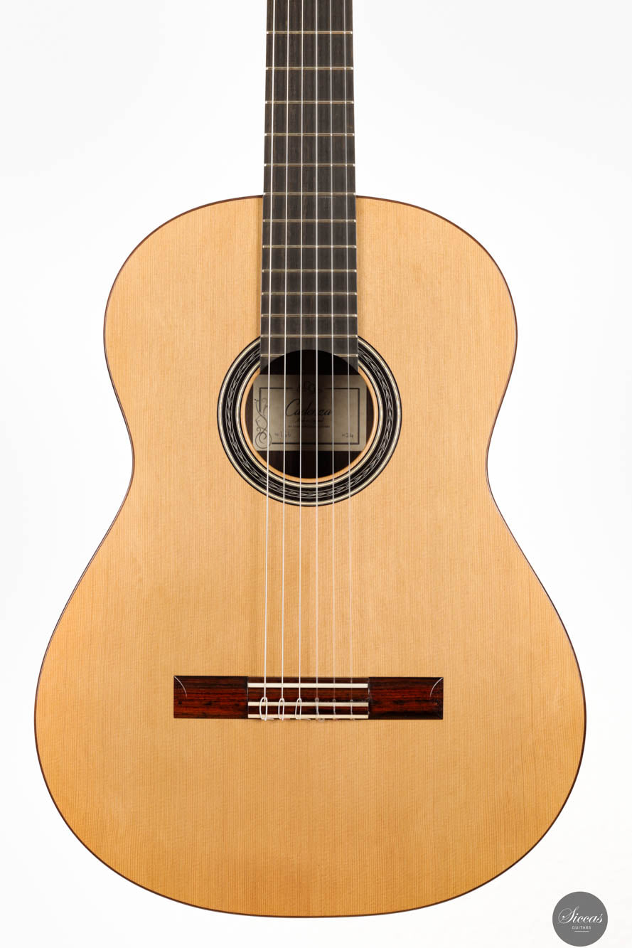 The Cadenza model represents an innovative approach to crafting concert-quality guitars that are accessible on a budget. This instrument prioritizes exceptional sound quality and playability, consciously minimizing the inclusion of expensive cosmetic details without compromising the integrity of the guitar. Constructed following the design principles of standard concert models, it utilizes the same high-quality woods and exhibits craftsmanship of an equally high standard. Originally conceptualized as an economical option for talented students, the Cadenza has proven to be more than just an entry-level instrument; it is a concert guitar through and through, designed to meet the rigorous demands of performance without the prohibitive price tag.