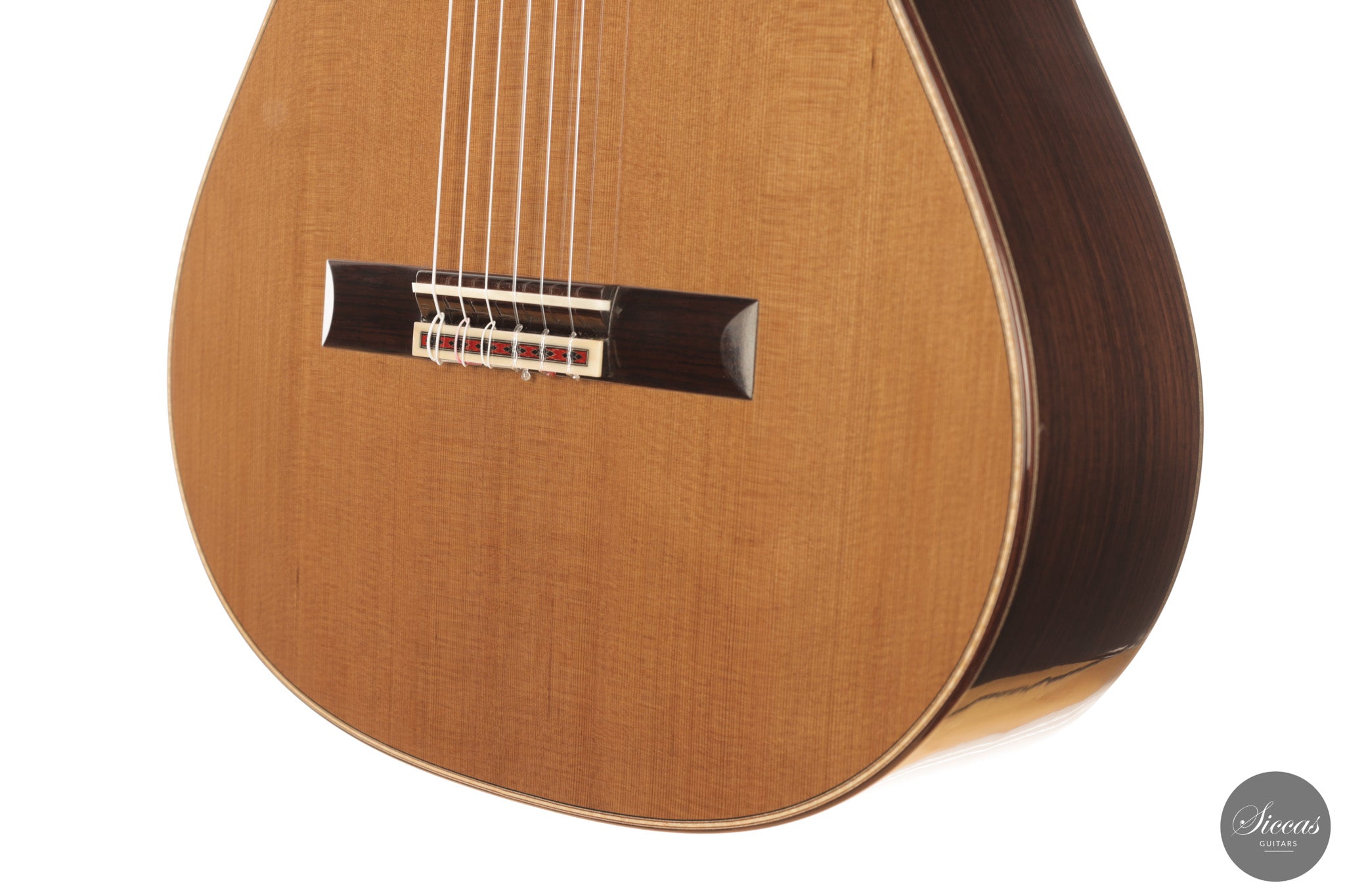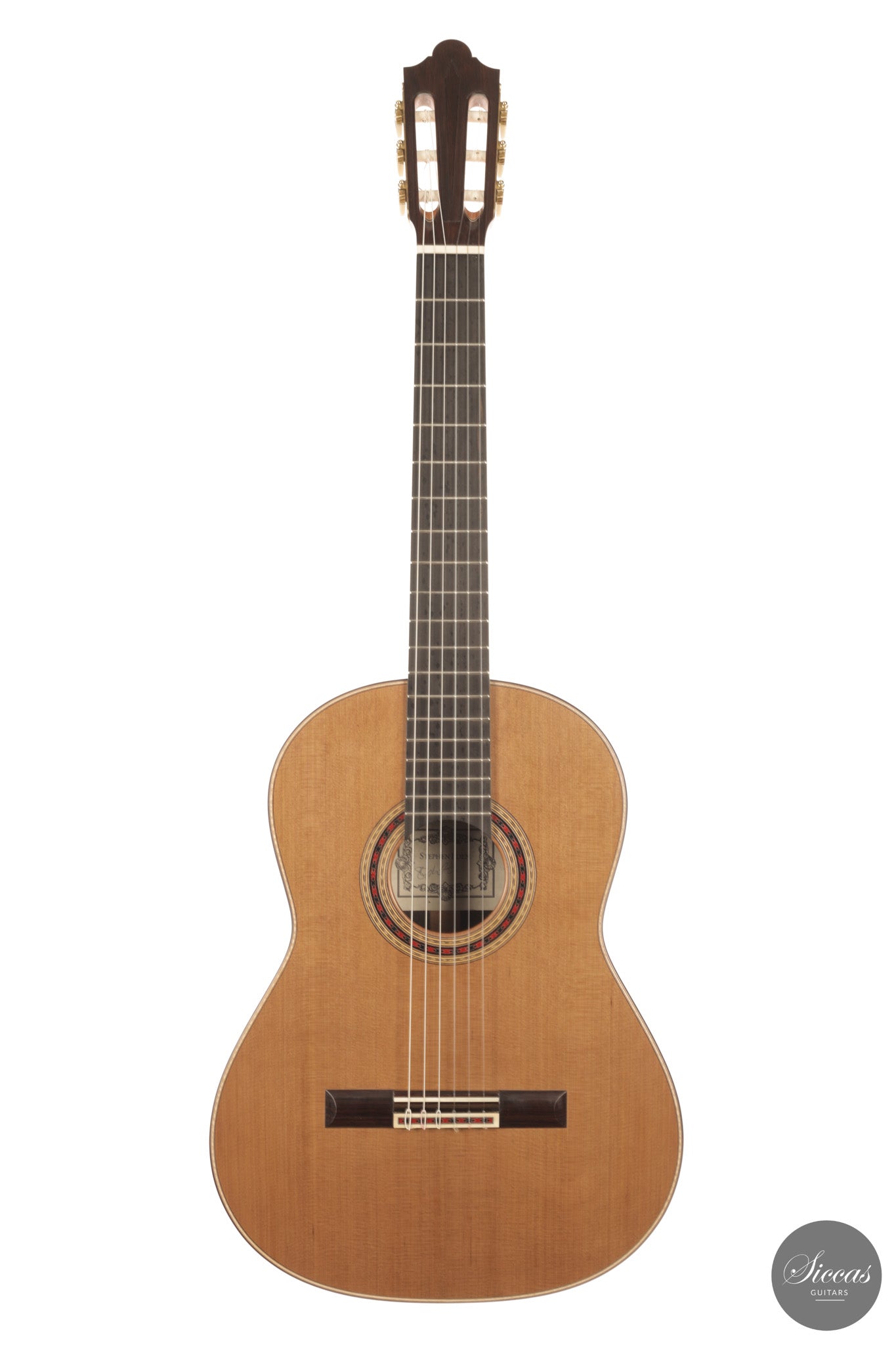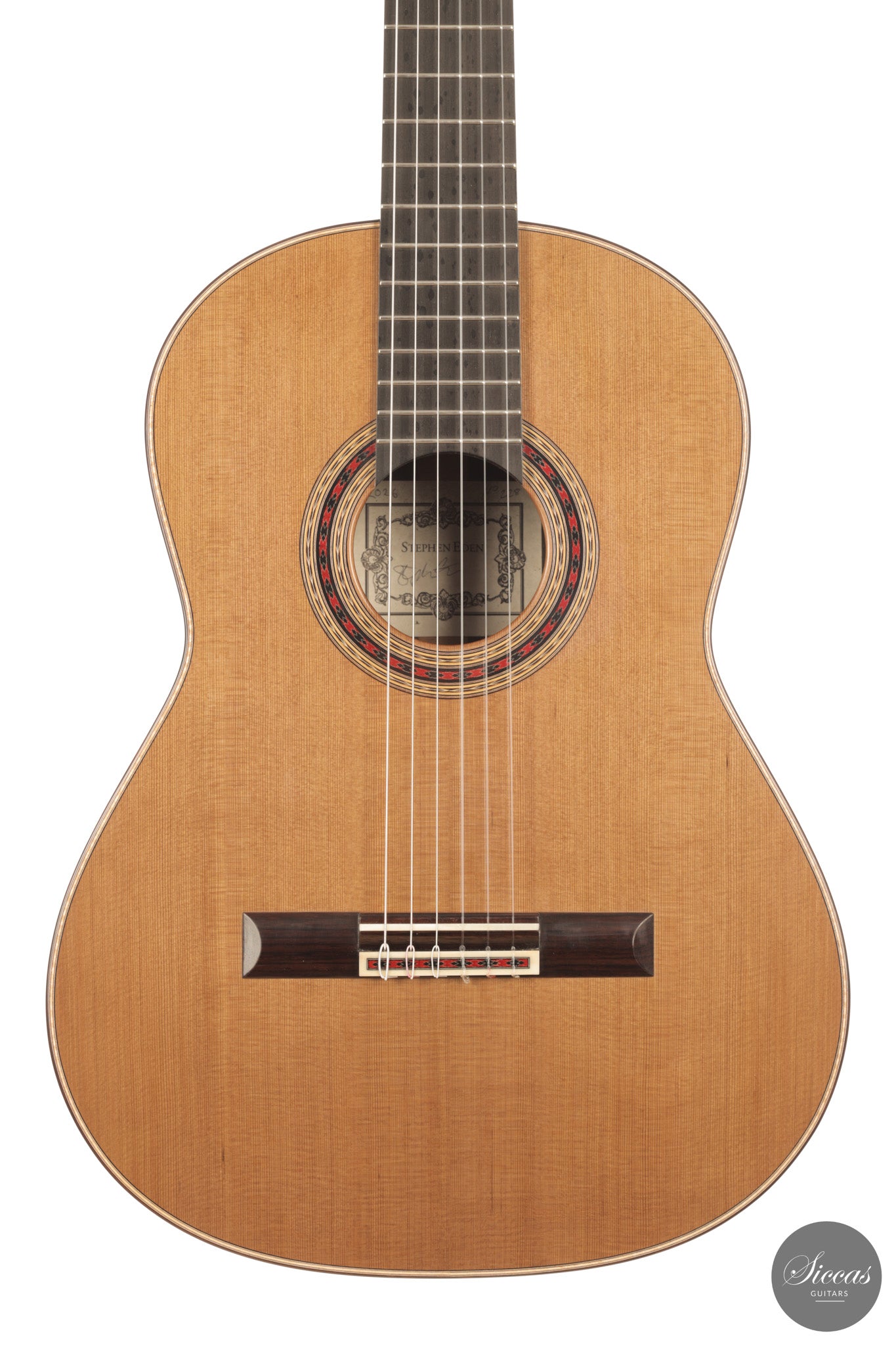 Stephen Eden 2026 “Daniel Friederich 1980” No. 228 in traditional construction with cedar top and Indian rosewood back and sides, French polished. Featuring doubled sides for added rigidity, it offers long sustain, centred clarity, controlled overtones, and a stable, powerful concert voice.