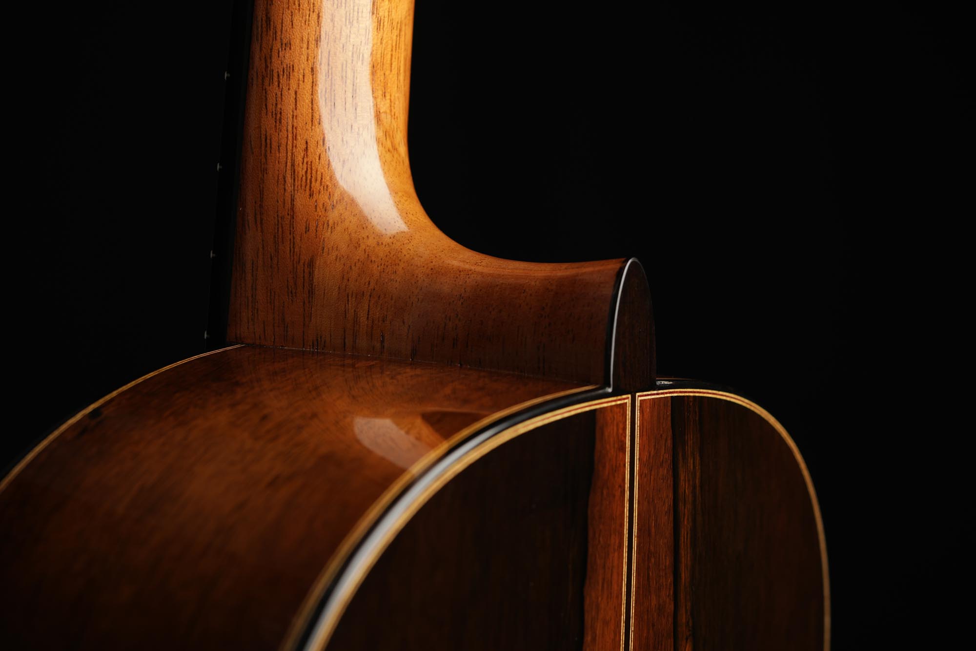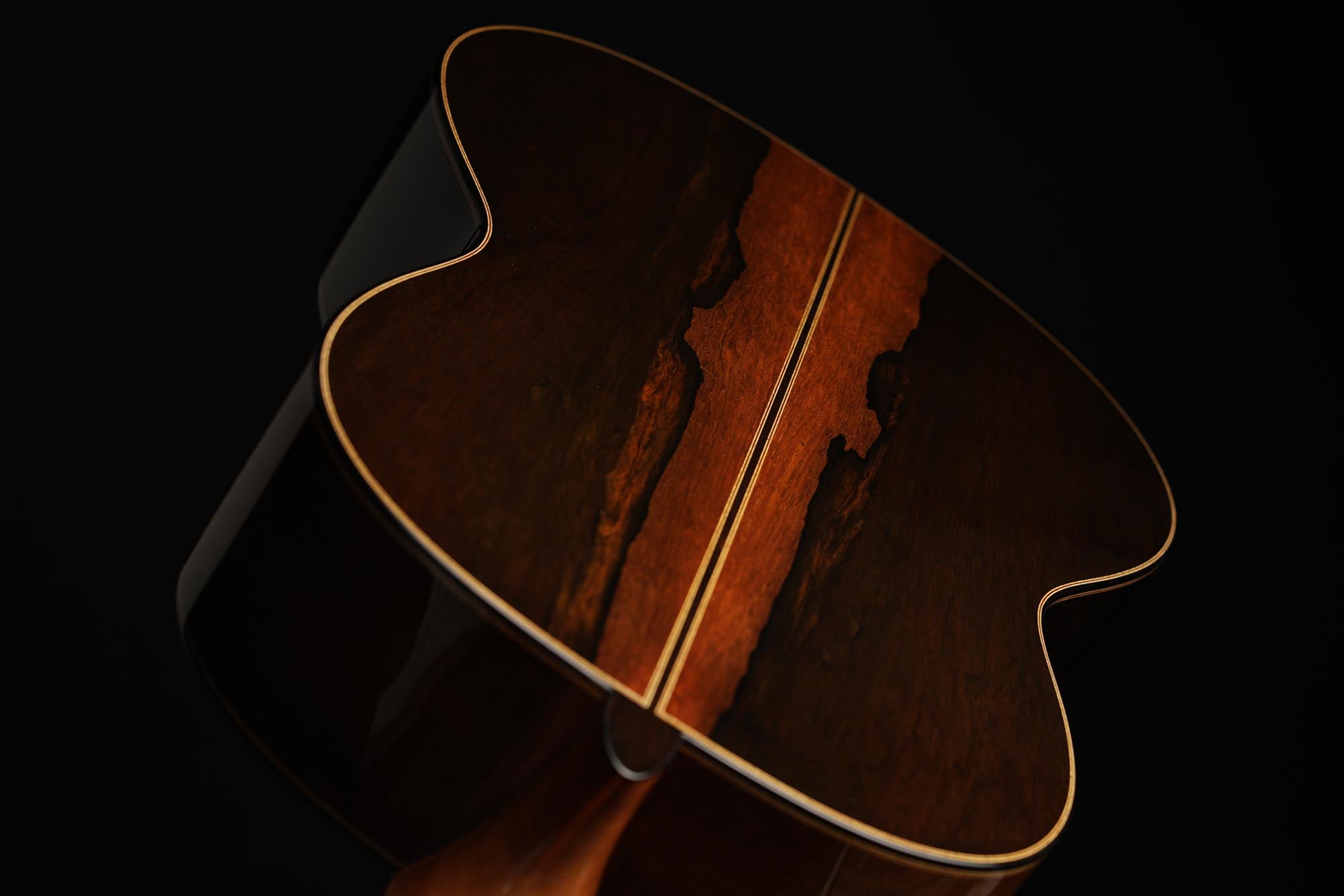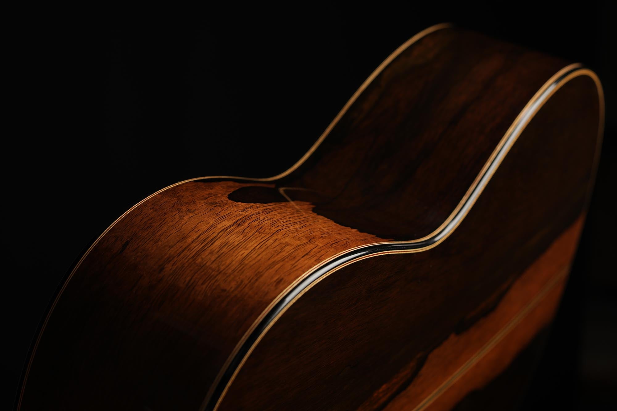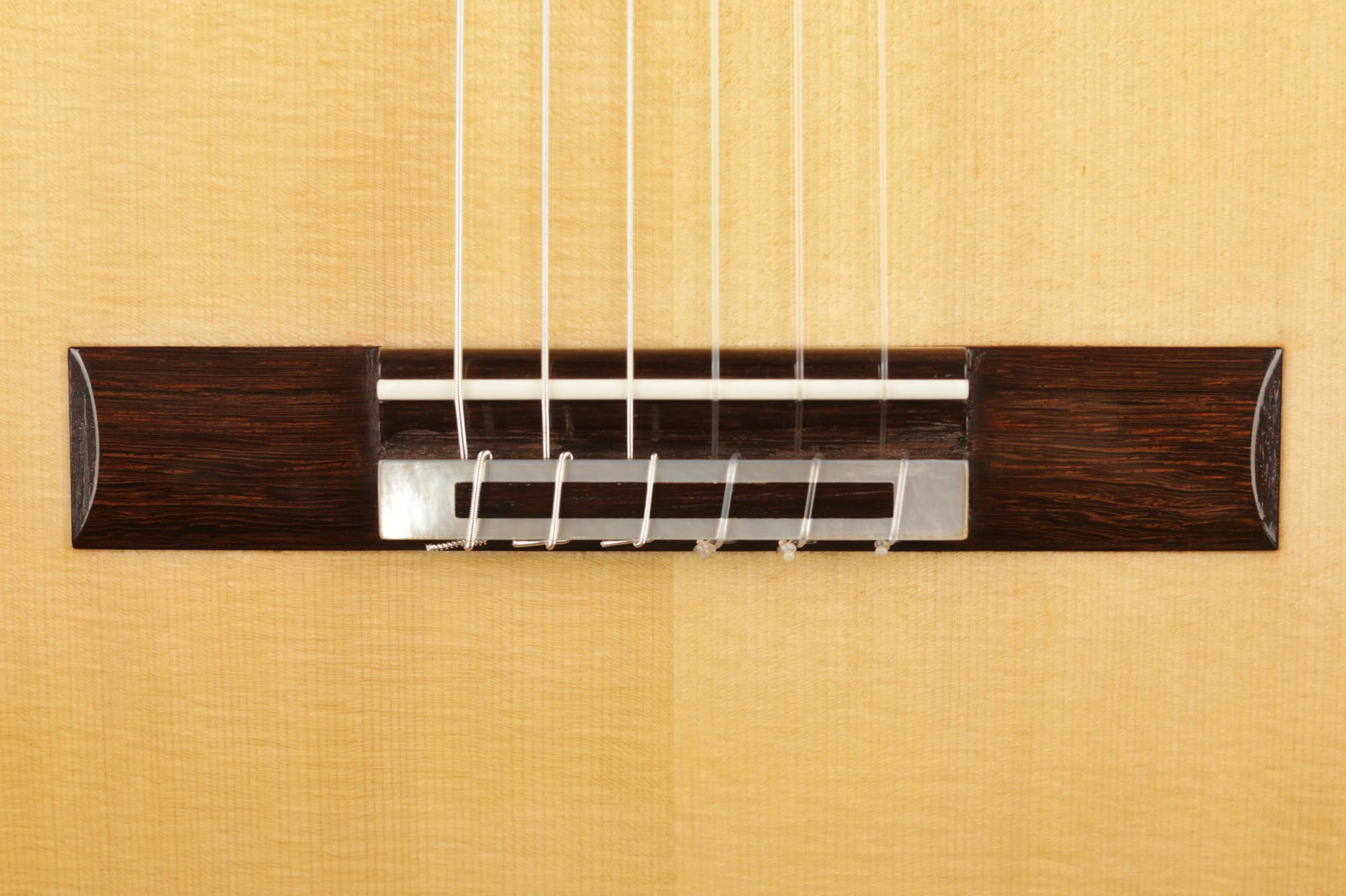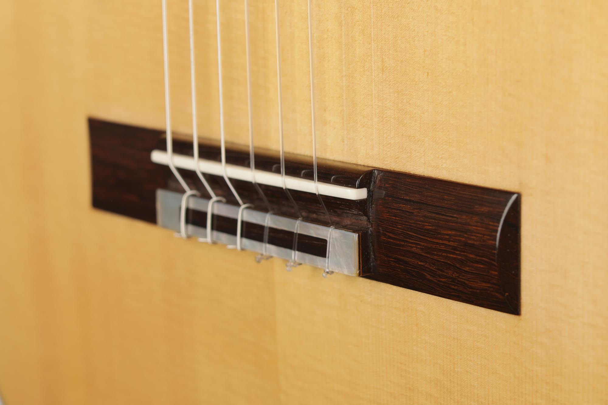 This beautiful instrument numbered 245 is actually our first double top that we receive from Stephen Hill and one can immediately notice the difference to his traditionally built model. This spruce double-top has a distinguished power. There is a lot of reverb and sustain coming from each string, which makes the guitar very inspiring to play on. Back and sides are made of gorgeous CITES certified Brazilian rosewood that one visually drowns in. Due to the big sonorous voice of this instrument, the player can easily change dynamics without making a big effort and this Stephen Hill sounds distinctly open for a new guitar. The neck is perfectly shaped so that the left-hand can move smoothly and relaxed. A Hiscox case is included in the price.