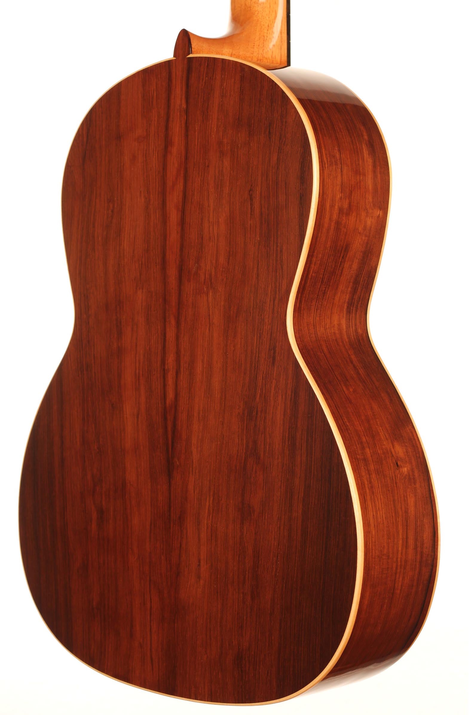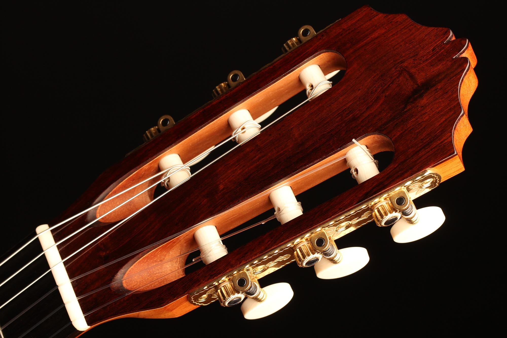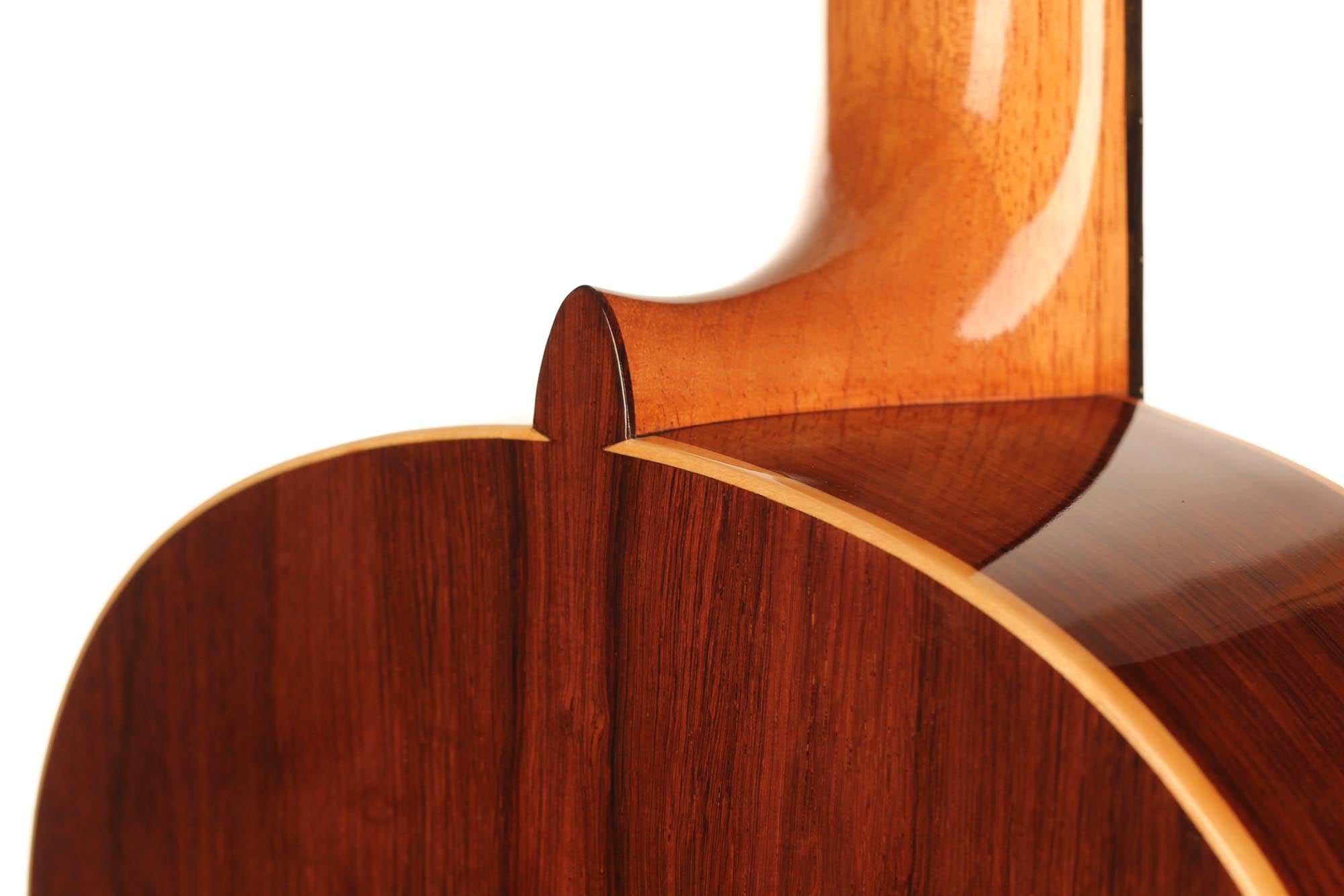 This beautiful guitar has a very traditional Spanish appearance, and one must say that the very mature tone also reminds of the warm singing Spanish guitars of the late nineteenth / early twentieth century. The round sweet trebles are very spontaneous and go very well along with the sustain-full traditional basses. A thinly worked neck as well as a 50 mm wide nut enhance the playability of this guitar and make it both a very comfortable and generously sounding instrument.