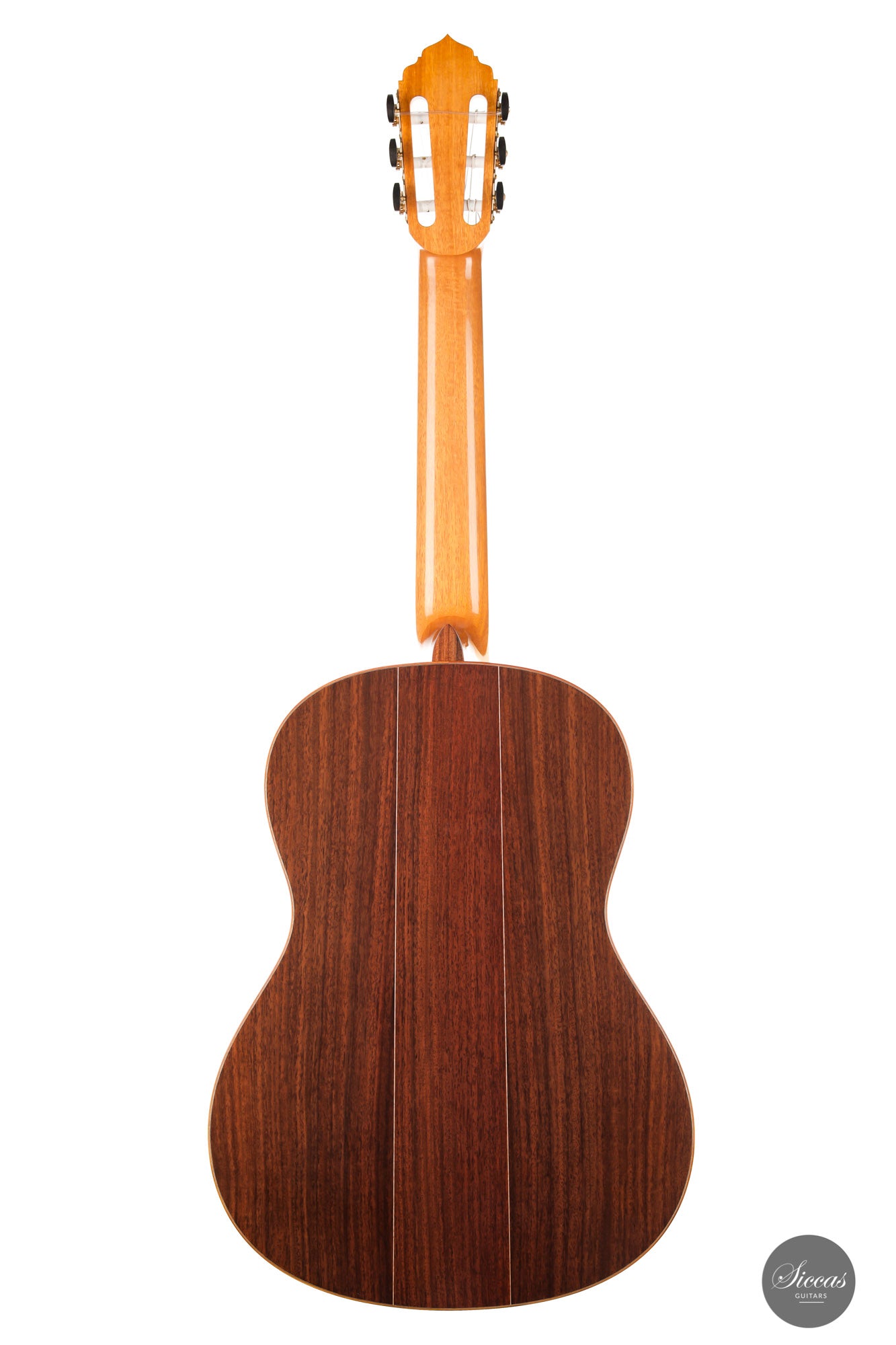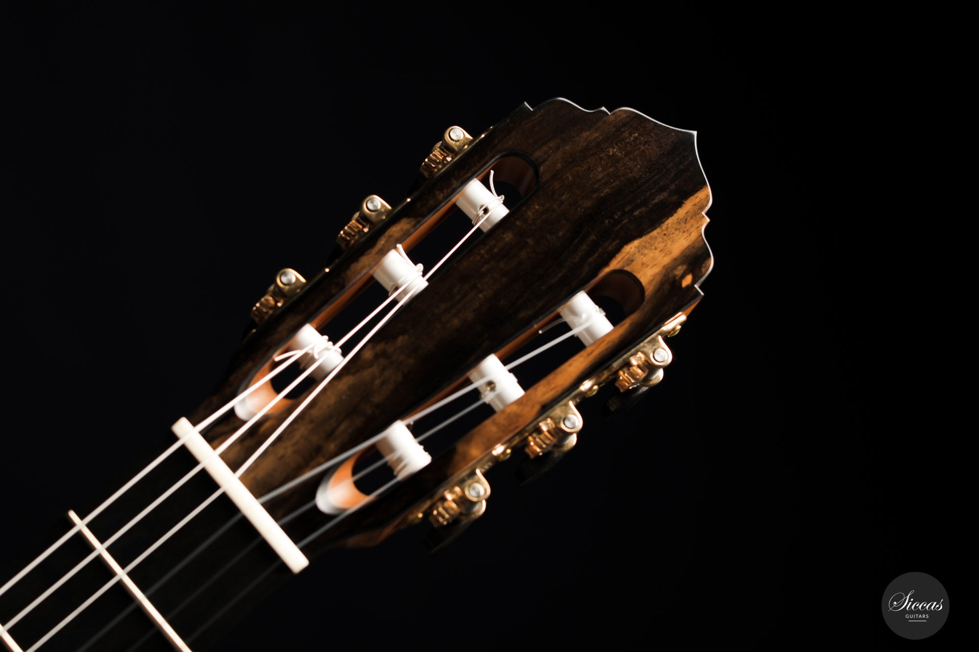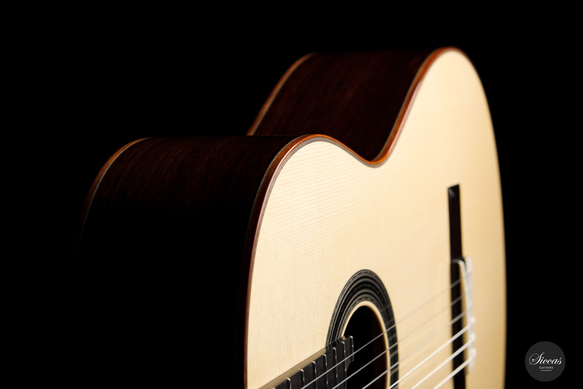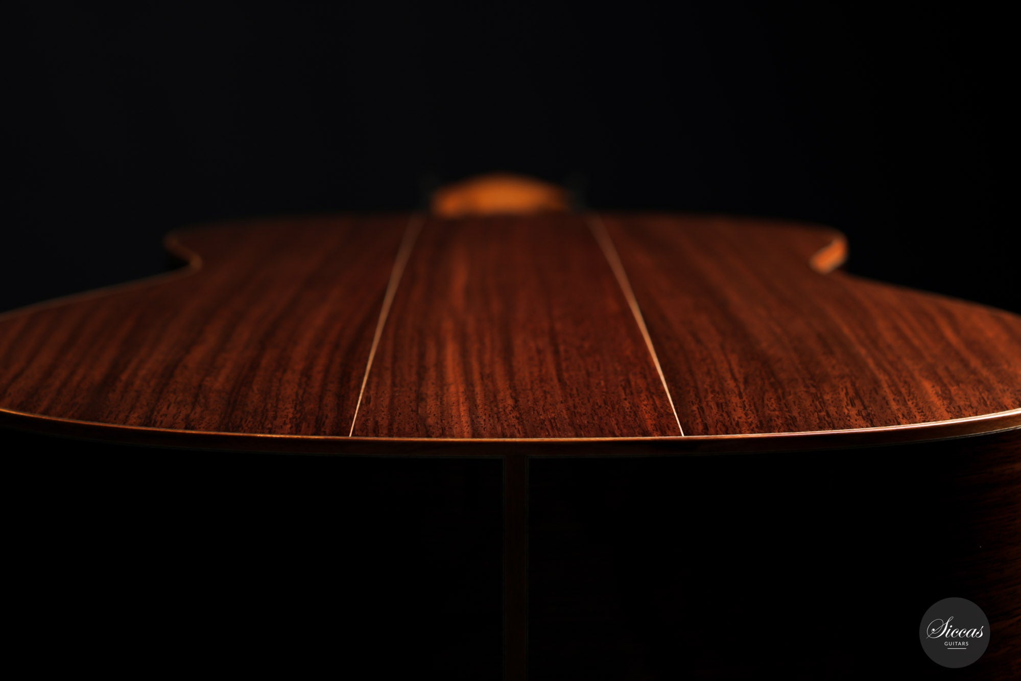 This guitar is a highlight and comes directly from Sylvain's Alpine workshop. The craftsmanship is amazing, and the sound is just as impressive. This 2021 model has velvety deep Basses with astounding smoothness. Bell-like trebles project crystal clear into the room and develop an inspiring series of overtones. In addition, the playing feel is exactly what you would expect from a premium classical guitar. Tone production is immediate, playing comfort for the left hand is at the highest level, and the tonal palette is almost limitless. In short, this instrument is a magnificent and impressive example of the famous French traditional guitar making.