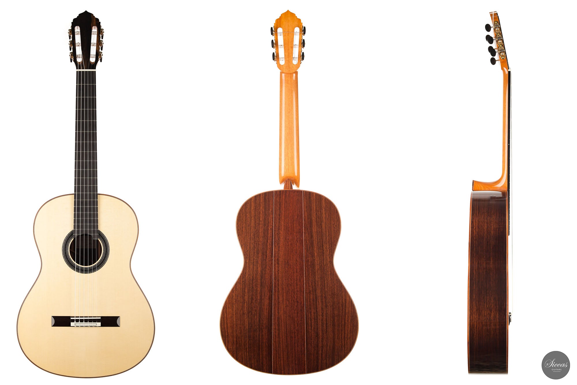 The classical guitar, with its soft nylon strings and characteristic timbre, has become a symbol of chamber music, Spanish tradition, and concert repertoire. Its modern form was shaped by Antonio de Torres in the 19th century, setting the standard for the body, fan bracing, and the 65-centimeter scale length that are still used today. Instruments in this category open up a rich palette from the refined Romantic miniatures of Tárrega to the majestic concertos of Rodrigo. Here you will find guitars that preserve historical continuity and at the same time inspire new interpretations.