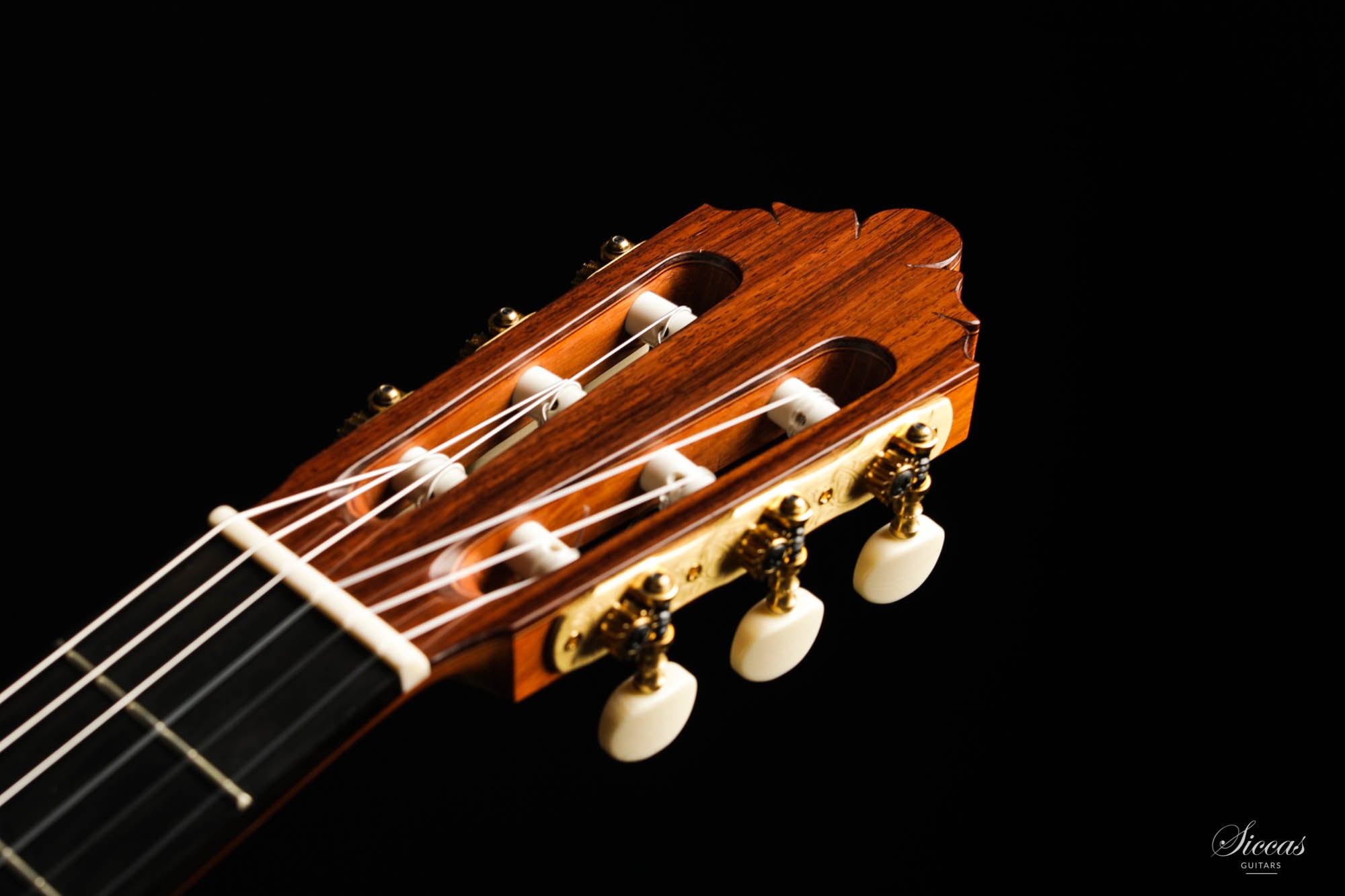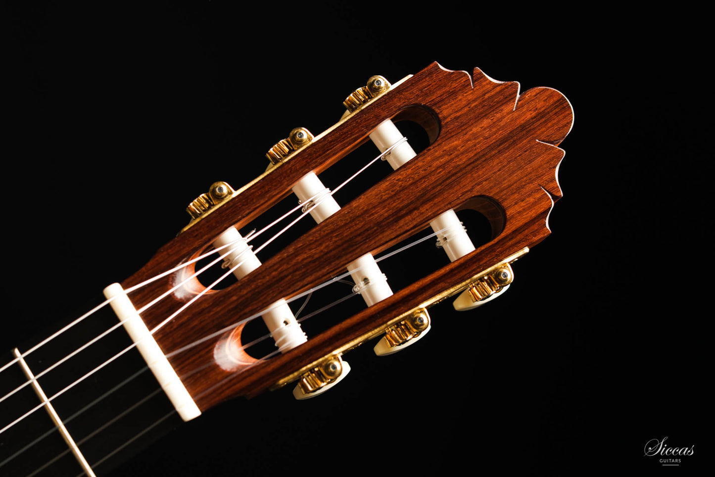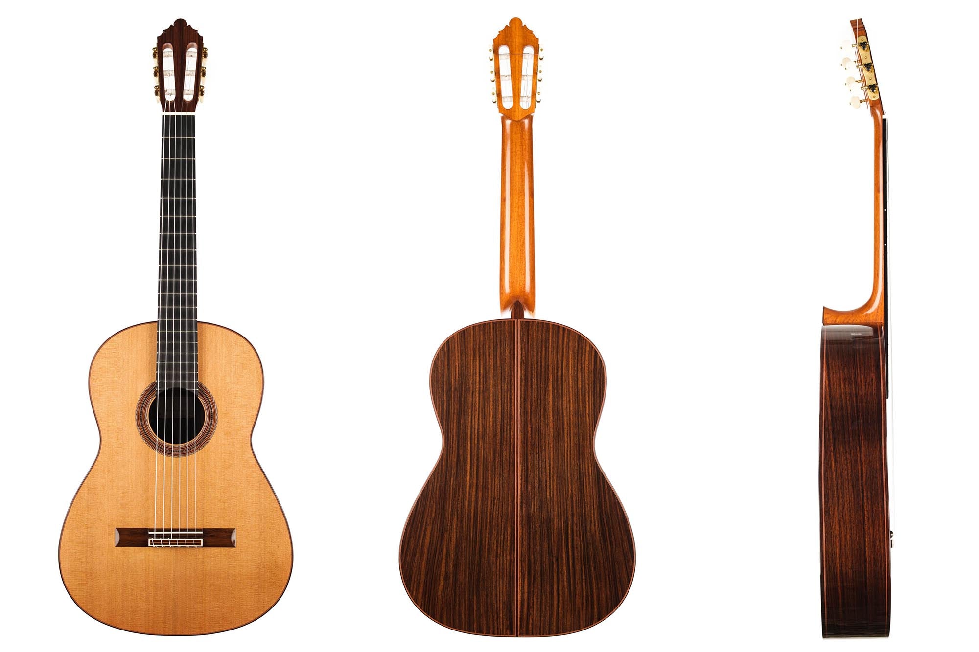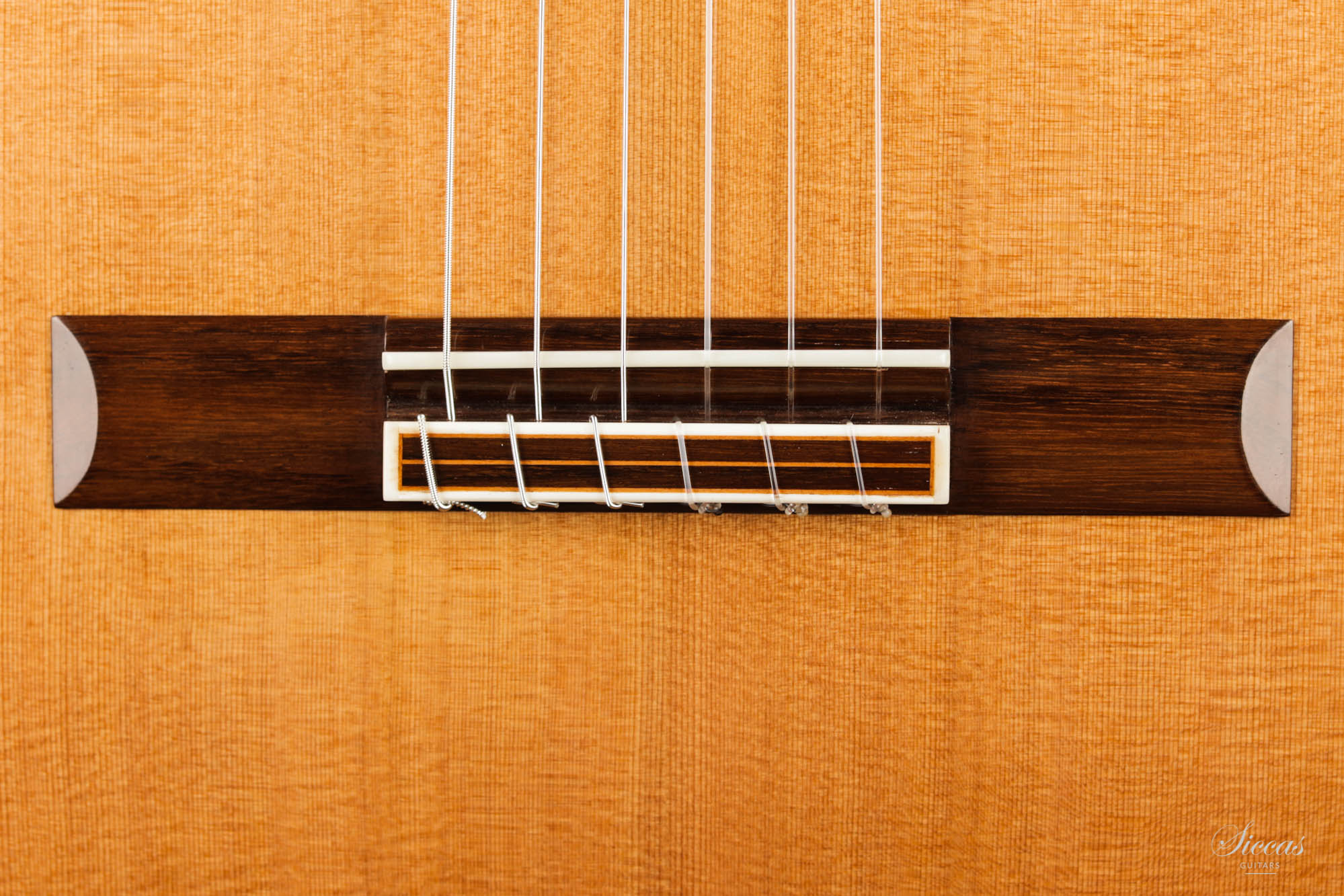 Bei ihrem Modell handelt es sich um eine Klassikgitarre, die durch die Erfahrungen mit verschiedenen Gitarrenbauern und das Studieren verschiedenster Instrumente entstand. Es handelt sich um eine 7-Fächer beleistete Gitarre mit Fichtendecke (Zederndecke) und einer durchgehenden Deckenwölbung, die der dünn ausgearbeiteten Decke die nötige Steifigkeit verleiht und optisch in Einklang mit dem erhöhten Griffbrett steht. Dieses erleichtert das Spielen in den hohen Lagen und sorgt für eine einfache Bespielbarkeit des Instruments. Boden und Zargen bestehen aus Ostindischem Palisander und der Hals aus Cedro.