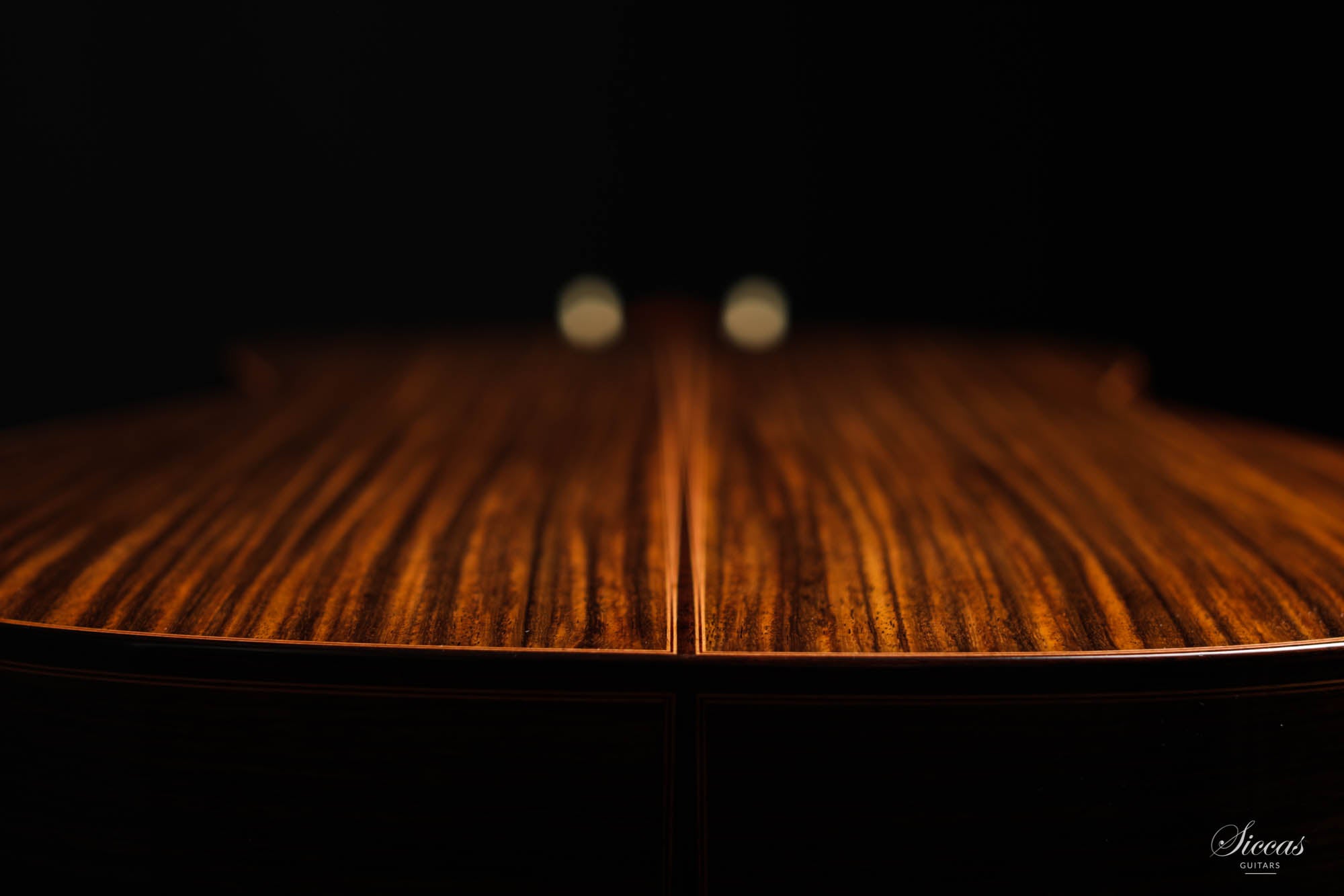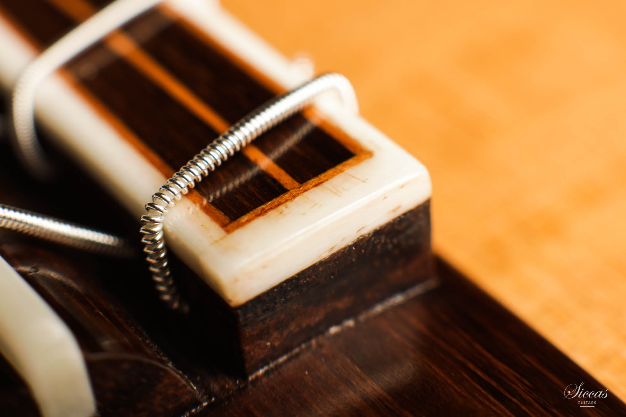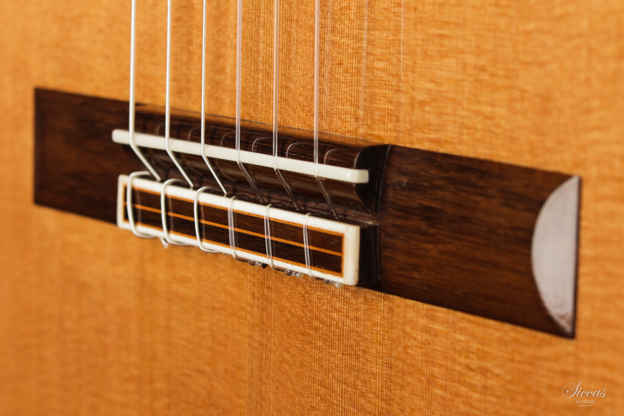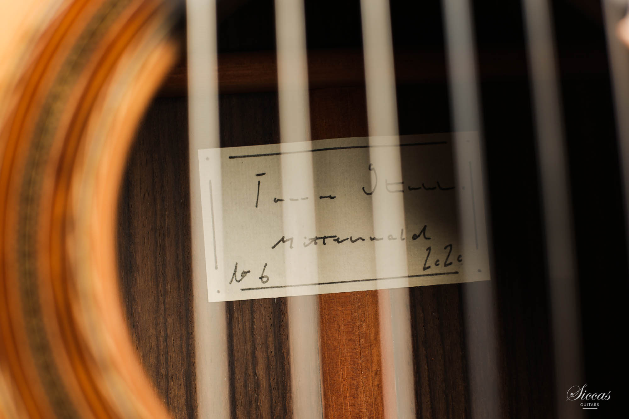 Bei ihrem Modell handelt es sich um eine Klassikgitarre, die durch die Erfahrungen mit verschiedenen Gitarrenbauern und das Studieren verschiedenster Instrumente entstand. Es handelt sich um eine 7-Fächer beleistete Gitarre mit Fichtendecke (Zederndecke) und einer durchgehenden Deckenwölbung, die der dünn ausgearbeiteten Decke die nötige Steifigkeit verleiht und optisch in Einklang mit dem erhöhten Griffbrett steht. Dieses erleichtert das Spielen in den hohen Lagen und sorgt für eine einfache Bespielbarkeit des Instruments. Boden und Zargen bestehen aus Ostindischem Palisander und der Hals aus Cedro.