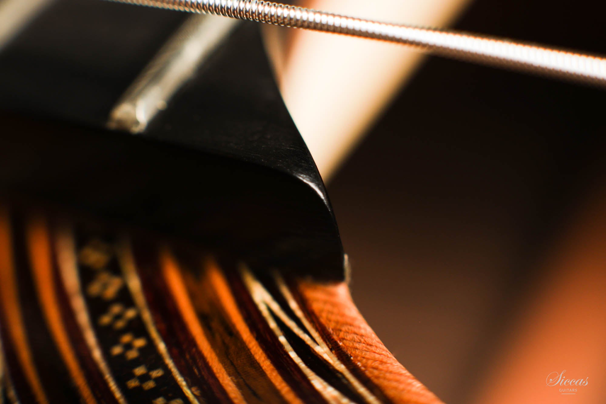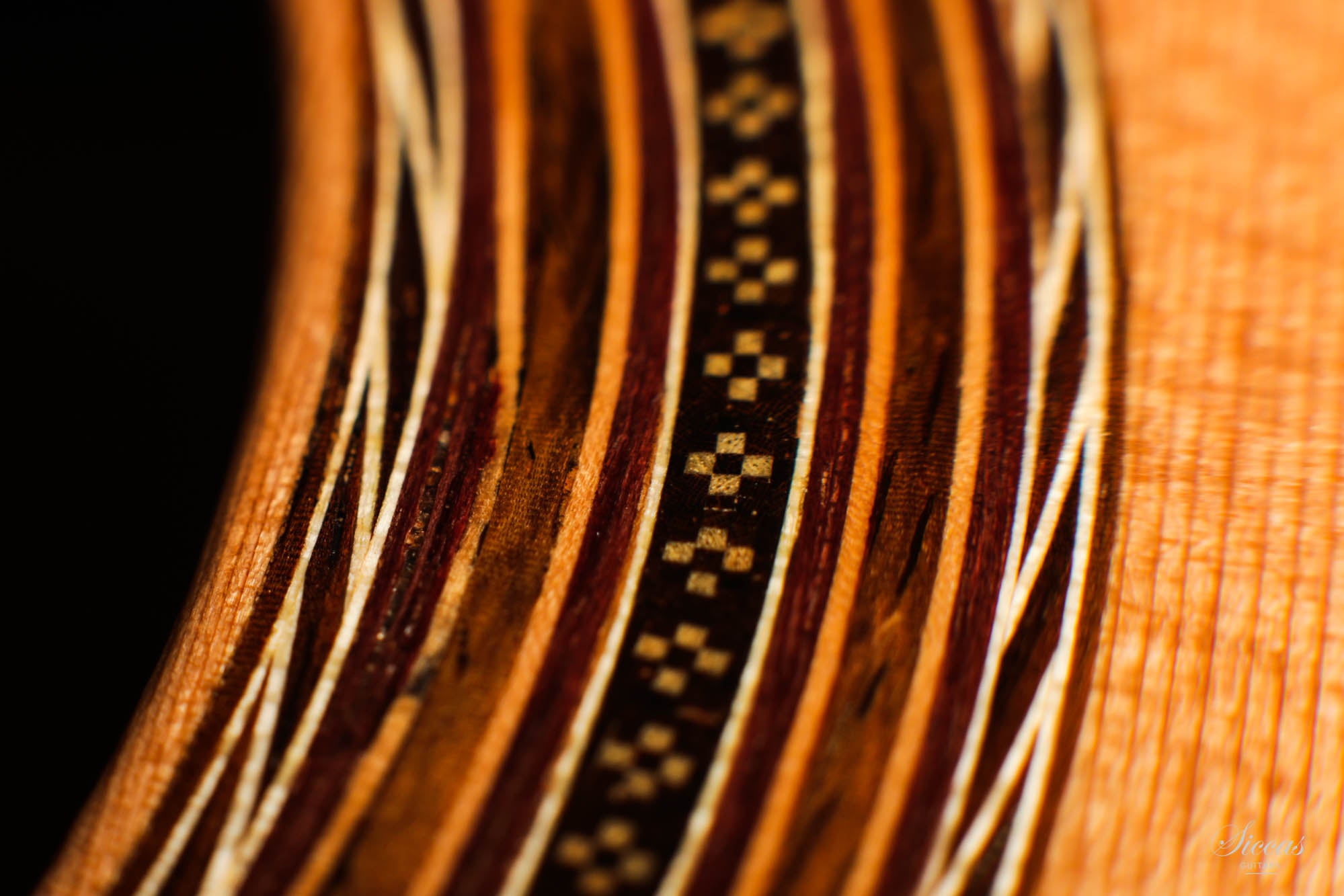 Bei der Betrachtung des Instrumentes merkt man sofort, dass die handwerkliche Verarbeitung auf einem erstaunlich hohen Niveau ist. Kleine Details mit schönen Intarsien verleihen der Gitarre ein schlichtes und sehr elegantes Aussehen. Man kann in den herrlichen Feinheiten, die die Gitarrenbauerin sorgfältig zu einer charmanten Ganzheit abgestimmt hat, geradezu versinken. Der warme, runde Klang der Zeder lässt das Instrument angenehm kraftvoll klingen und ist außerdem sehr harmonisch und obertonreich. Es ist eine wahre Freude, diese Gitarre von Tamara Stahl zu spielen. Dieses Instrument hat tiefe, volle Bässe, die weder aufdringlich noch zu wuchtig zu sind, und einen cremig geschmeidigen diskant mit viel Sustain.Auch die Ausgewogenheit zwischen Bässen und Höhen ist bemerkenswert. Diese Zederndecke ist äußerst reaktionsfreudig mit genügend Kraft für alle Arten von Konzertsituationen,und außerdem recht lebhaft, ohne dabei zu überwältigen. Wenn man alle Aspekte dieses Instruments in Betracht zieht, ist diese Gitarre besonders für alle diejenigen Spieler interessant, die nicht nur auf einen tadellosen Klang, sondern auch auf  Ästethik exquisiter Handwerkskunst Wert legen.