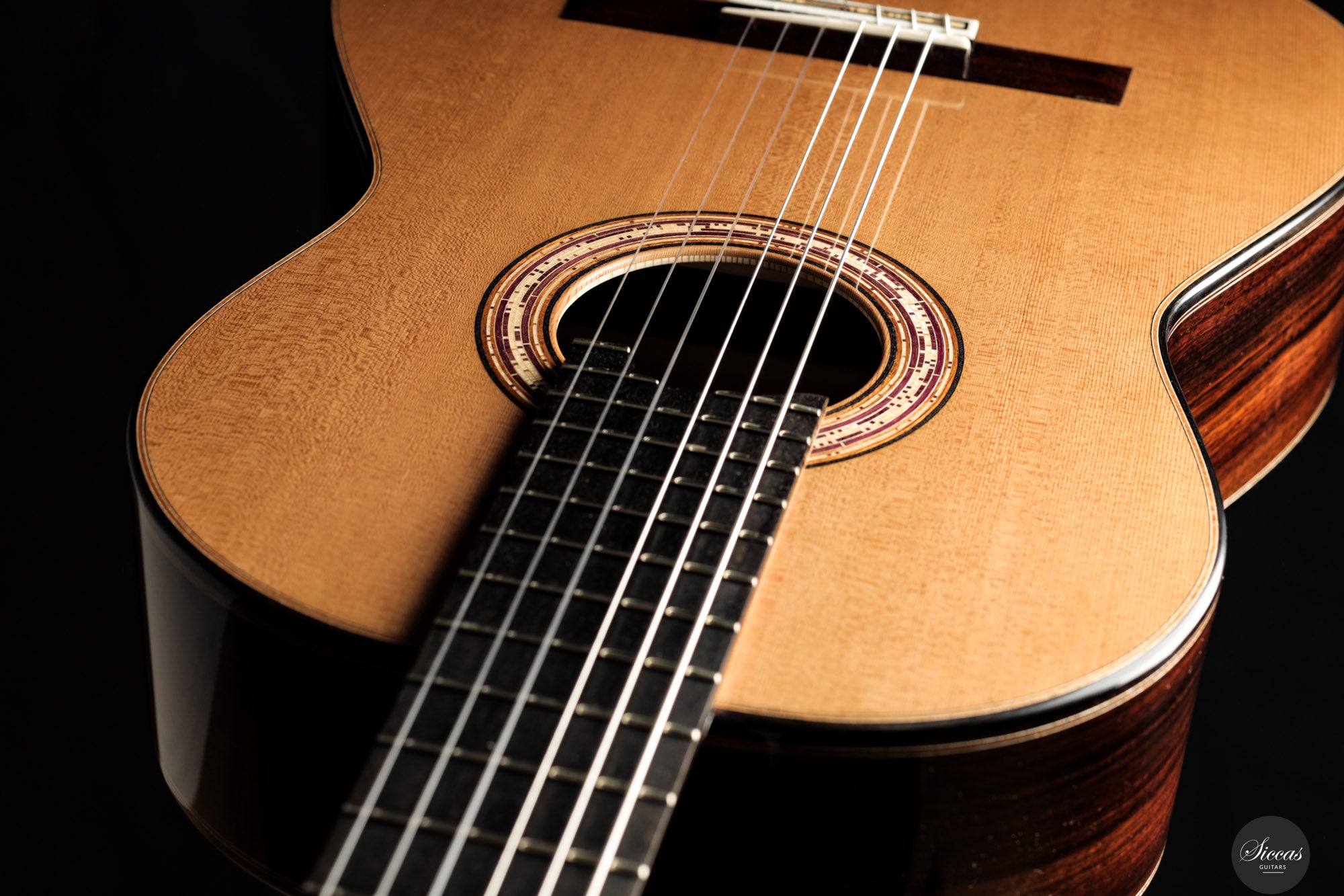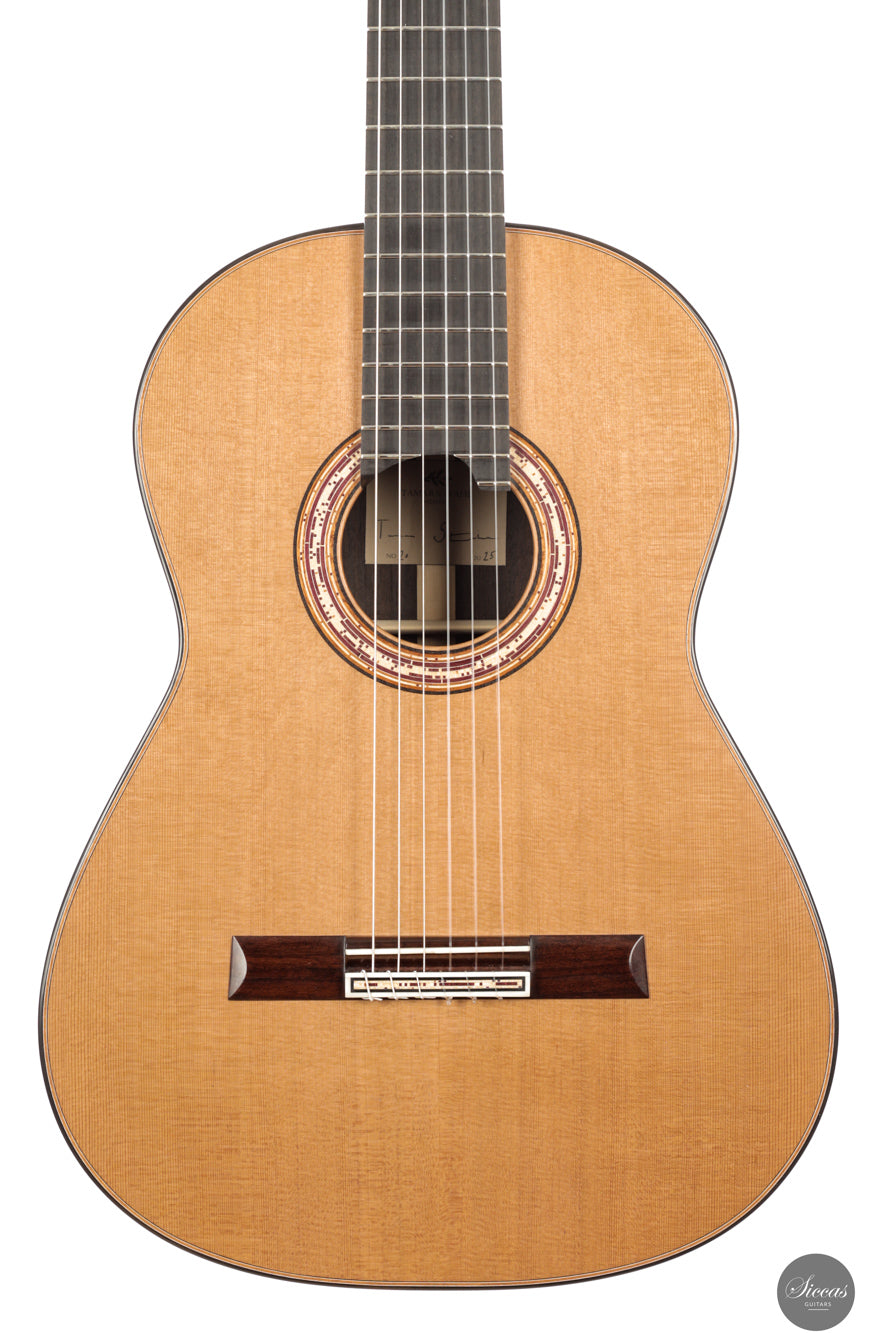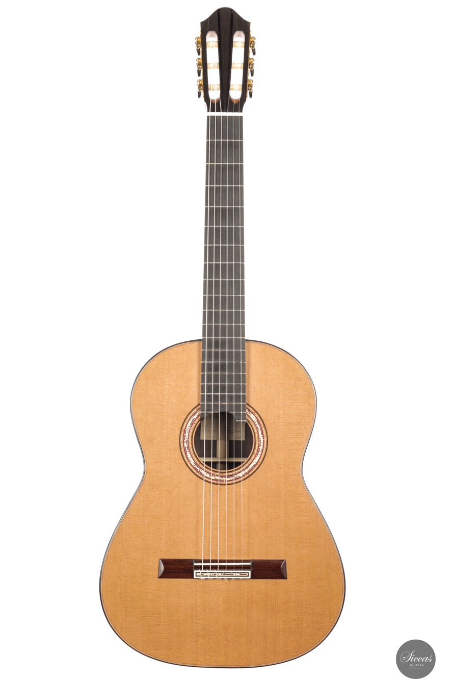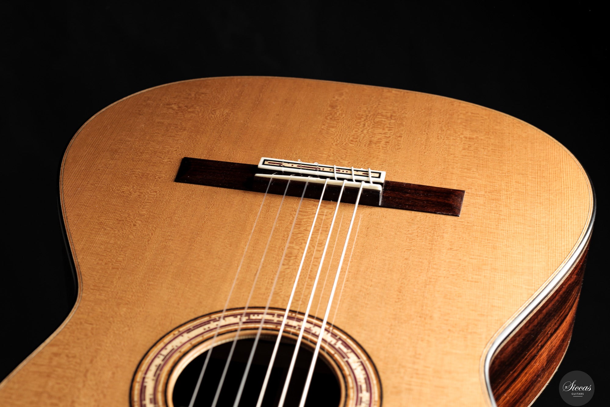 The guitar produces a tone that is airy and full bodied. The character is slightly dark yet always open and round. The notes carry a noticeable weight and the sound has an appealing sense of depth. The instrument responds quickly across all registers and sustains with ease. The trebles are clear and smooth and the basses are present and supportive without dominating the texture. The result is a guitar that blends the intimacy found in traditional instruments with the headroom needed for concert playing. It encourages expressive shaping of lines and offers a wide range of colours with subtle gradations of tone.