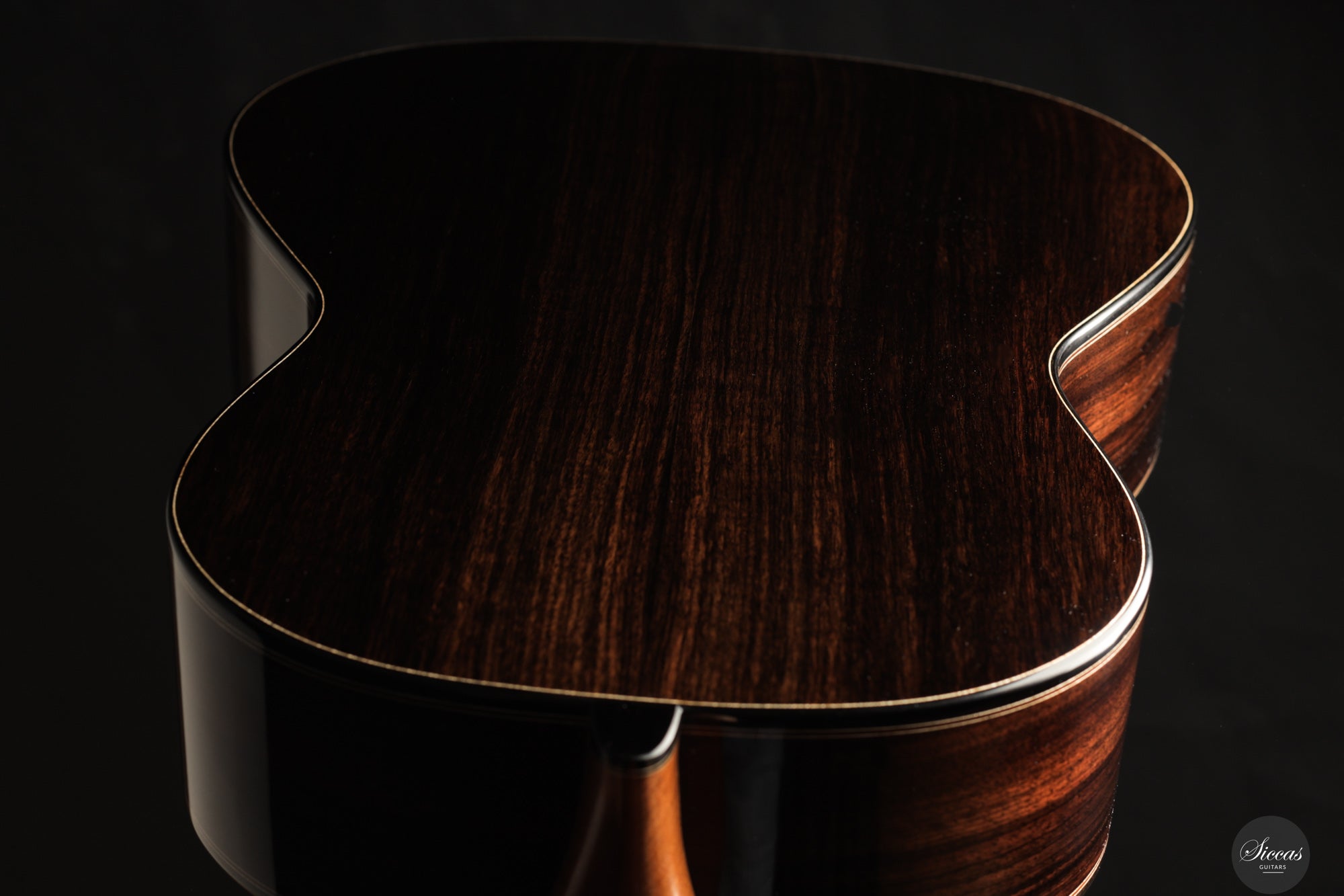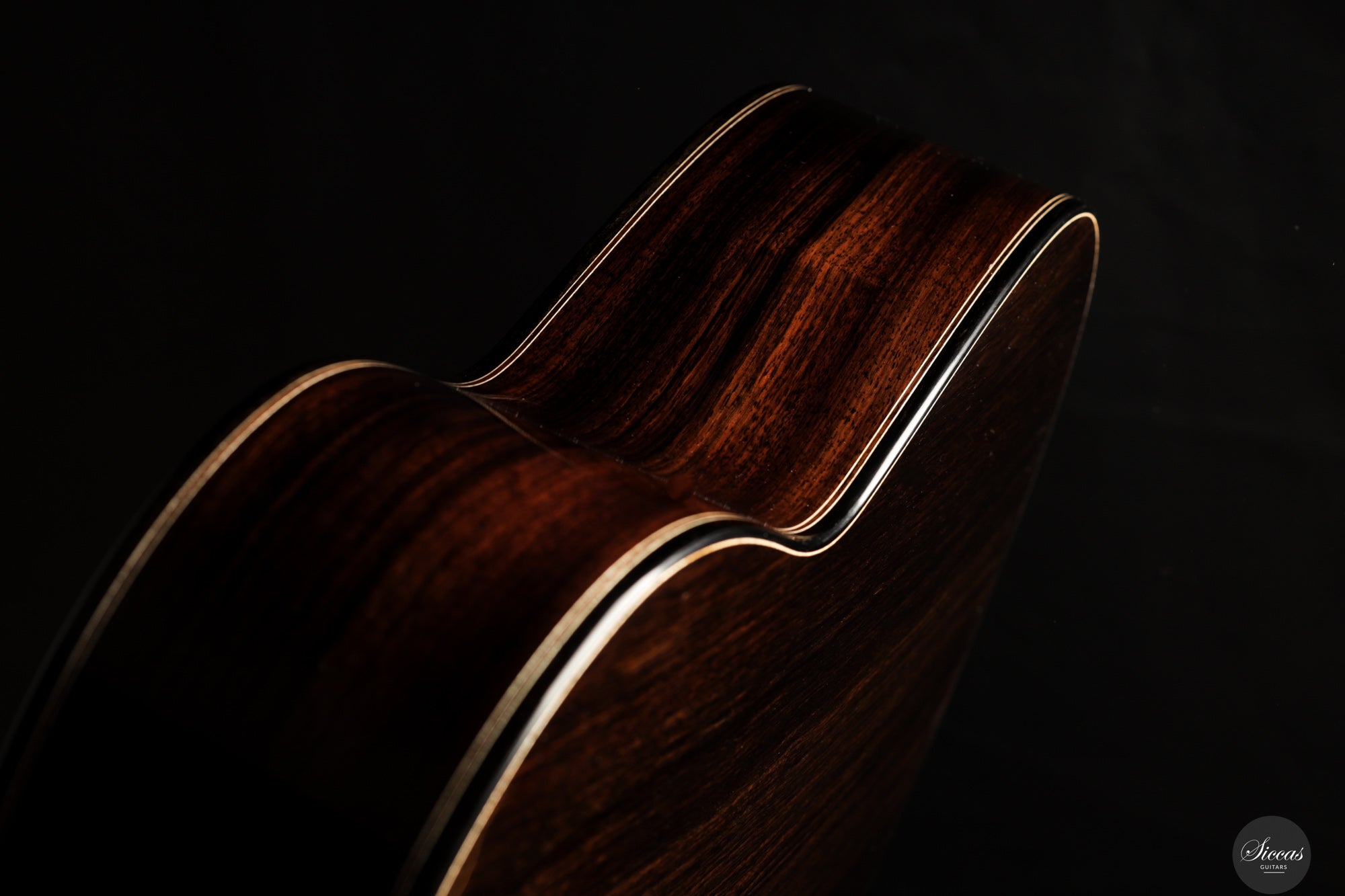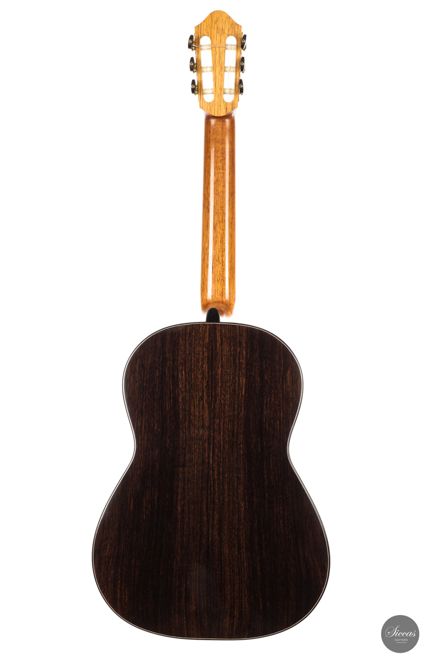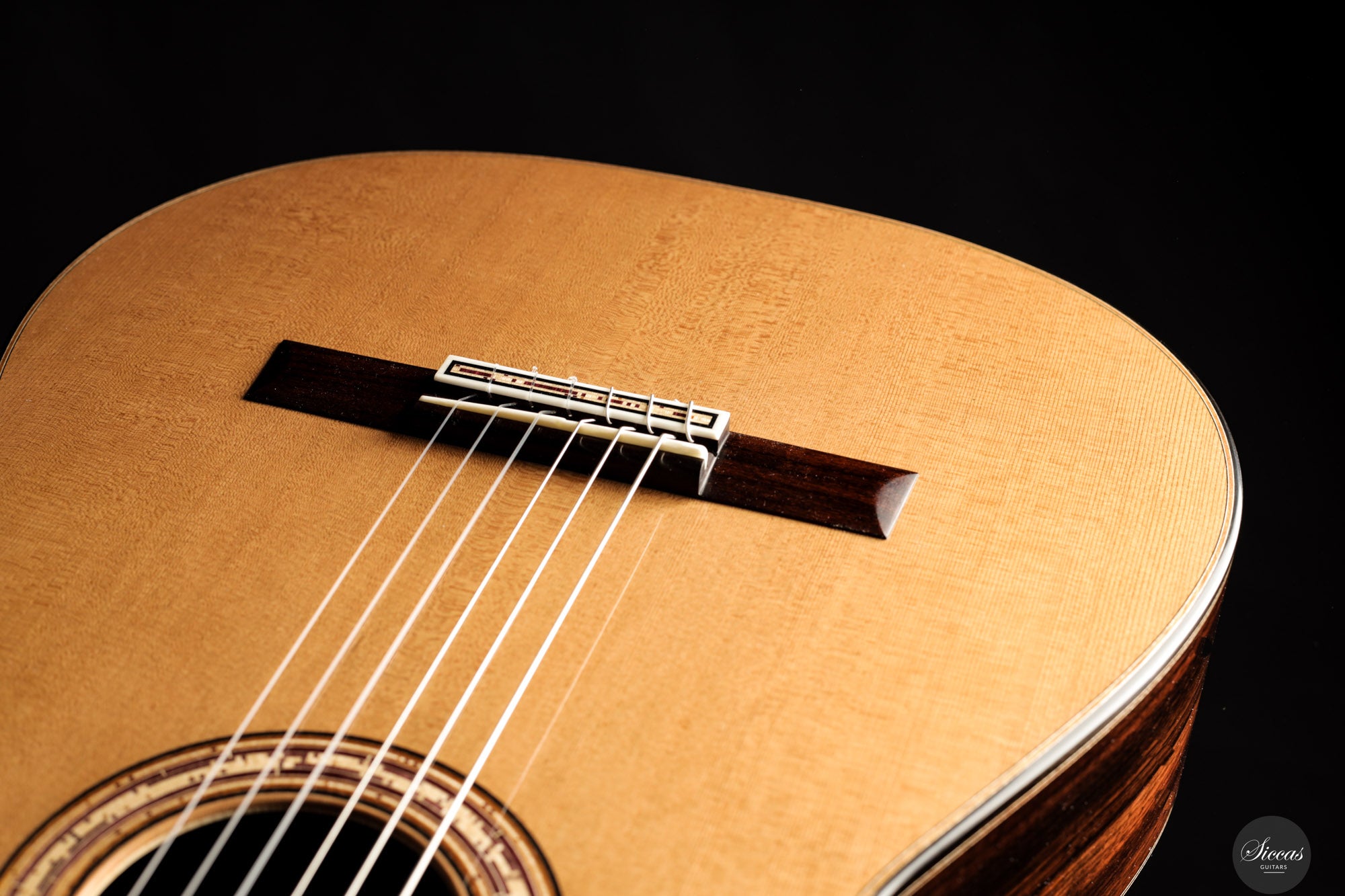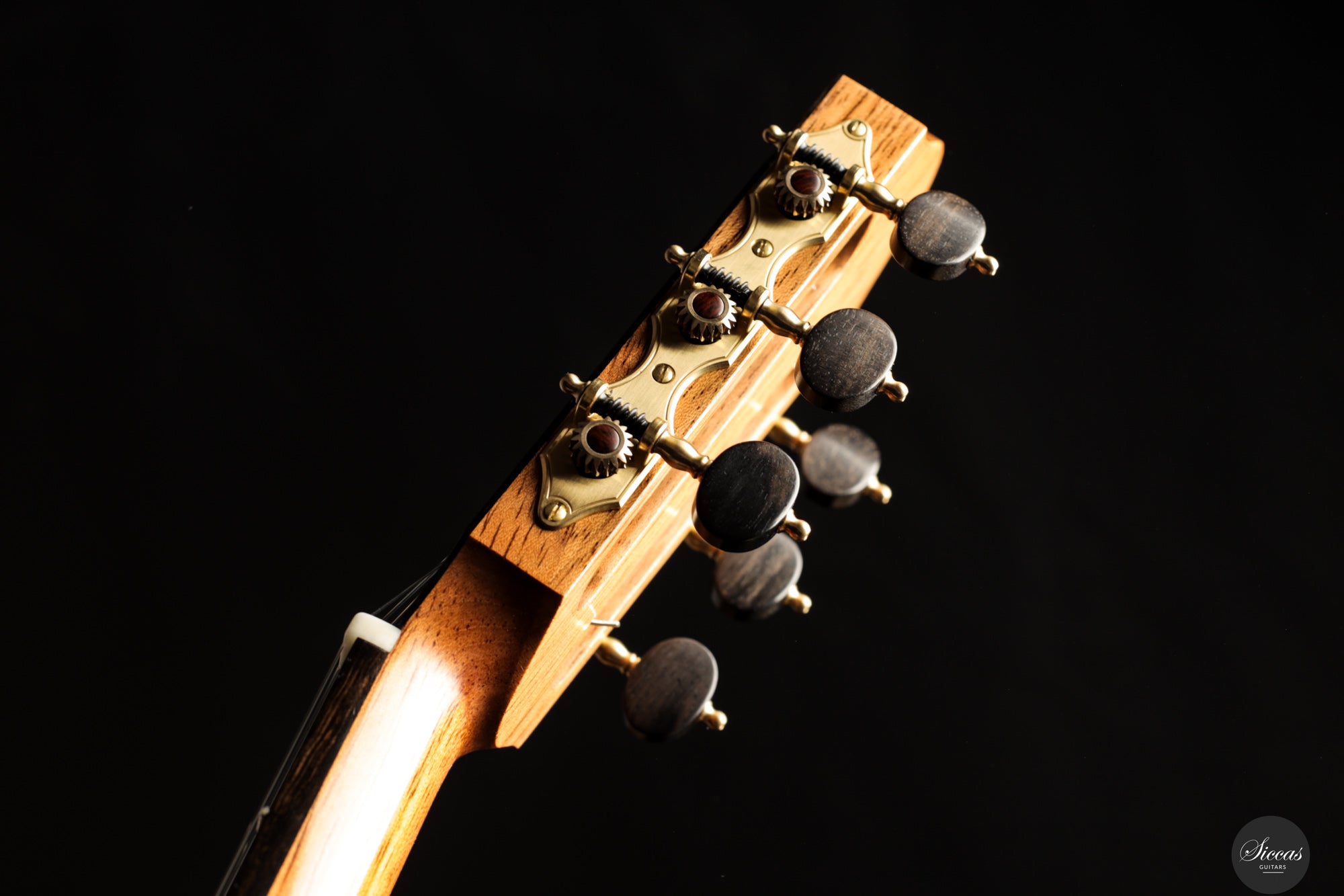This instrument from 2025 with the number 20 reflects the evolution of Tamara Stahl’s mature building style. It is constructed in a traditional manner with a cedar top and Indian rosewood body, finished throughout with French polish. The doubled sides and the carefully weighted bridge contribute to increased projection and stability. The overall build feels compact and solid while remaining sensitive to the lightest touch. Kris Barnett tuning machines provide smooth and steady tuning.