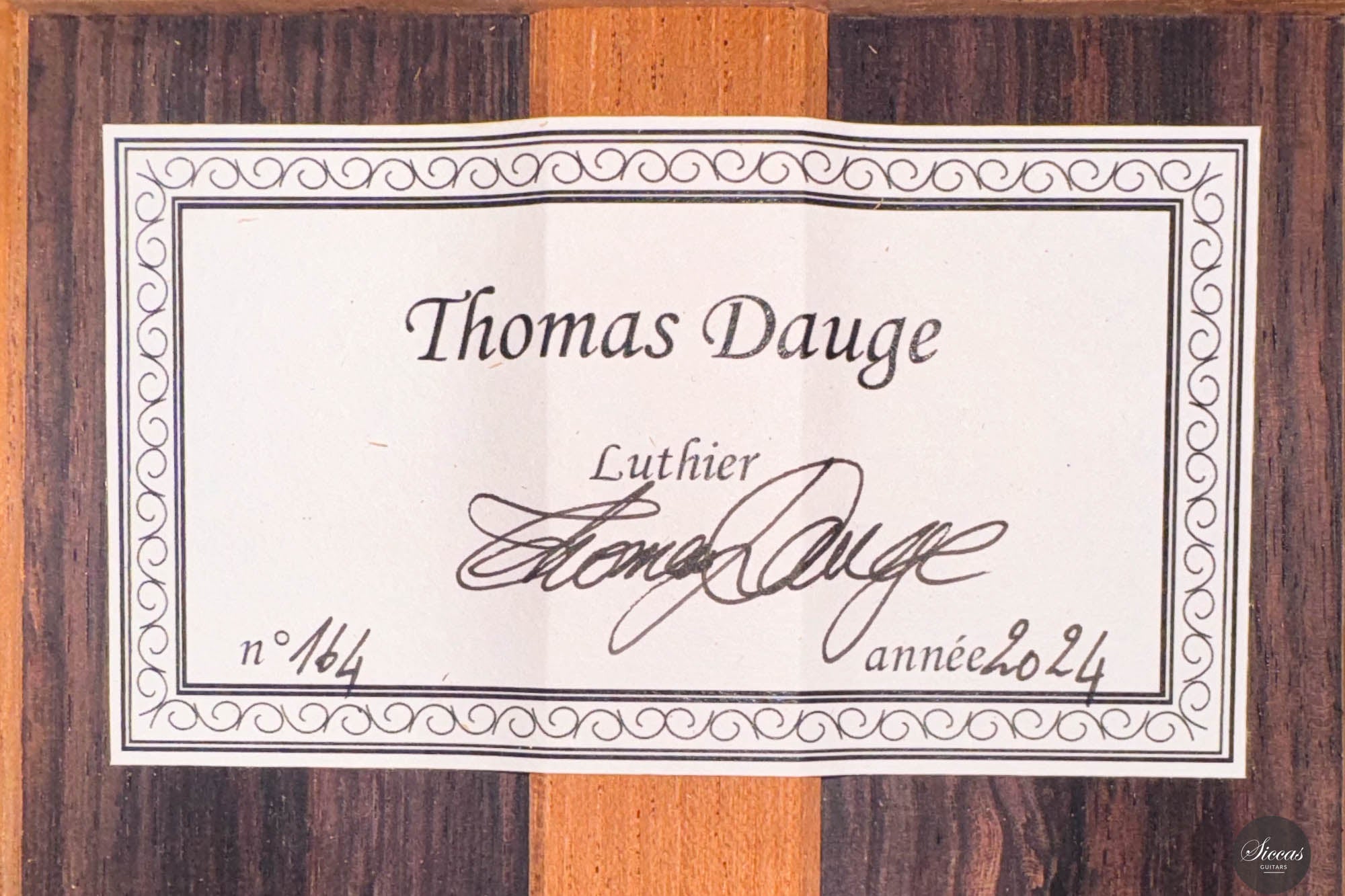 Thomas Dauge is a French luthier based in Bordeaux. He follows the French tradition of guitar making and proves great skills in the design and construction of the rosette and other marquetry elements. Thomas Dauge pays great attention to every detail of the instrument, such as the choice of wood, the quality of shellac polish, the clean execution of the joints, and, above all, the sound characteristics of his guitars. He succeeds in building very well-balanced instruments with complex timbre and excellent playability.