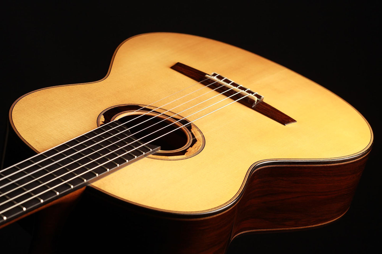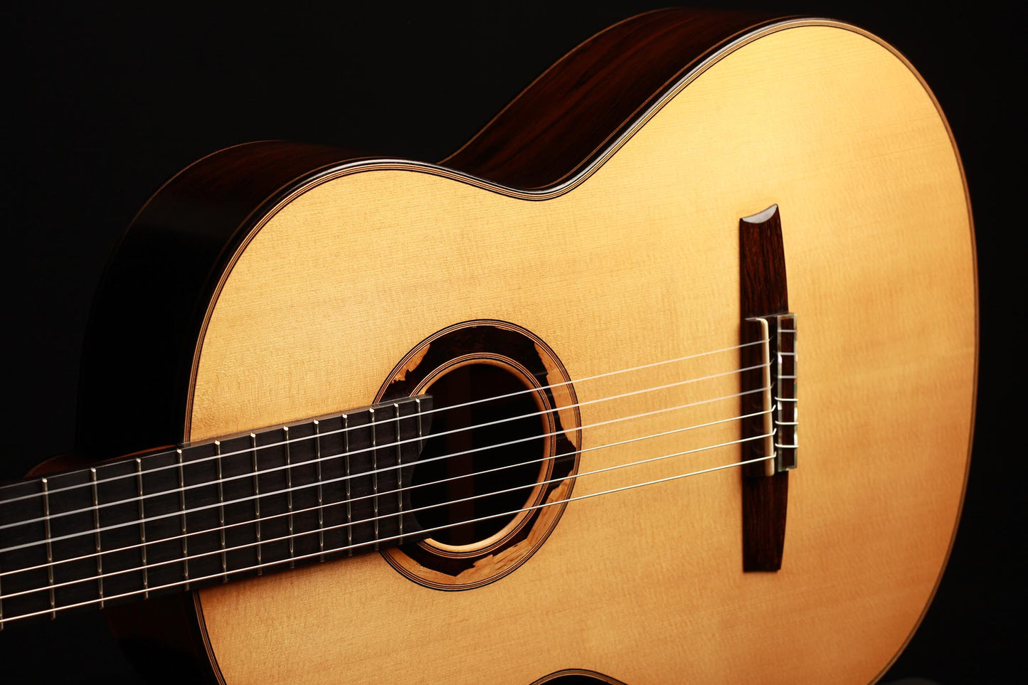 This guitar built in 2009 is in excellent condition, crack-free, with almost no playing marks. It was really well cared for and regularly played. Its sound is direct and powerful, very responsive and easy to produce. The waxed neck is appreciated by many players since it gives a great woody feeling to the left hand. Moreover, the fingerboard has a slight radius, and is elevated for better access to the higher ranges. Overall a fantastic instrument in great condition.