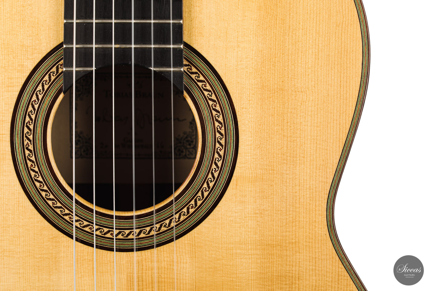 Tobias Braun was born in Holzminden, Germany in 1960. Shortly after, his family moved to Perchtoldsdorf near Vienna, Austria. In 1983 he built his first concert guitar and a year later he completed a course about guitar making taught by José Romanillos. A second course followed in 1988, and the third course in 1989. In the same year, he completed his master’s certificate in Vienna. Tobias Braun has dedicated himself to the traditional Spanish guitar building school. Many of his guitars are models of famous masters such as Santos Hernandez and Manuel Ramirez.