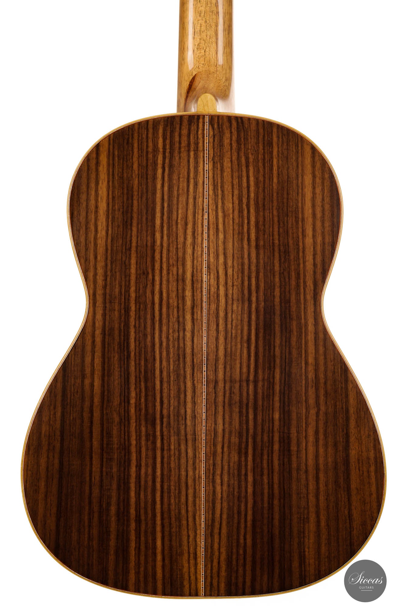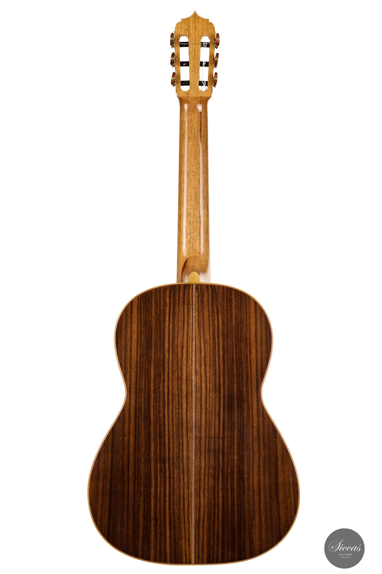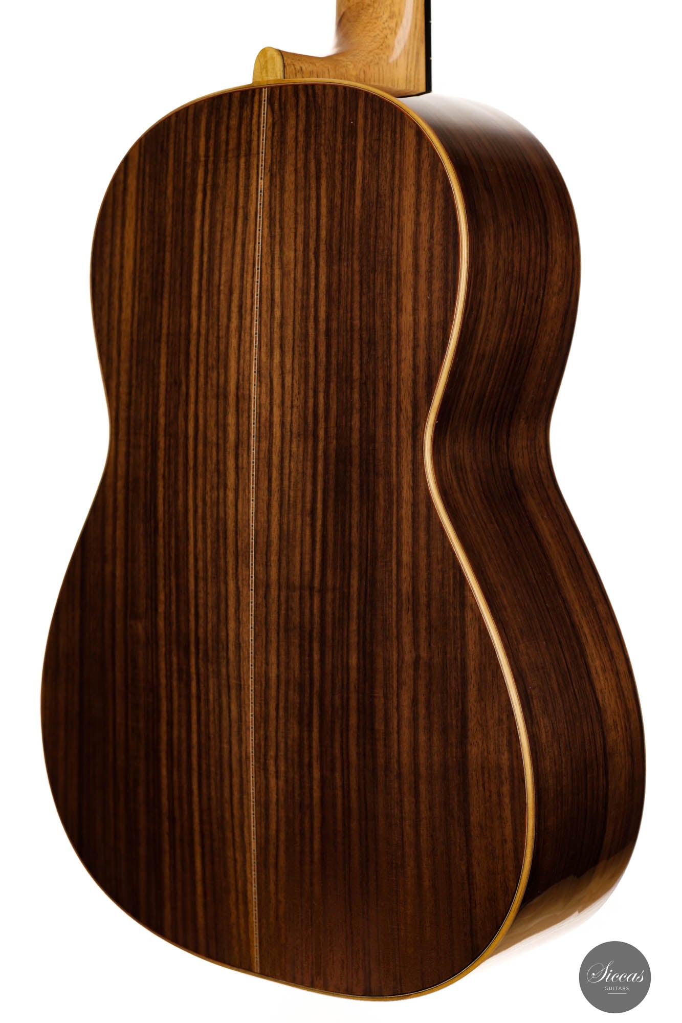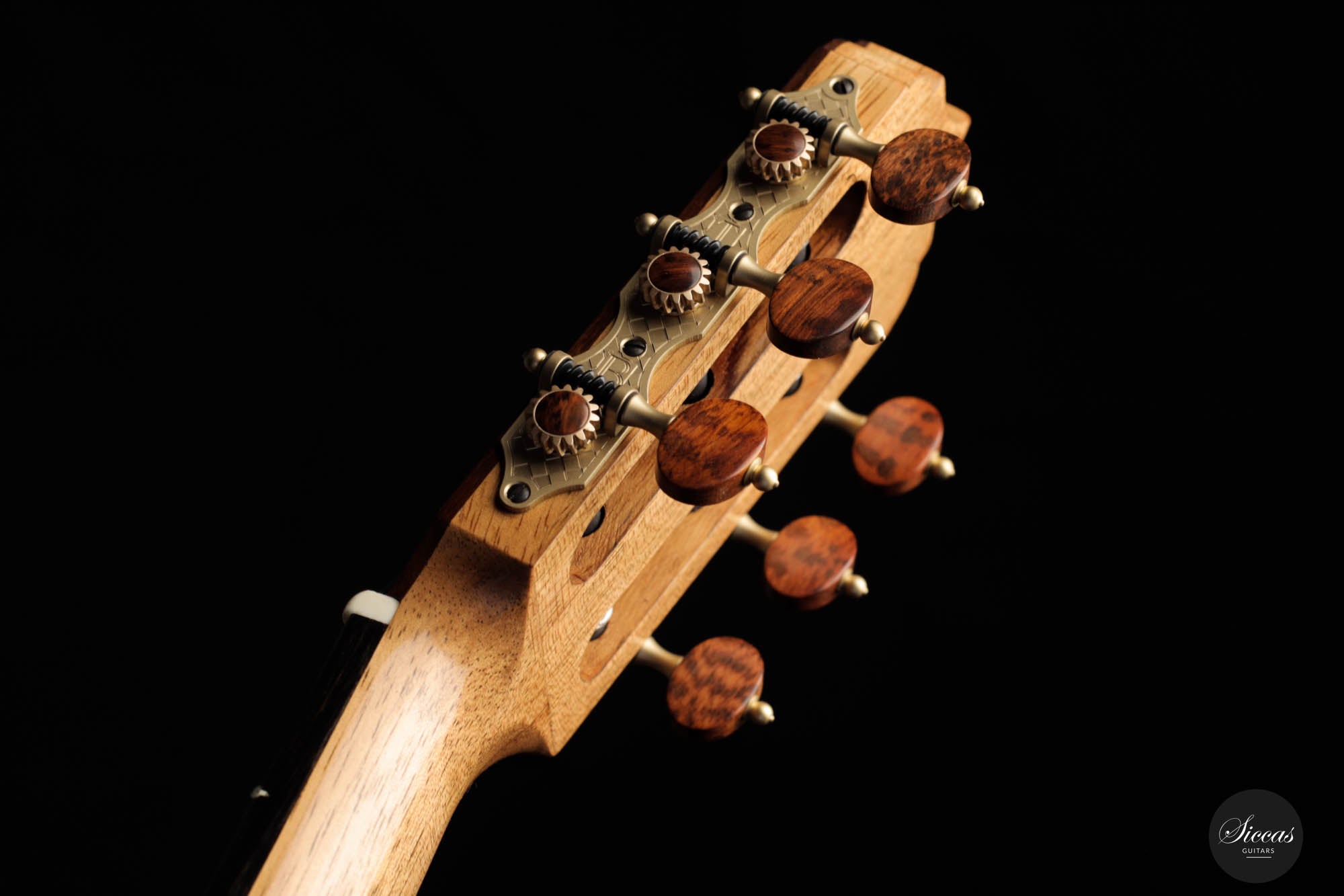 Braun's interpretation stands as an impressive tribute to Romanillos's design, reflecting an expert level of craftsmanship. The captivating spruce soundboard, adorned in a manner reminiscent of Jose's designs, enhances the guitar's visual charm while showcasing Braun's dedication to detail.