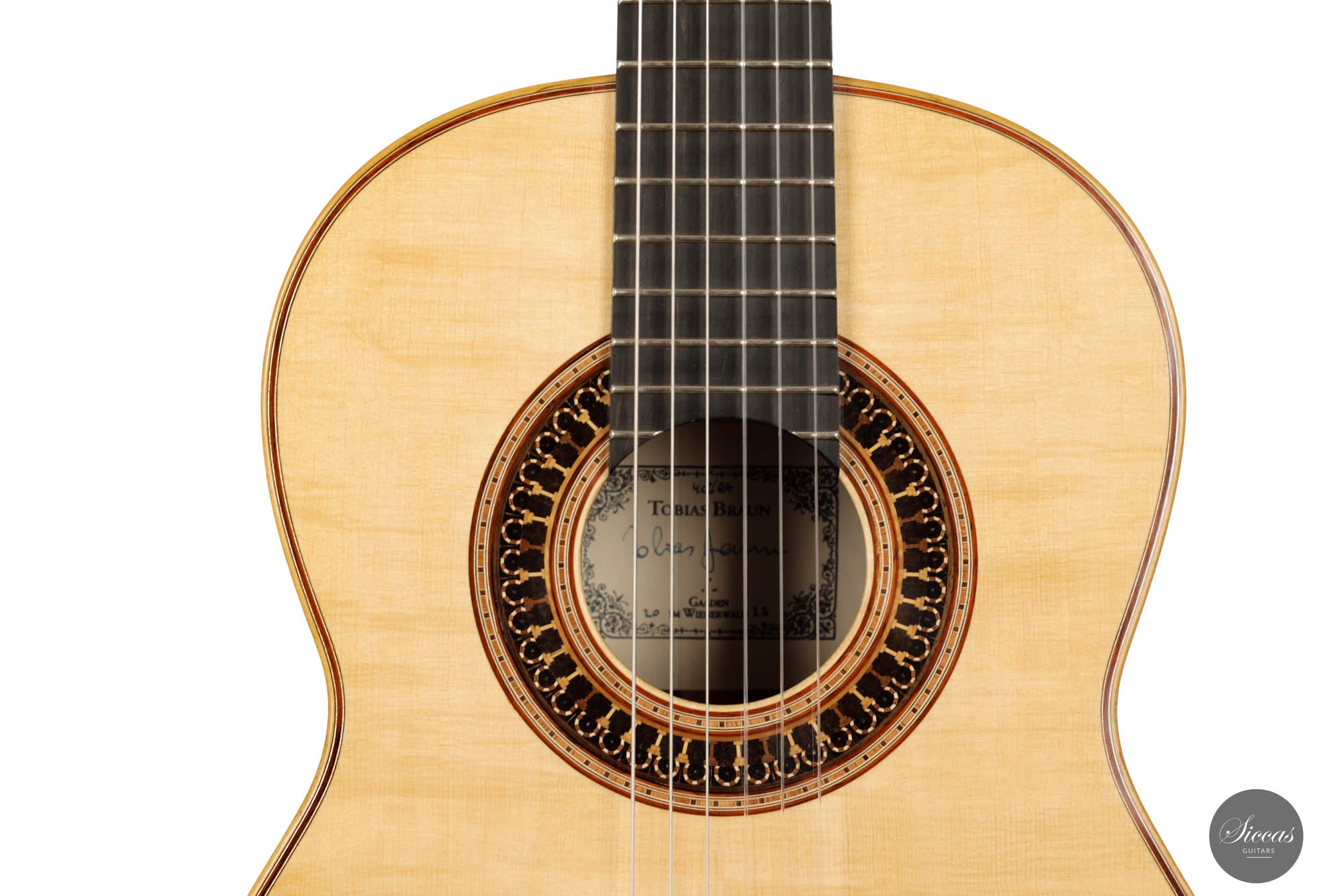 Tobias Braun was born in Holzminden, Germany, in 1960. Shortly after, his family moved to Perchtoldsdorf near Vienna, Austria. In 1983 he built his first concert guitar, and a year later, he completed a course about guitar-making taught by José Romanillos. A second course followed in 1988, and the third course in 1989. In the same year, he completed his master's certificate in Vienna. Tobias Braun has dedicated himself to the traditional Spanish guitar-building school. Many of his guitars are models of famous masters such as Santos Hernandez and Manuel Ramirez.